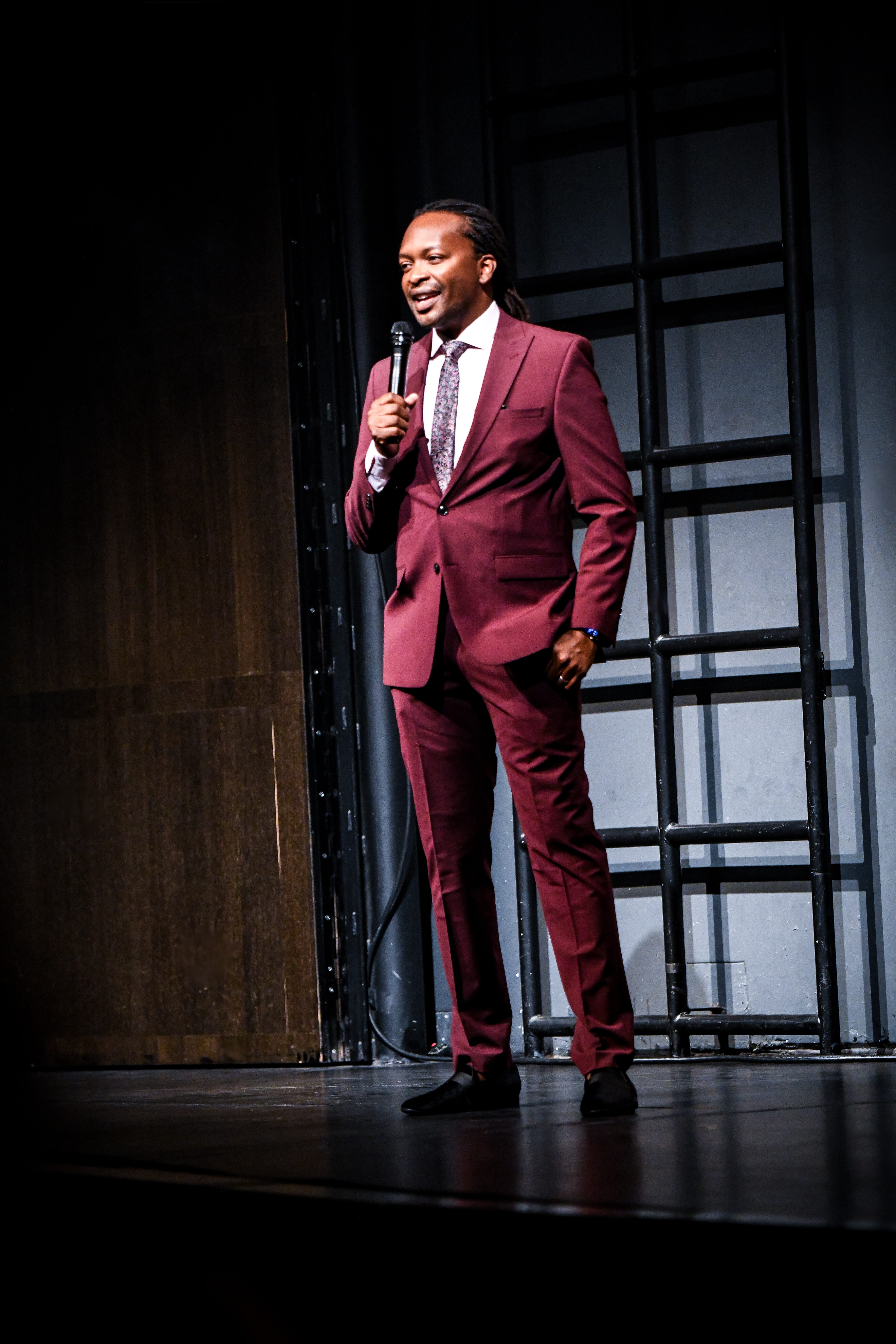 Executive Director Terell Johnson took the stage to introduce the evening, which would begin with three pieces performed by 60 members of the Chicago Philharmonic: Chicago Fanfare, Etymology, and the Romeo and Juliet Fantasy Overture. Scott Speck, Artistic Director and Principal Conductor for the Chicago Philharmonic, took the stage and introduced the first piece, Chicago Fanfare (2019), composed by Nicholas Hubbell.