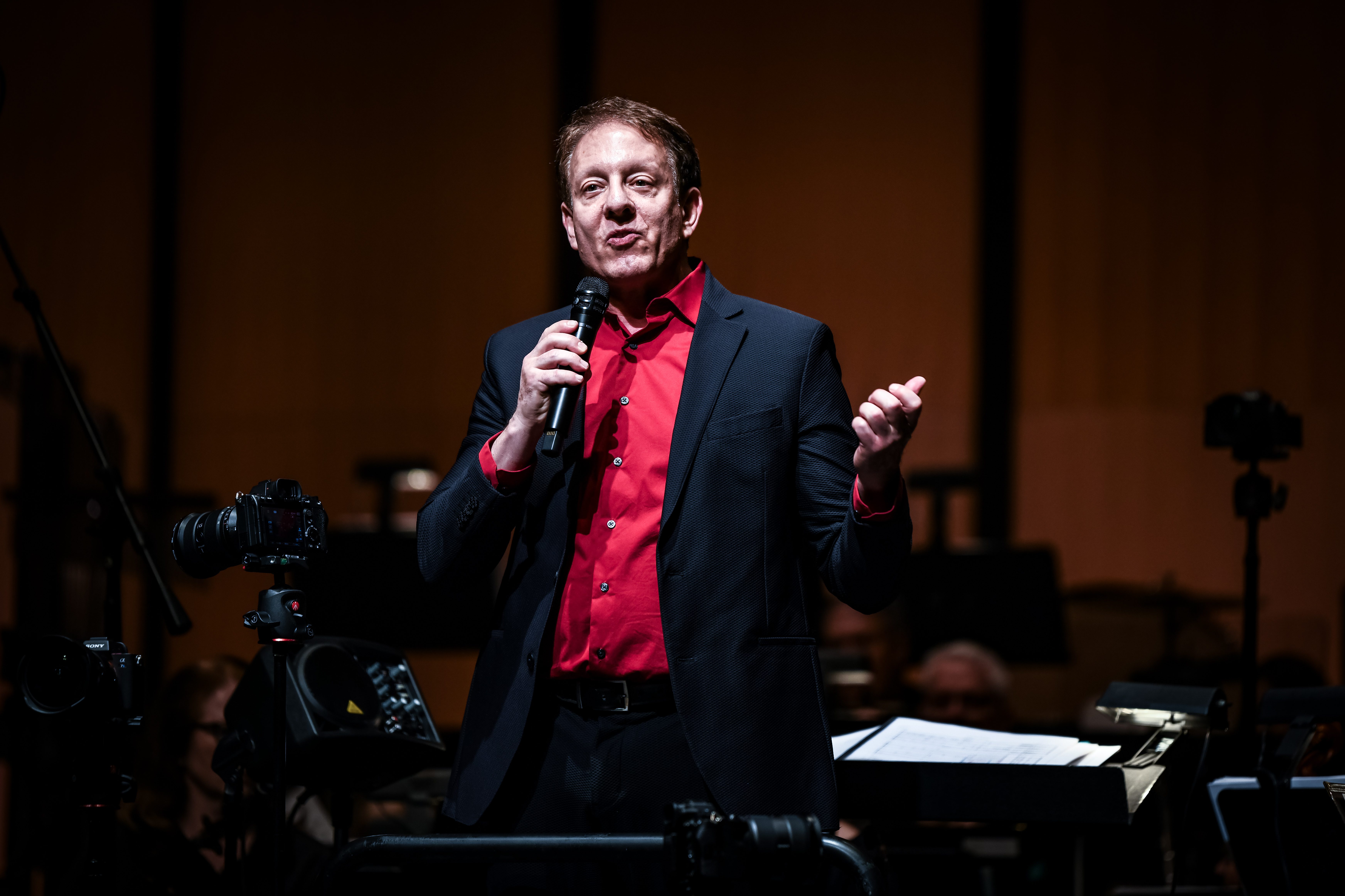 Maestro Speck then introduced the Romeo and Juliet Fantasy Overture (1869) from Pyotr Ilyich Tchaikovsky, a piece familiar to many that takes the listener on a journey through Romeo and Juliet’s tragic love story. After allowing time for celebration of the orchestra for their compelling performance, Maestro Speck announced that it was time for the moment the audience had been waiting for: Ryan O’Neal, Sleeping At Last.