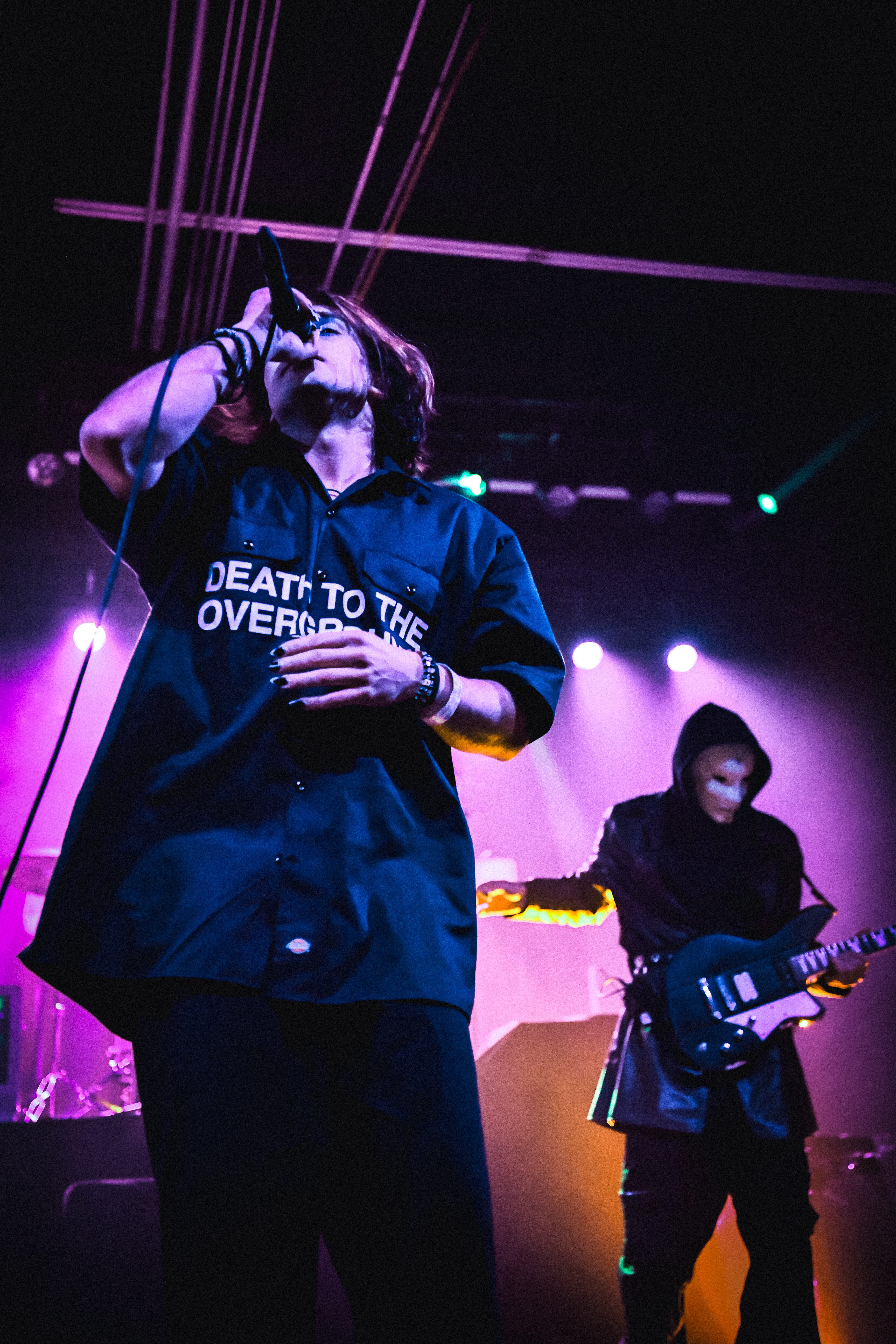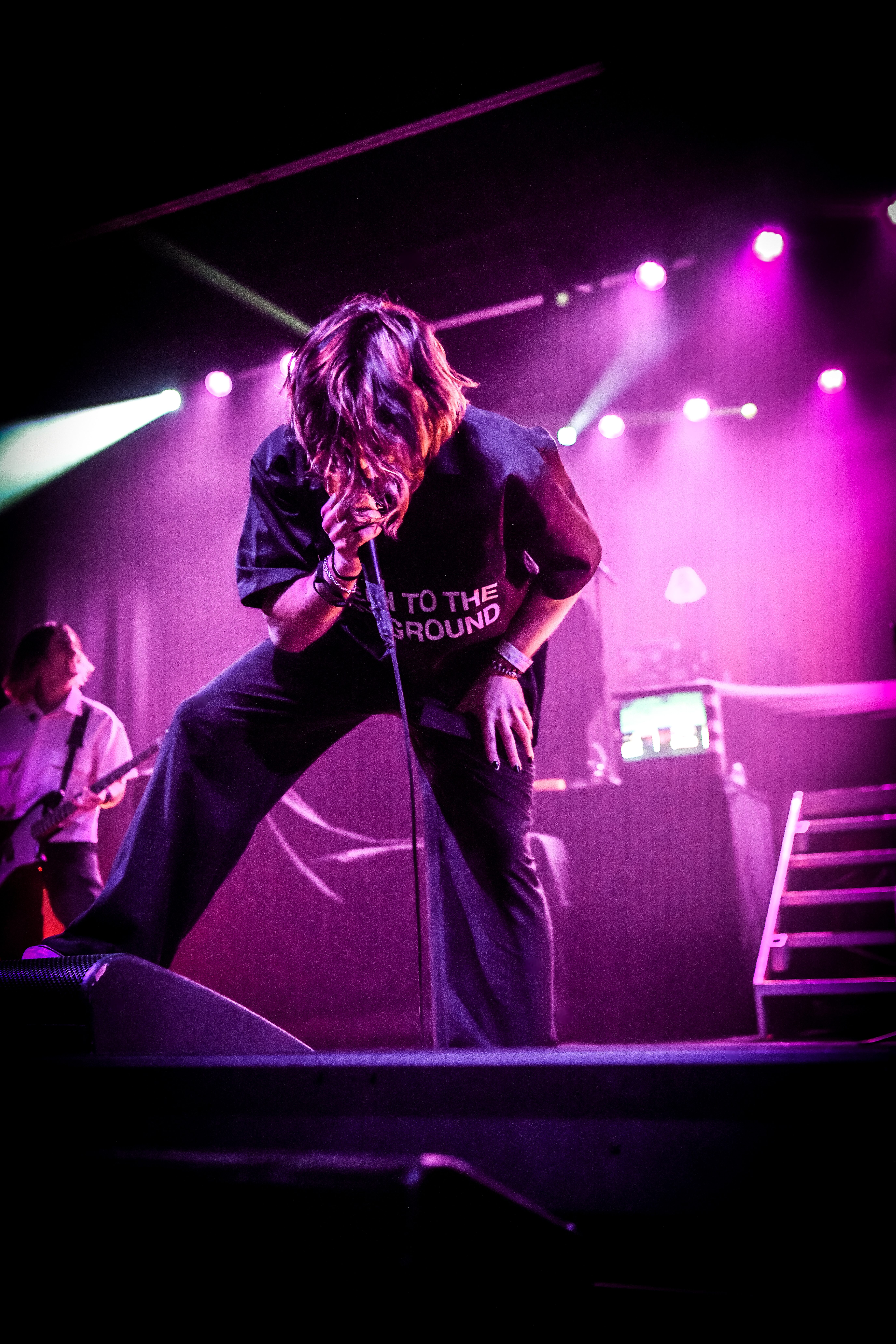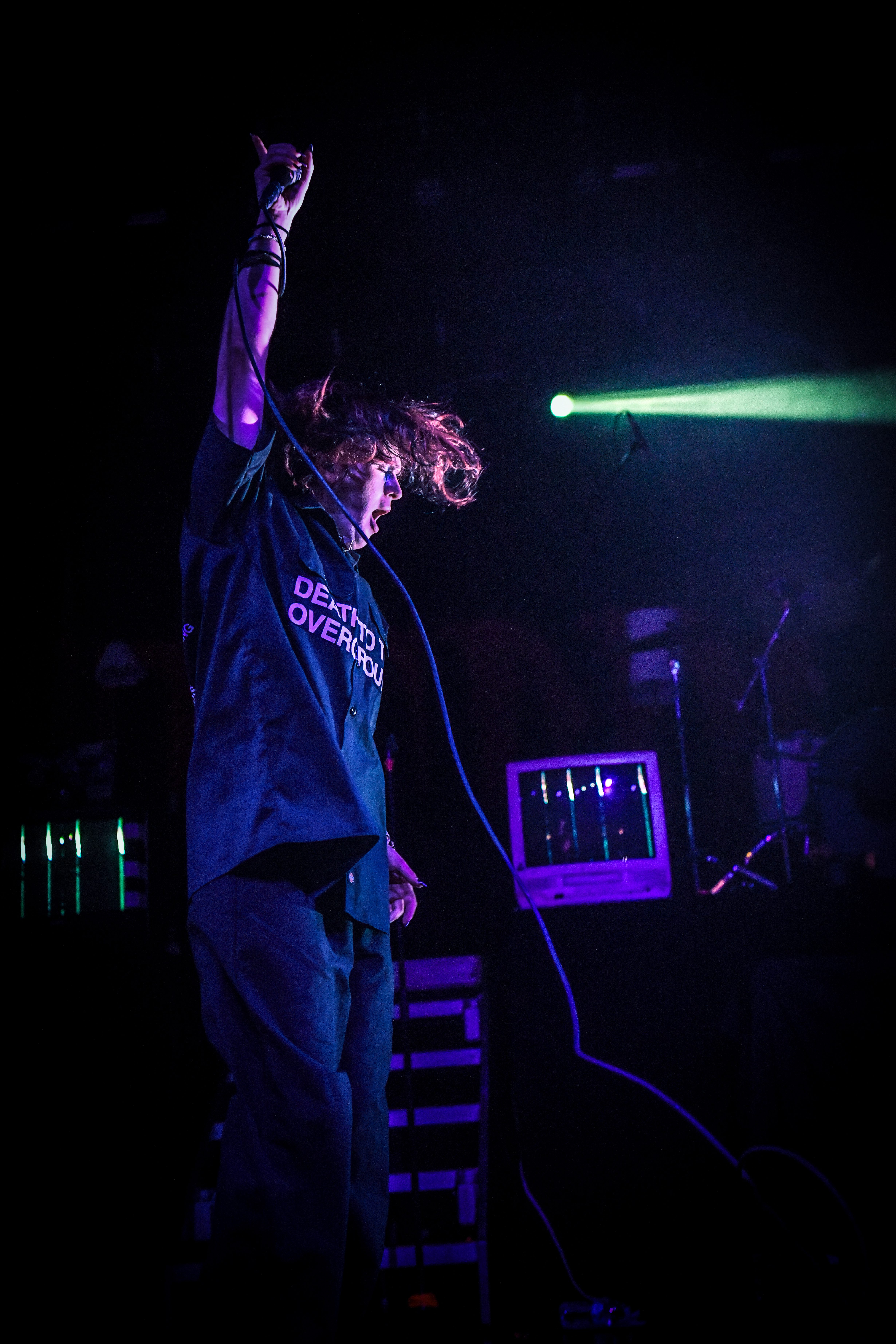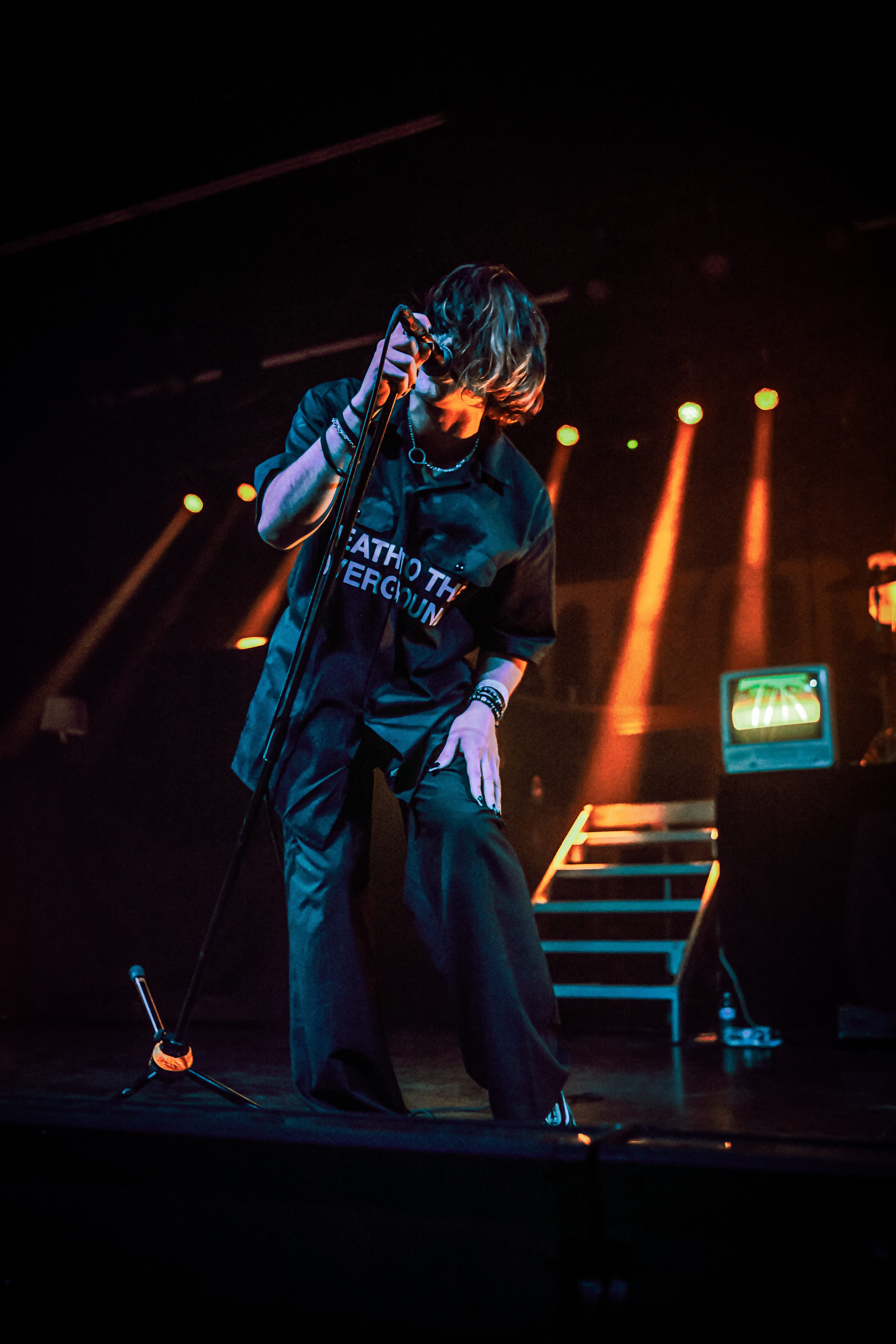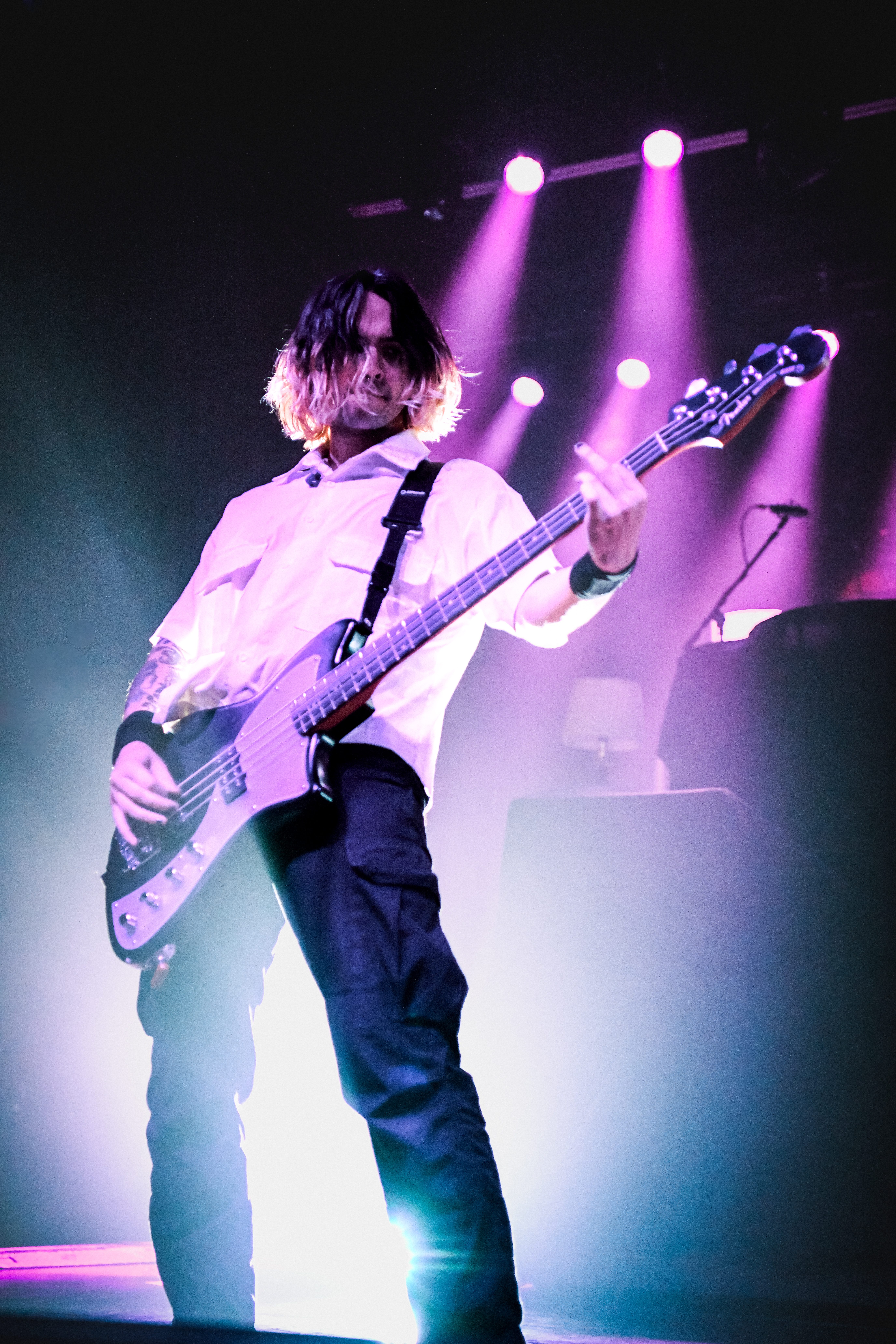 A pair of old school TVs equipped with embedded VHS players began to display images of static, along with video scenes and lyrics as Static Dress took the stage. The post hardcore band from England opened the night, bringing an intense energy that was instantly matched by the crowd. Vocalist Olli Appleyard never stopped moving, keeping an impressive stamina while not missing a beat vocally. They engaged frequently with the crowd, encouraging circle pits and for everyone to make friends (or enemies) by keeping it moving. They expressed gratitude for being part of a tour for an album released two decades ago, when they were small children, noting that they aspire to be able to do the same one day. The band is relatively new to the scene, having formed in 2018. Since their formation, they have released two albums, Prologue… (Comic Book Soundtrack) and Rouge Carpet Disaster (Redux).