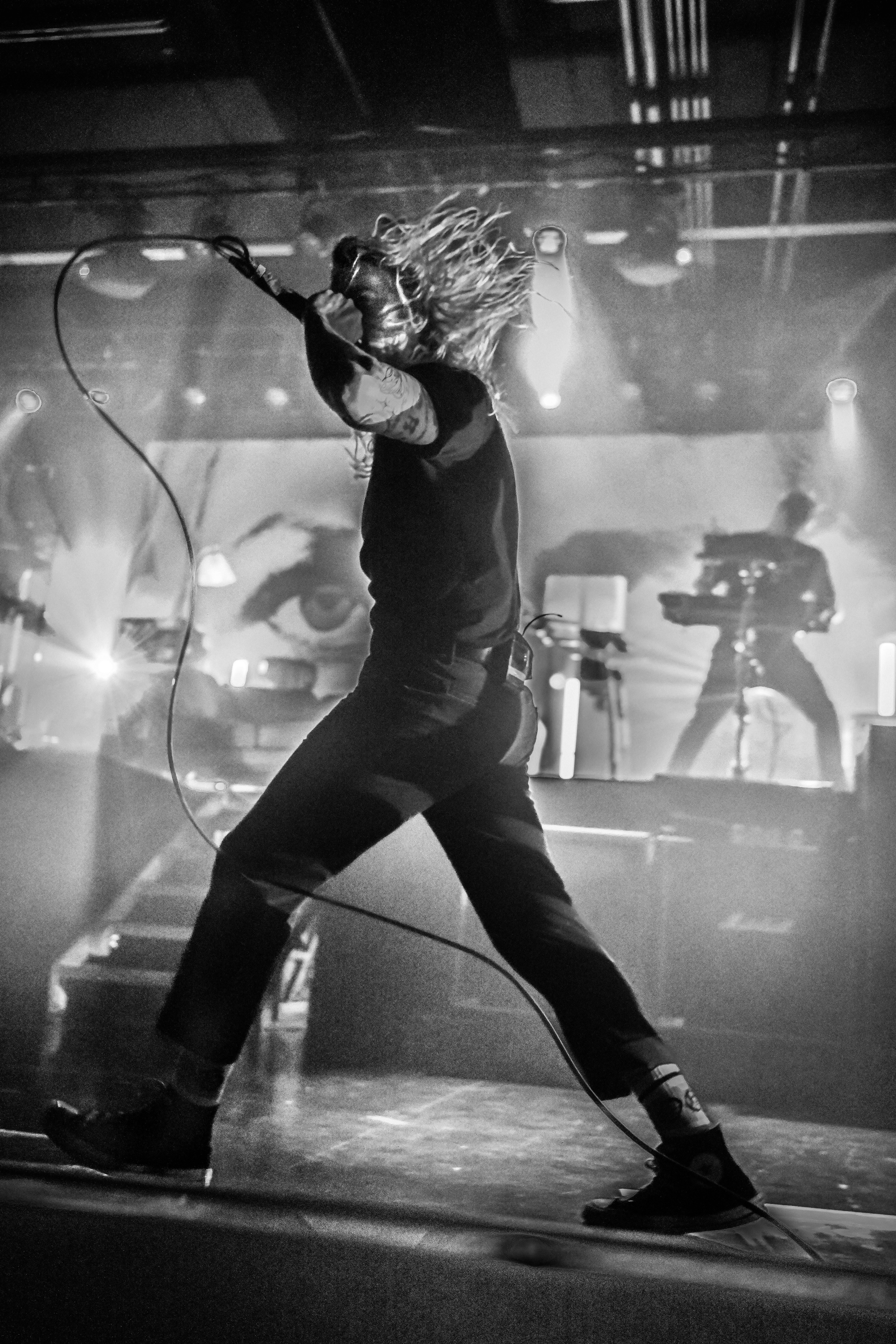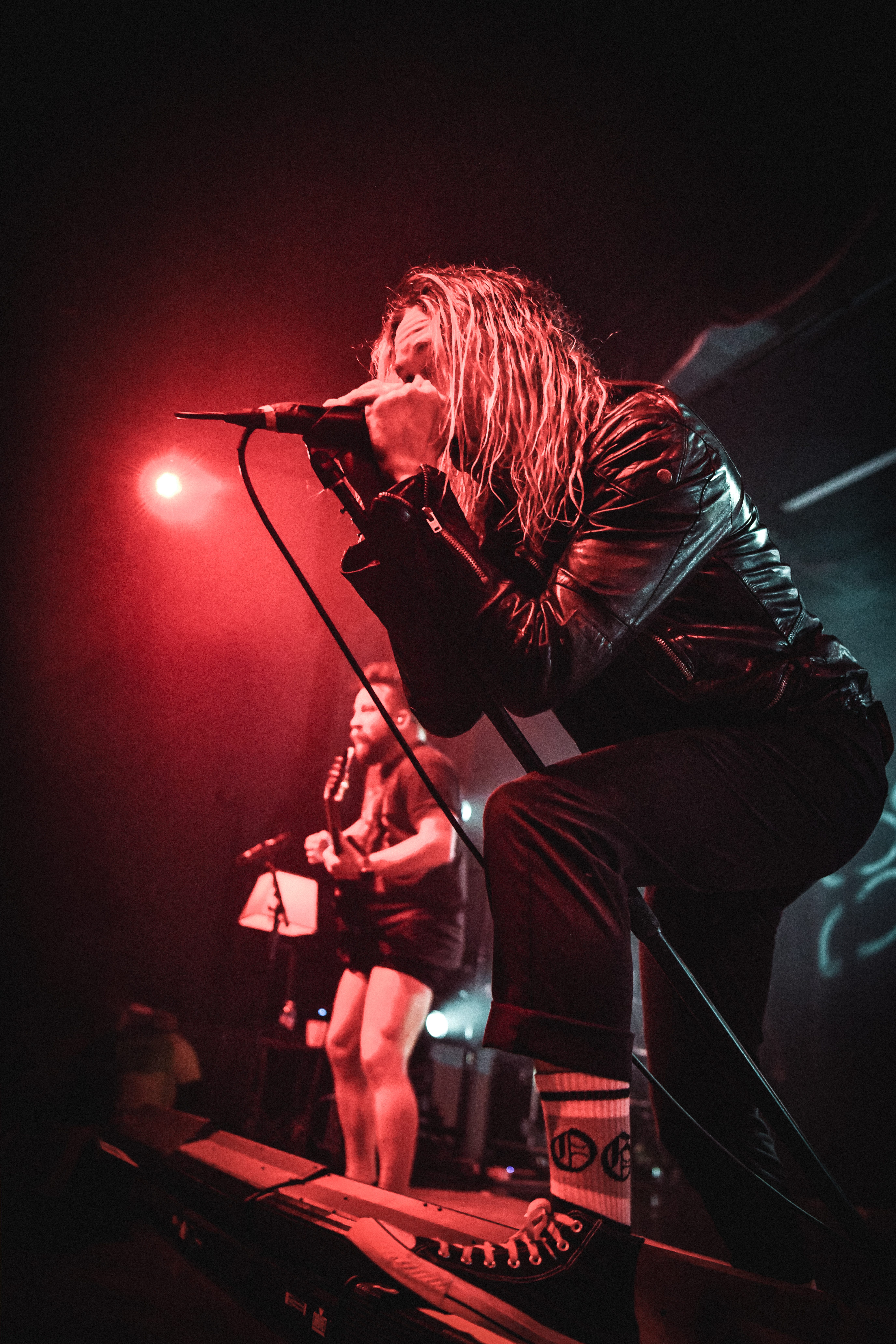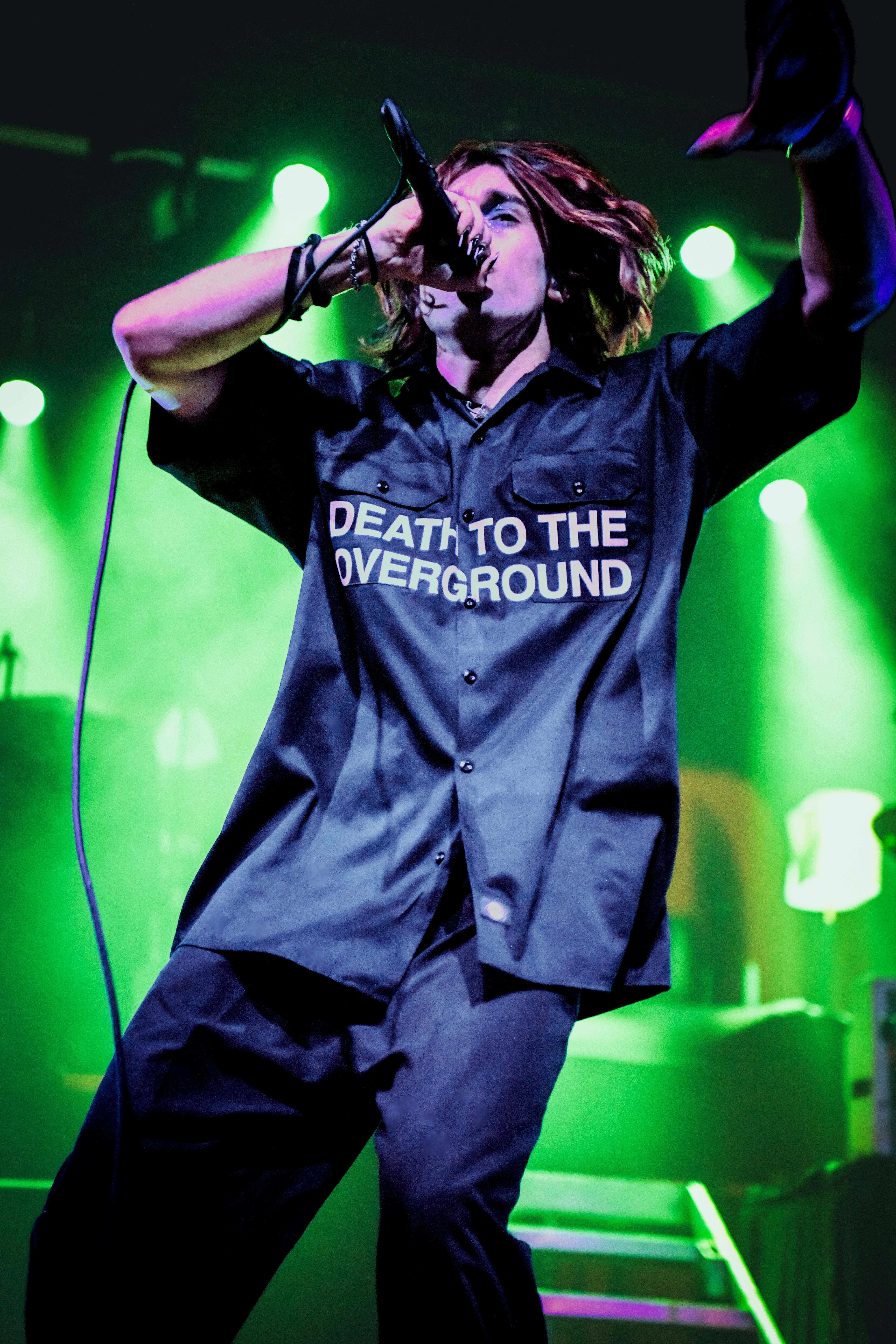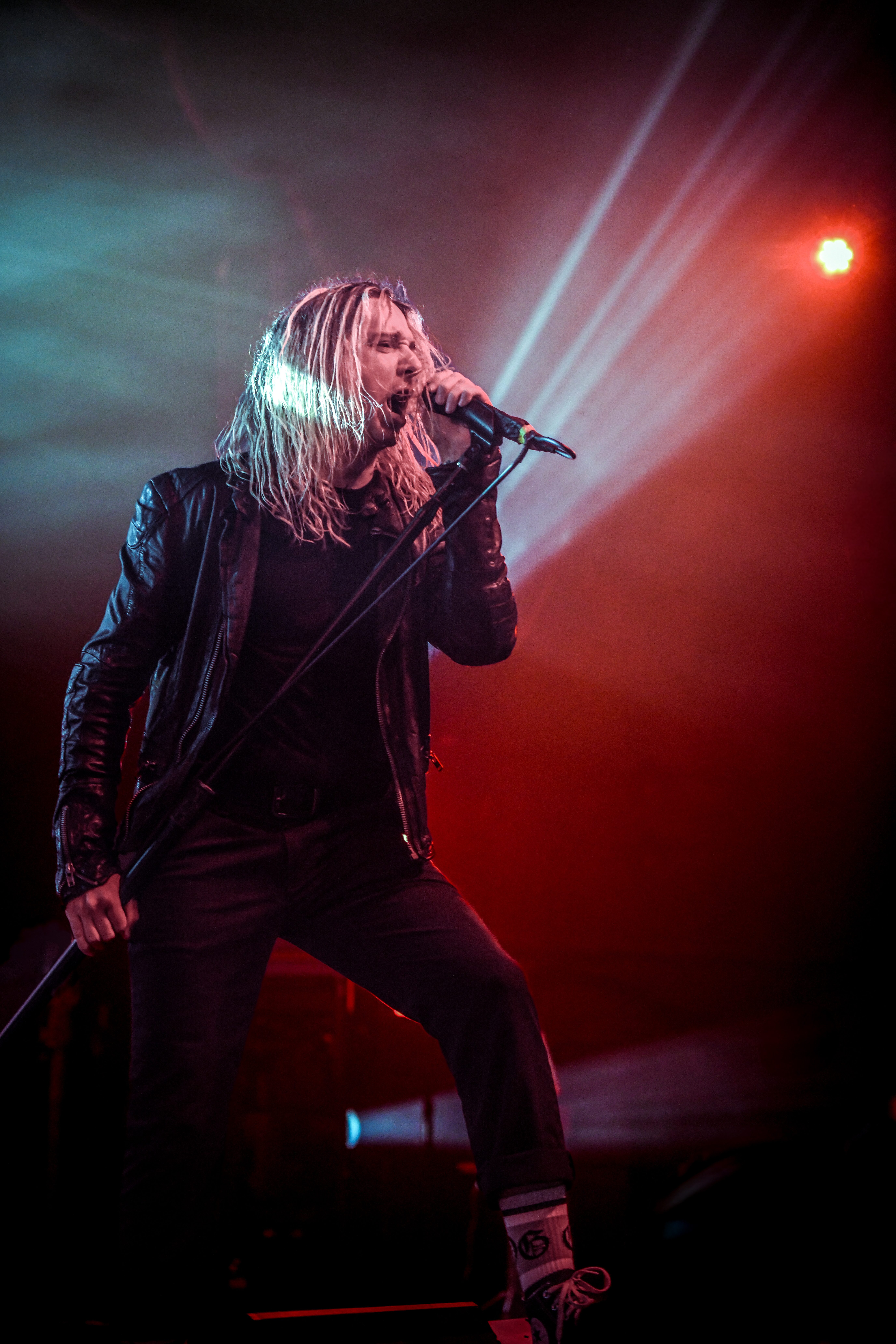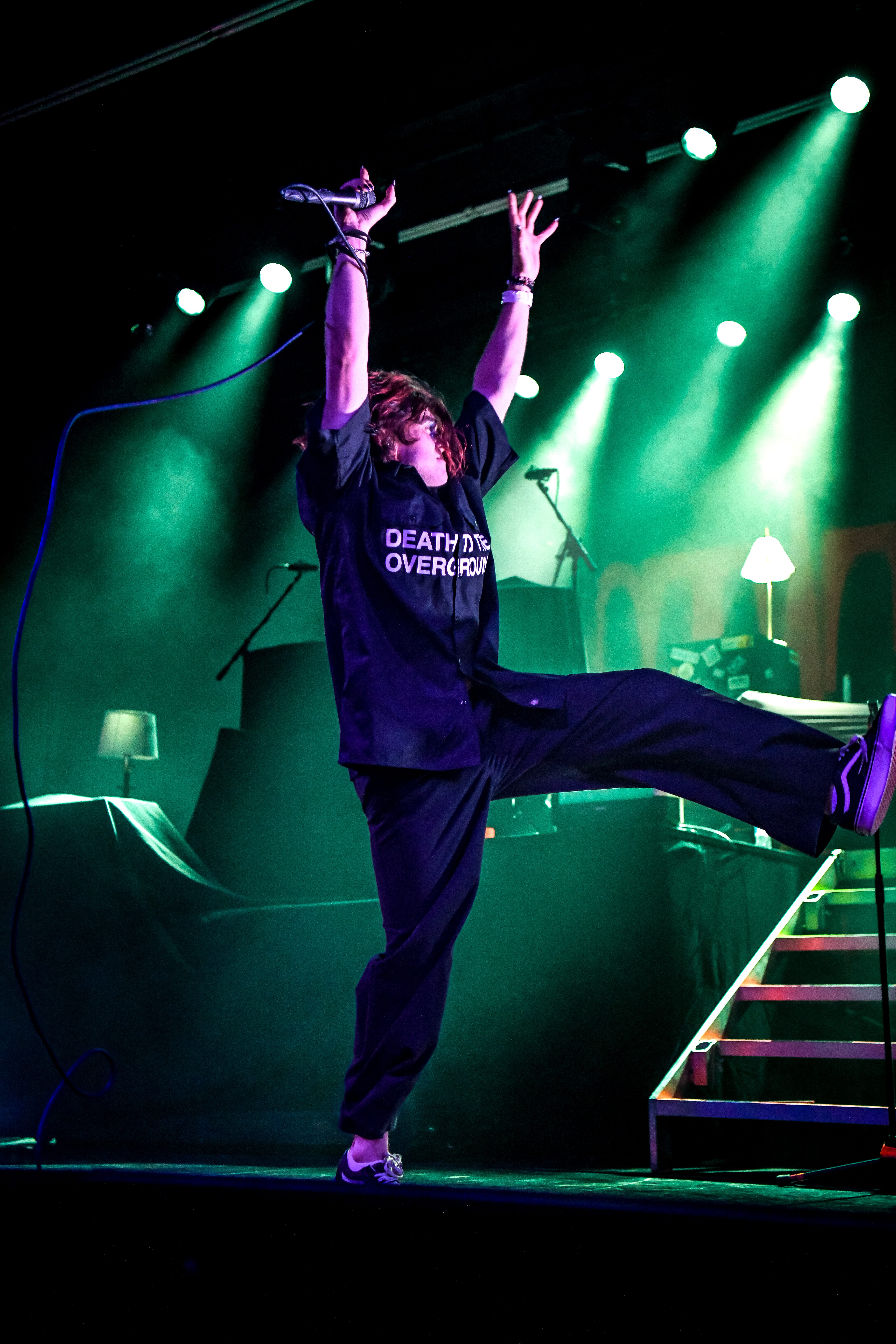A pair of old school TVs equipped with embedded VHS players began to display images of static, along with video scenes and lyrics as Static Dress took the stage. The post hardcore band from England opened the night, bringing an intense energy that was instantly matched by the crowd. Vocalist Olli Appleyard never stopped moving, keeping an impressive stamina while not missing a beat vocally. They engaged frequently with the crowd, encouraging circle pits and for everyone to make friends (or enemies) by keeping it moving. They expressed gratitude for being part of a tour for an album released two decades ago, when they were small children, noting that they aspire to be able to do the same one day. The band is relatively new to the scene, having formed in 2018. Since their formation, they have released two albums, Prologue… (Comic Book Soundtrack) and Rouge Carpet Disaster (Redux).