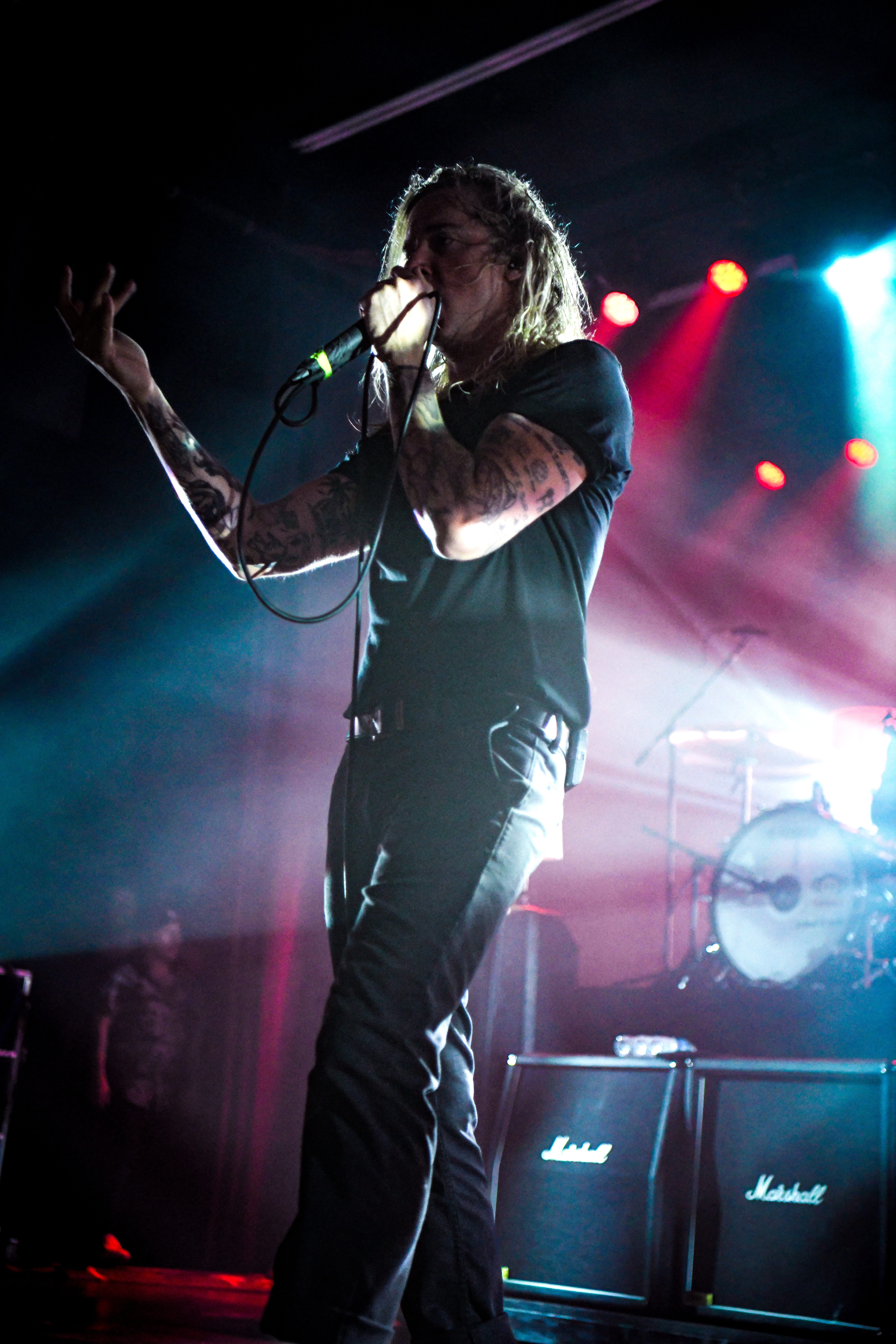 As the set changed over in preparation for Underoath to take the stage, a living room scene was revealed, complete with a couch, mini fridge, and lamps, situated in front of a large TOCS backdrop. Smoke filled the air and the lights slowly dimmed until the only light that remained was from a lamp beside the couch. Drummer and co-vocalist Aaron Gillespie took his place on the couch beneath the light for a solo performance of the final track off of They’re Only Chasing Safety, “Some Will Seek Forgiveness, Others Escape.” The remaining members of the band took the stage, and Aaron took his place behind the drum set before launching into the play through of the remainder of that album. The energy of both the band and the audience was next level from the start. With the opening notes of “A Boy Brushed Red Living In Black and White,” a constant stream of crowd surfers kept security on their toes. Singer Spencer Chamberlain took a break after “The Impact of Reason” to say that this show was on its way to being his favorite show of the tour. The band invited a family to the stage to take a seat on the couch for “Reinventing Your Exit.” This family had two young children, who shared that they became fans of the band because their songs were on their bedtime playlist. Gillespie expressed that he loves how the band has become woven into people’s lives through gestures like this, and he thanked the crowd for allowing them to be part of their journey. Chamberlain joined the pit on the barricade for “Down, Set, Go” which took the energy of the crowd up even higher. As the band played the final notes of that album, a wall of light appeared from the front of stage, shielding the audience from anything happening behind. After several minutes passed, the curtain of light dropped, revealing that the living room setup had been removed from the stage. The band then treated the audience to a number of other favorites, beginning with their new song “Teeth,” and including a song that had not been played in Tempe since 2004- “When the Sun Sleeps.” They noted that they have released some new songs, which means a couple of things- “Our band is alive, happy, and well- we have another excuse to come back to Tempe.” The set came to a close with a performance “Writing on the Walls” which saw another explosion of energy from the crowd, with a few final crowd surfers and a giant mosh pit. “See you again sometime next year,” said Chamberlain while wrapping up the set.