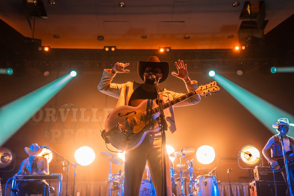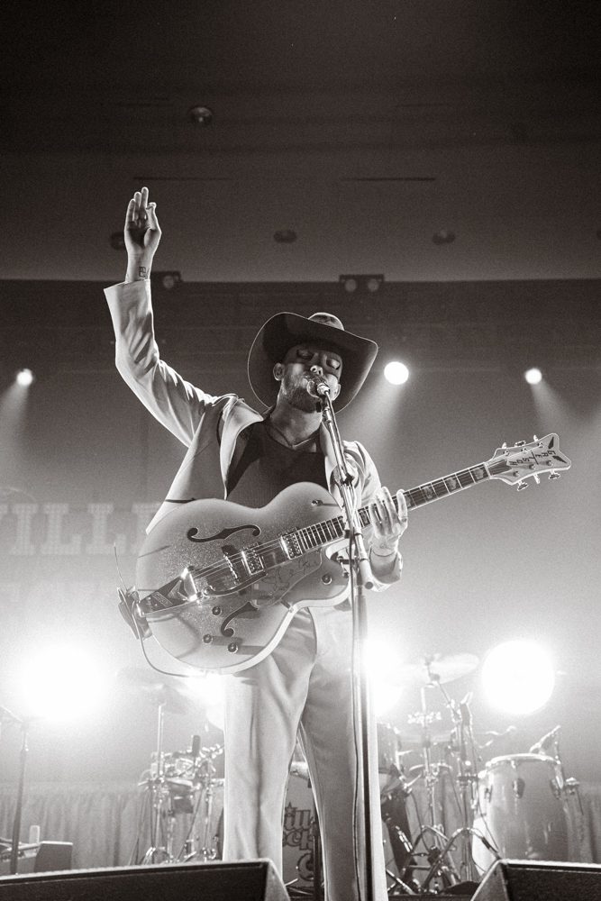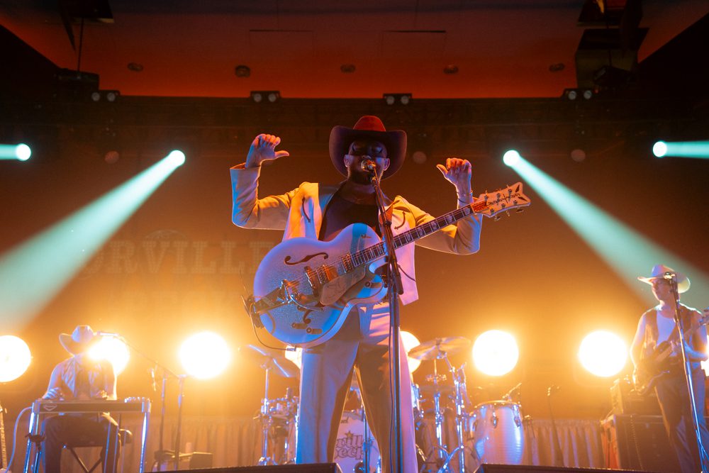 True to his theatrical roots, Peck’s performance was much about the visuals as it was about the music. His wardrobe changes—from embroidered suits to shimmering fringe—were a nod to the glamor of classic country stars like Patsy Cline and Dolly Parton, blending with his own avant-garde flair. The stage design incorporated desert motif, neon, cacti, and rich hues of gold and red, further immersing the audience in Peck’s western world.