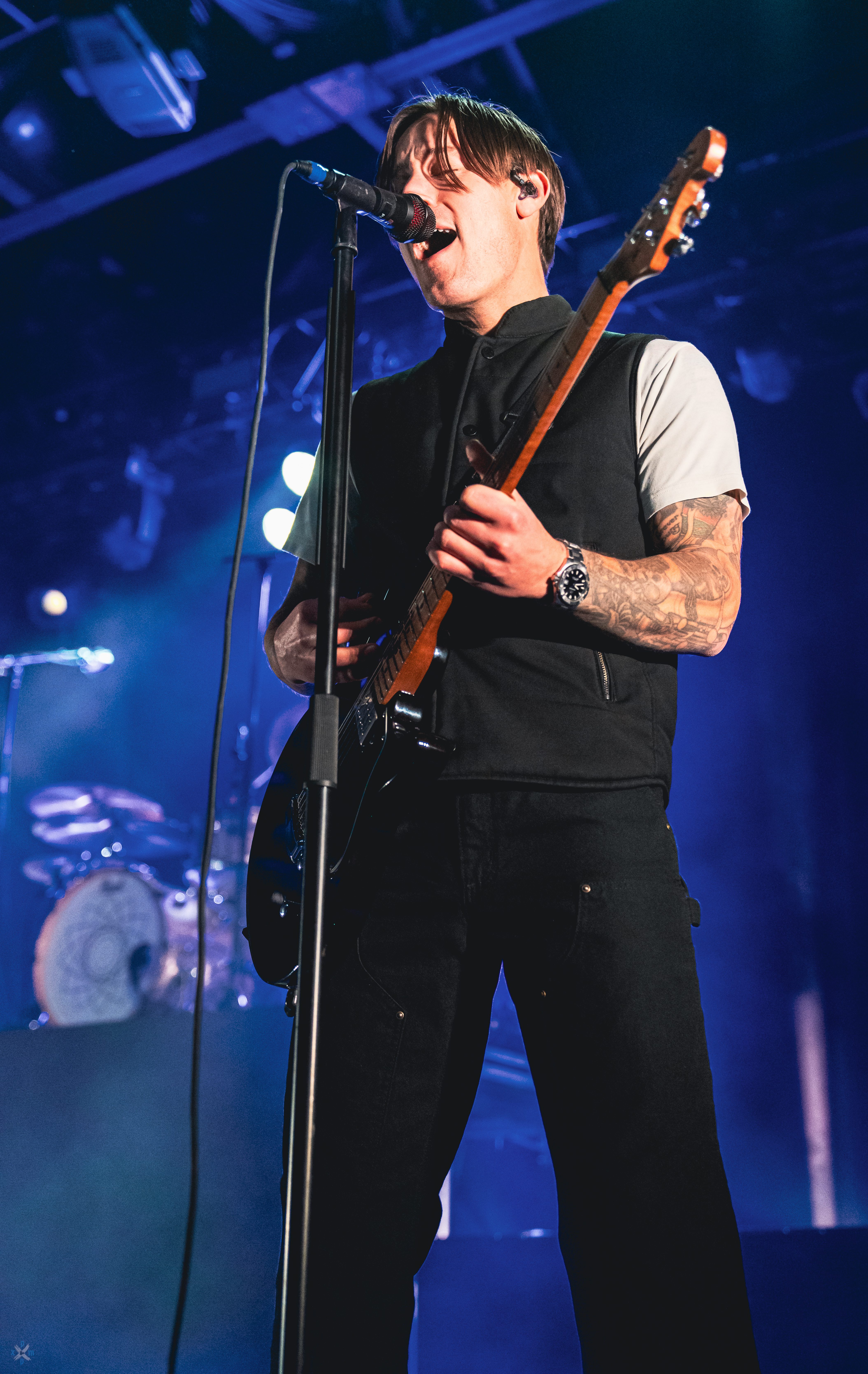 Finishing up the supporting acts was none other than Thursday, a New Jersey post-hardcore band formed in 1997, which was very influential in the 2000s post-hardcore and emo scene for their darker sound and heavy screaming vocals. You could feel the energy coming from the die hard fans that were able to secure a spot upfront. One cool thing I noticed was they had Wade MacNeil from Alexisonfire on guitar. He will be joining them for this run of shows! Thursday preformed their never before played most recent single, “Taking Inventory of a Frozen Lake,” which was released in 2024, making it one of the first new songs they have released since 2011! Their set was packed with hit after hit, such as “Understanding in a Car Crash,” and many more. The energy they brought to the crowd just proves that Silverstein‘s choice to have them go on before they performed was the best decision. Thursday gave everyone hope that they are back in the scene and stronger than ever.