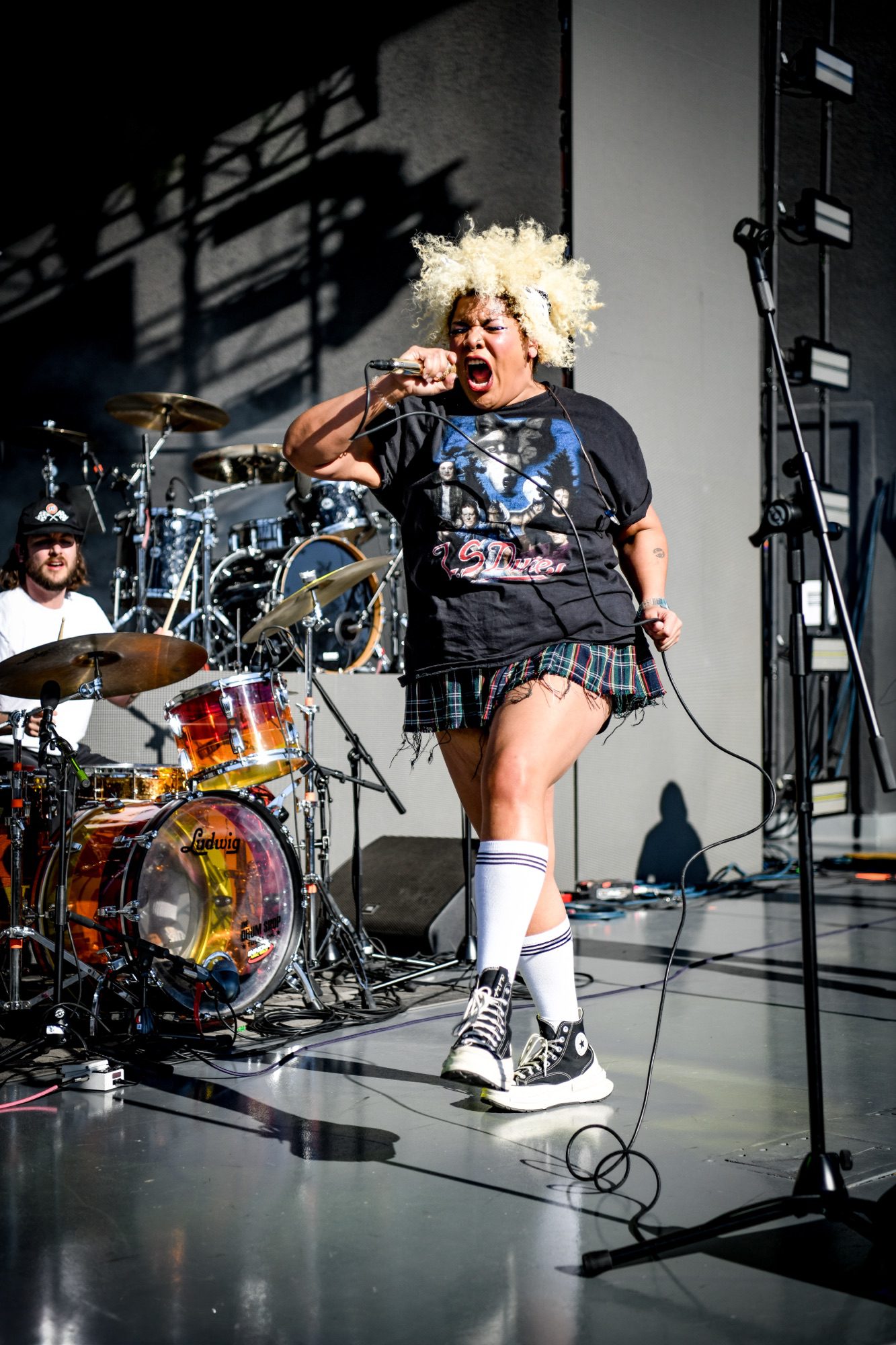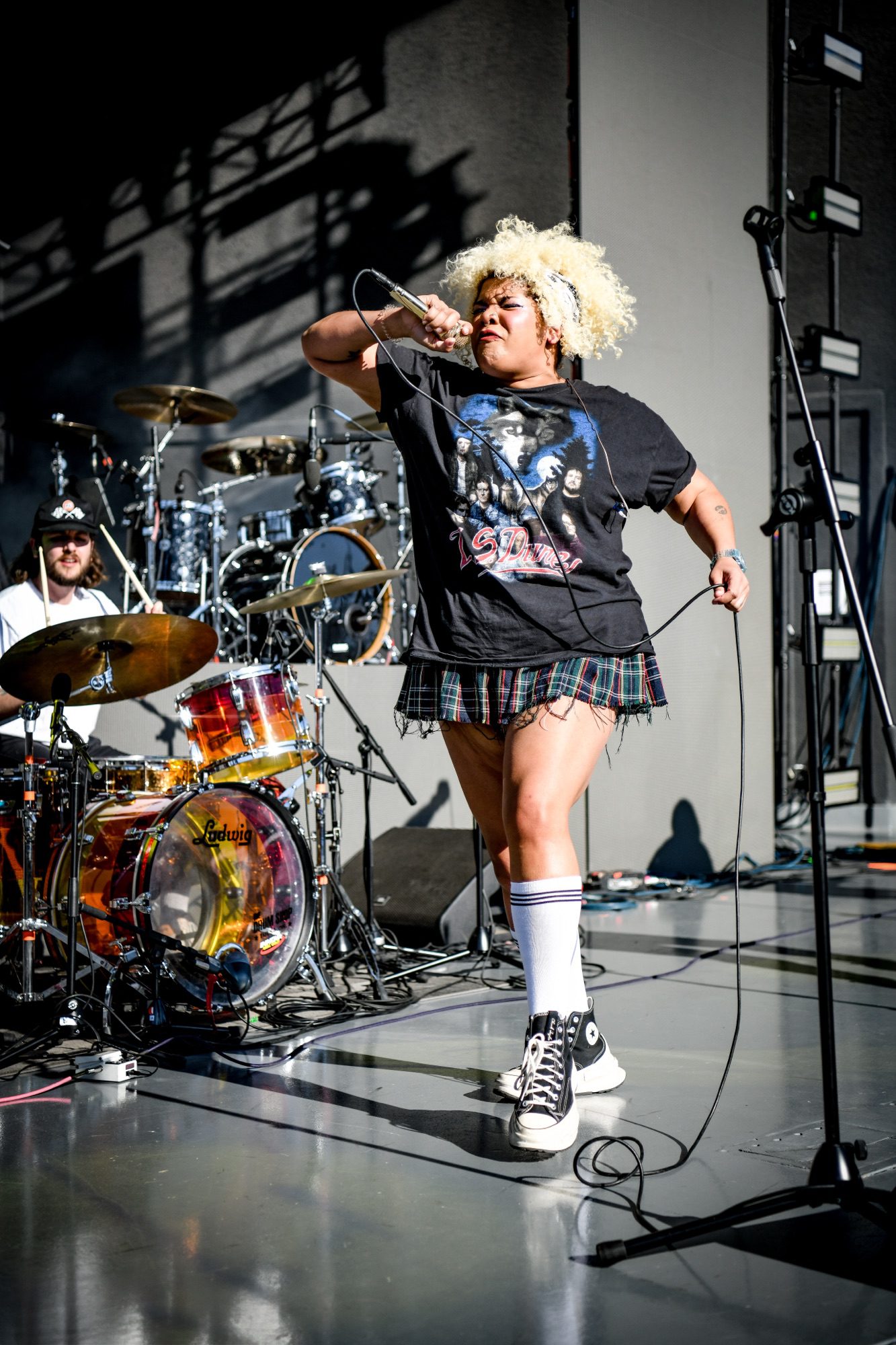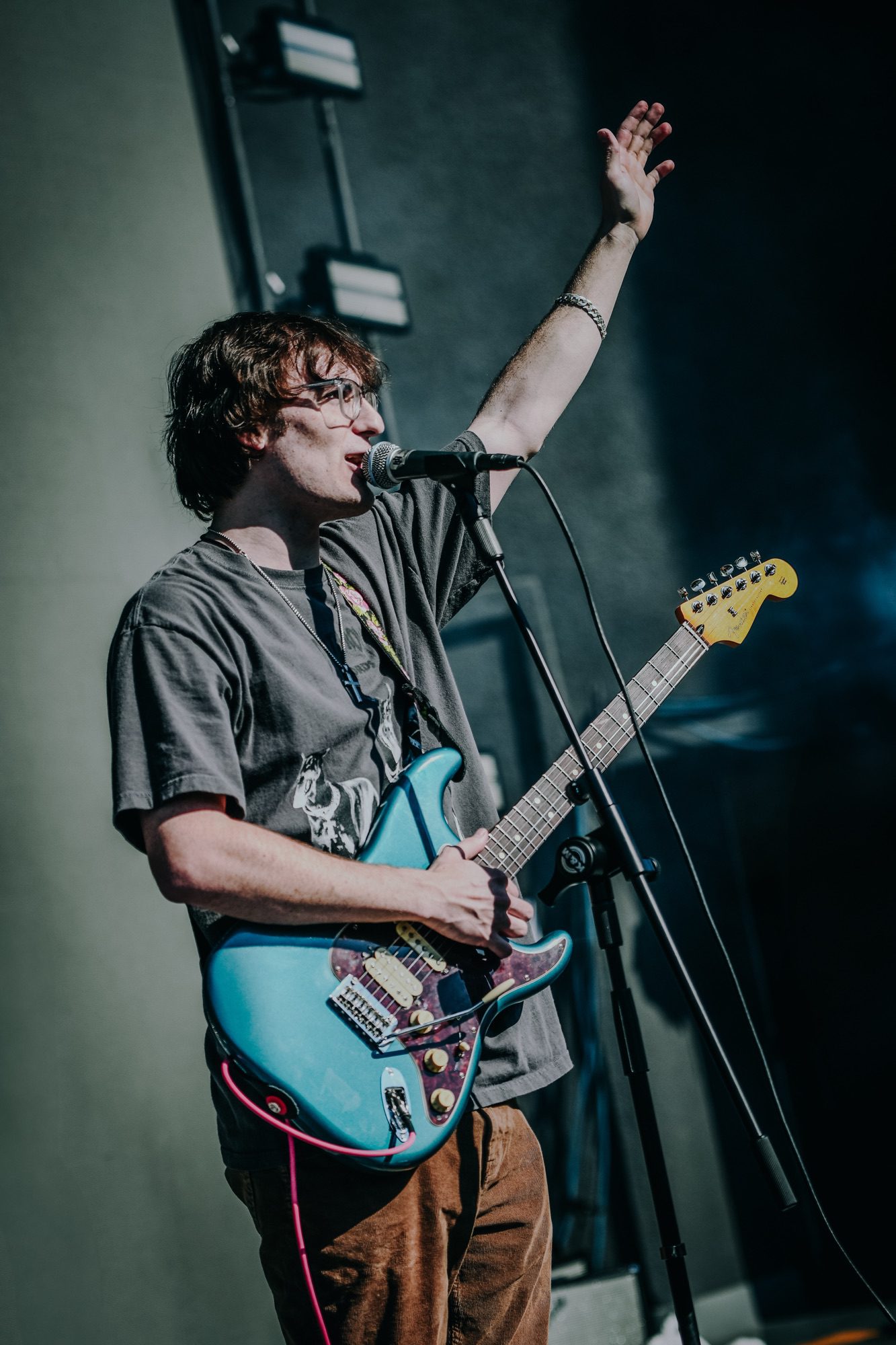 8123 Fest Day 2 Recap: Although much of the crowd was out until the wee hours of the morning at The Maine’s after-party, many turned up early to enjoy all that the day two had to offer- including another incredible lineup of artists. Phoenix-based alternative/indie rock band Practically People kicked things off with an unexpected twist- tossing stuffed animals into the crowd as they made their entrance. They would later bring out a giant slingshot to fling merch items into the crowd, setting a fun and playful tone for the day. The performance marked their largest to date and showcased many songs off of their 2024 debut album Origins. The band was well received by the crowd, many of whom were hearing their music for the first time, having traveled to the fest from all over the world. This would unfortunately be the band’s last performance with frontman Dmitri Bell, as the band announced on Monday that he would be parting ways with the band. But don’t worry—Practically People is far from done. Singer, songwriter, and bassist Jane Harris will be stepping up to lead the band into their next chapter. Fans can expect plenty more music, with Harris now at the helm.
