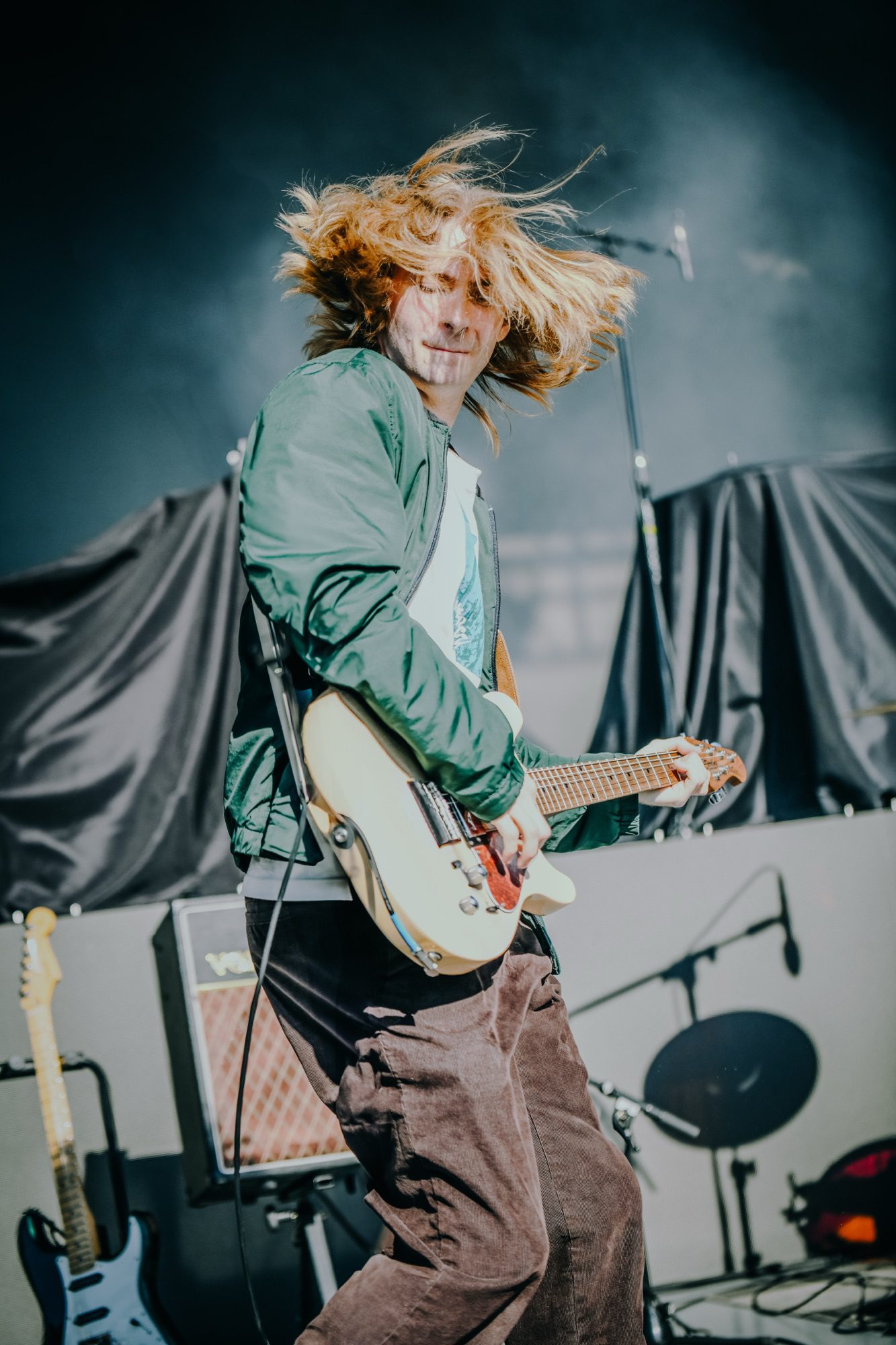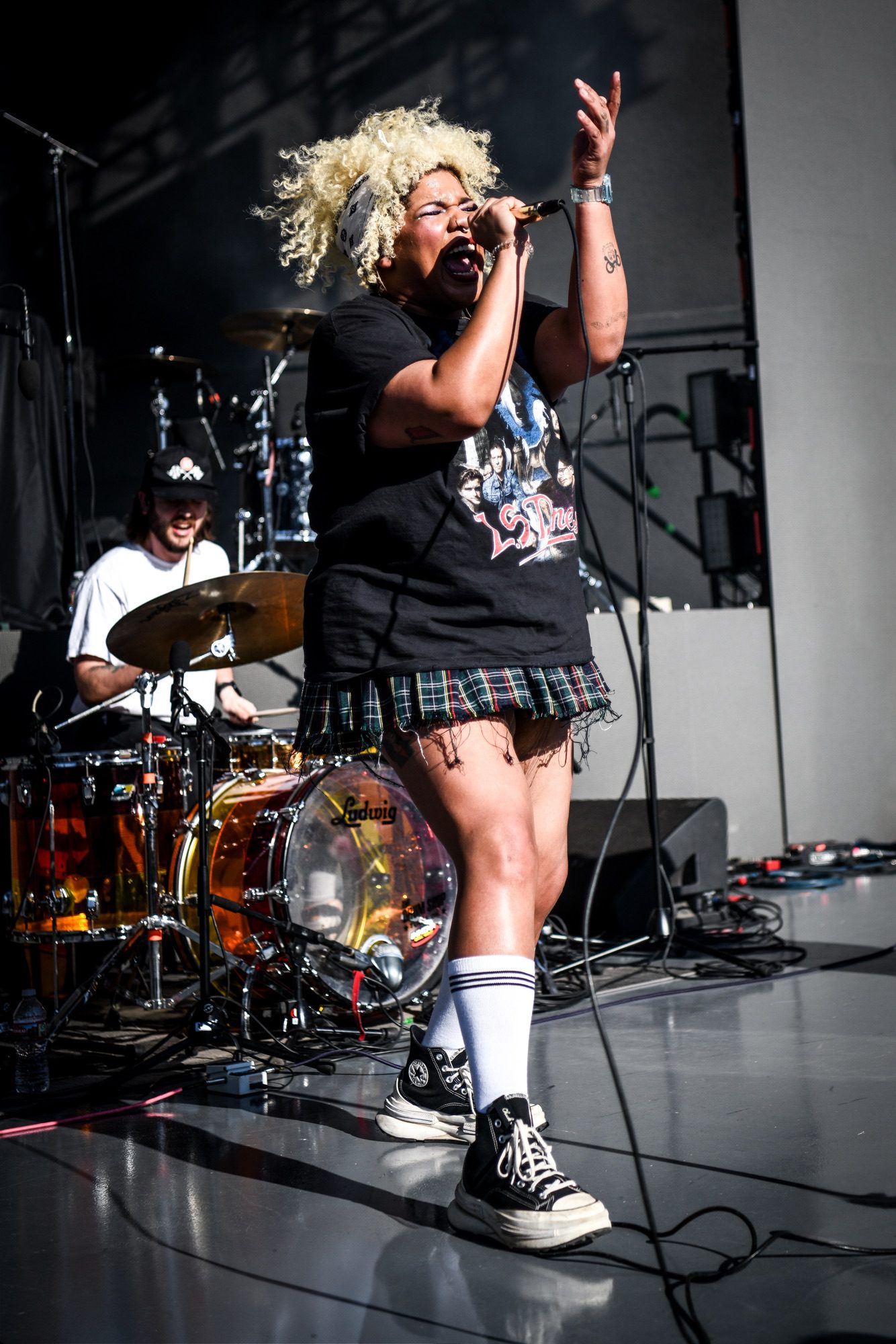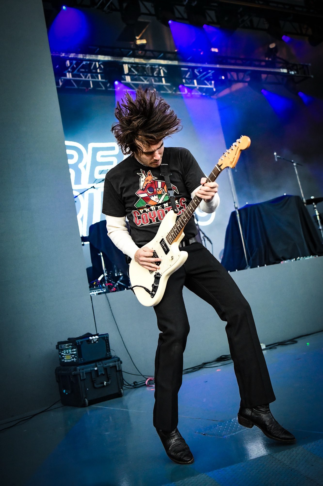 8123 Fest Day 2 Recap: Although much of the crowd was out until the wee hours of the morning at The Maine’s after-party, many turned up early to enjoy all that the day two had to offer- including another incredible lineup of artists. Phoenix-based alternative/indie rock band Practically People kicked things off with an unexpected twist- tossing stuffed animals into the crowd as they made their entrance. They would later bring out a giant slingshot to fling merch items into the crowd, setting a fun and playful tone for the day. The performance marked their largest to date and showcased many songs off of their 2024 debut album Origins. The band was well received by the crowd, many of whom were hearing their music for the first time, having traveled to the fest from all over the world. This would unfortunately be the band’s last performance with frontman Dmitri Bell, as the band announced on Monday that he would be parting ways with the band. But don’t worry—Practically People is far from done. Singer, songwriter, and bassist Jane Harris will be stepping up to lead the band into their next chapter. Fans can expect plenty more music, with Harris now at the helm.