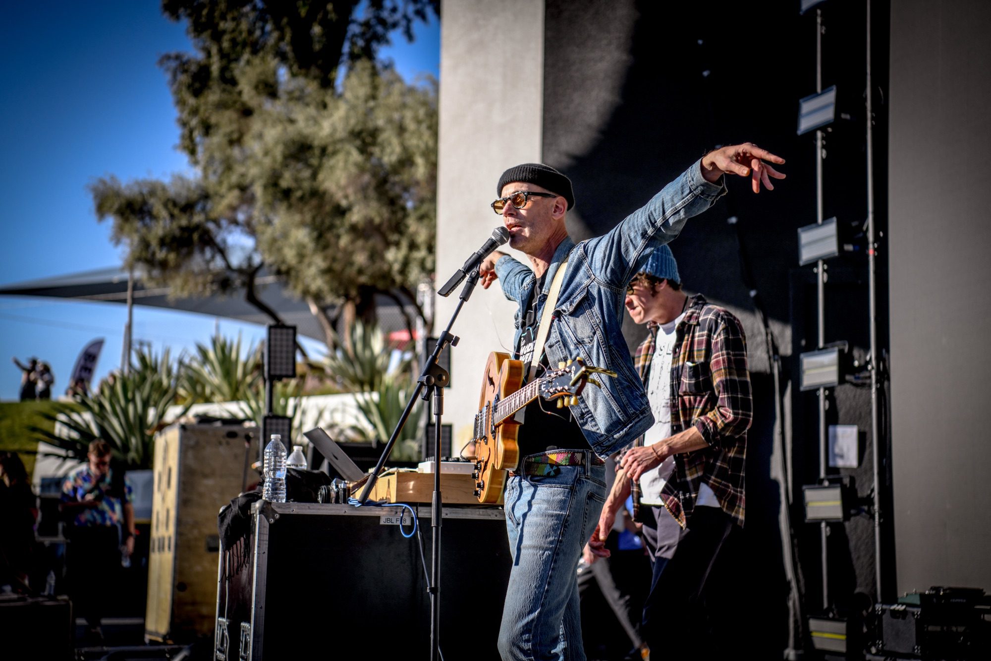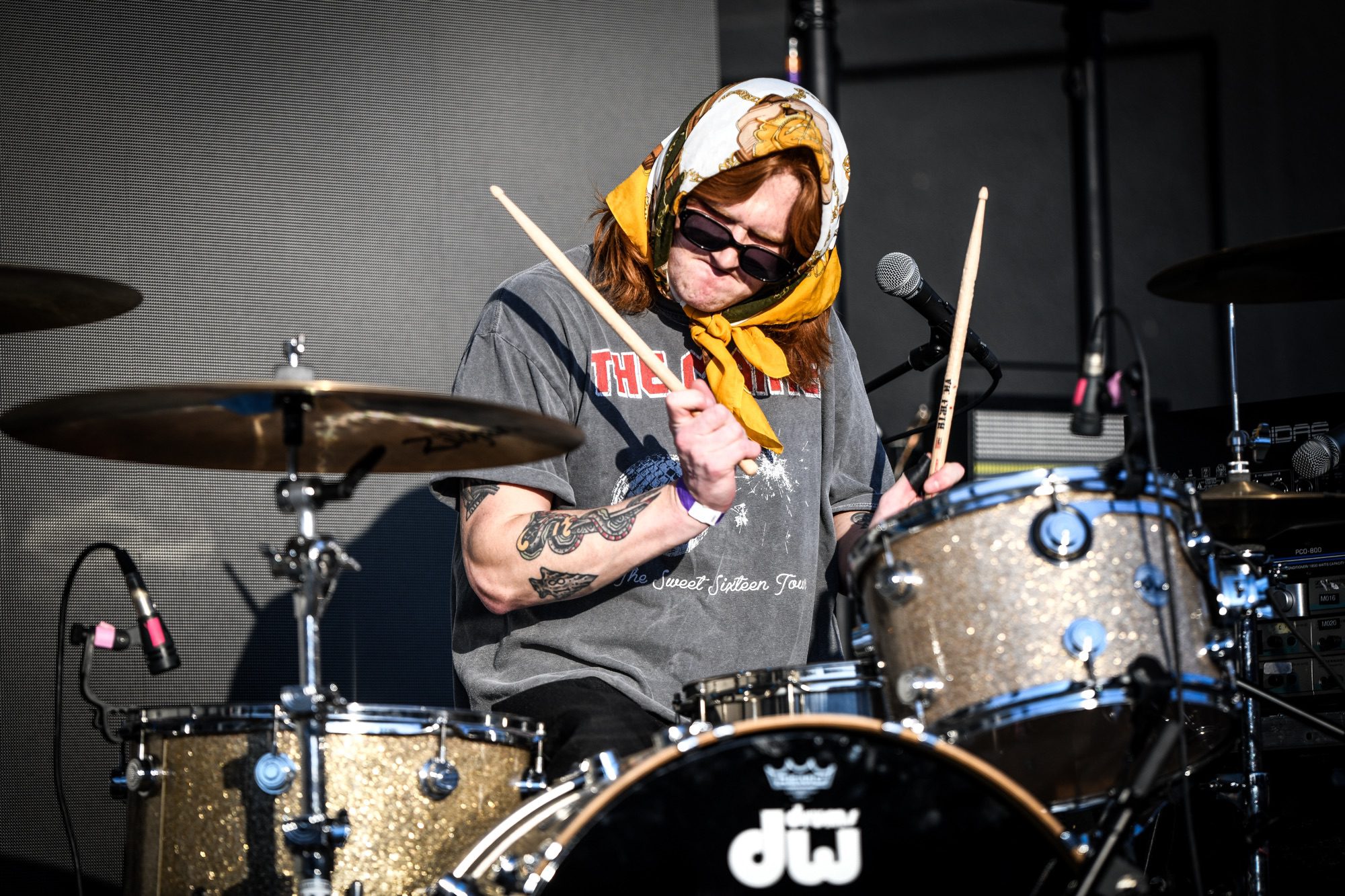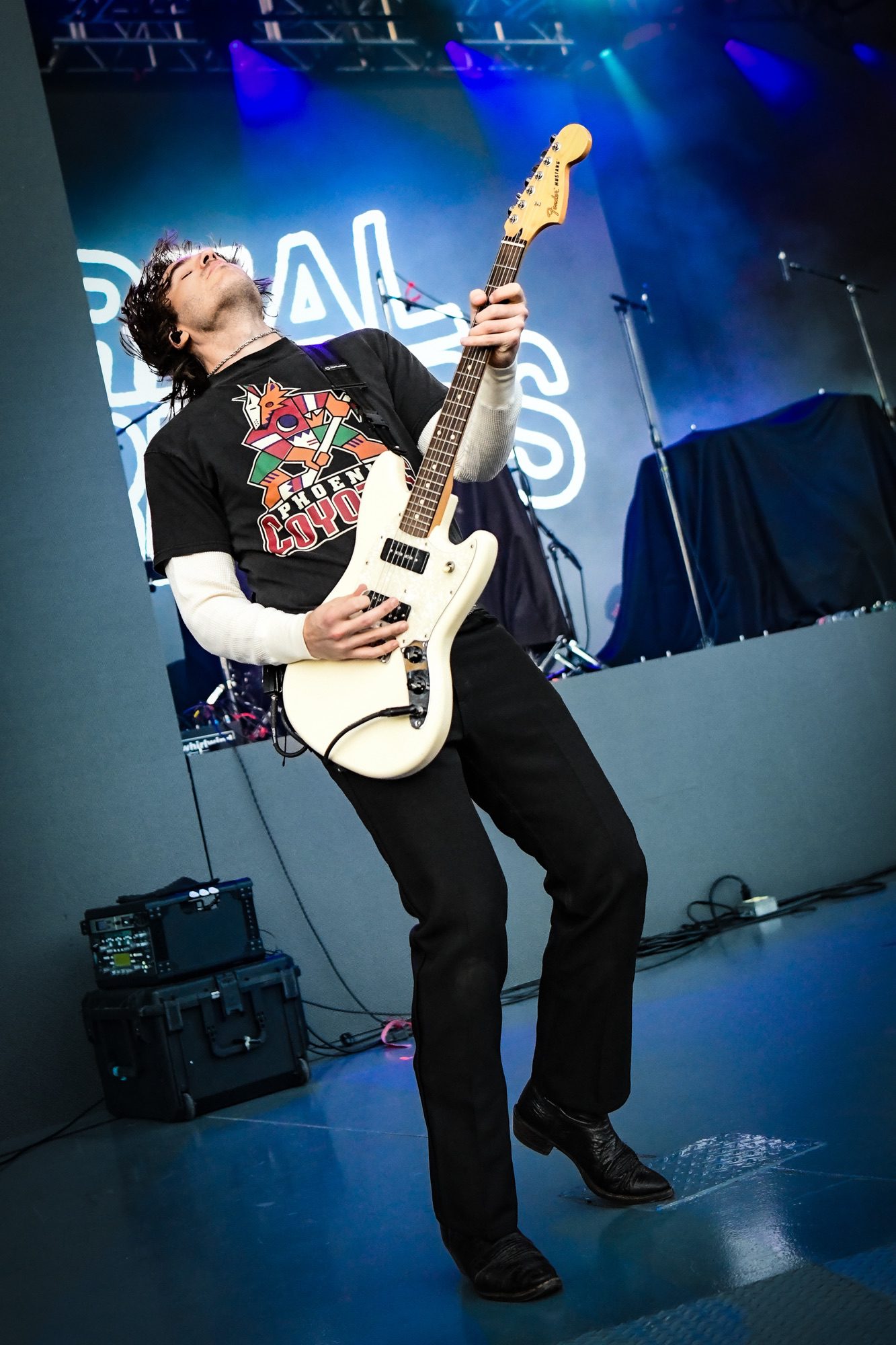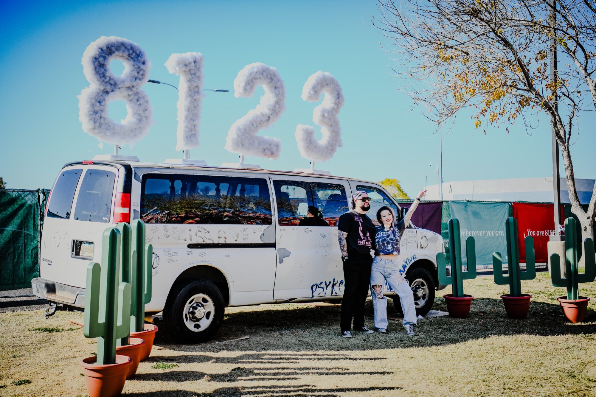 8123 Fest Day 1 Recap: The fest kicked off Friday afternoon and the grounds were alive with music and plenty of ways to engage and enjoy the atmosphere. Fans could snap photos with a variety of art installations, including a beloved piece of The Maine’s history— their old touring van—on which fans could pen notes to the band, expressing what 8123 means to them. Multiple food trucks lined the back of the venue, offering a wide variety of tasty options, while outdoor lounges provided alcohol tastings. Fans could also purchase cans of Cider Corps‘ special honey lemonade cider, created in collaboration with The Maine and aptly named Sticky after the iconic song. Festival-goers also got into the spirit with sparkling cowboy hats that added extra glitz to the sunny, yet chilly Arizona day. Despite the cooler temperatures in the valley, the vibe was warm and welcoming throughout the day.