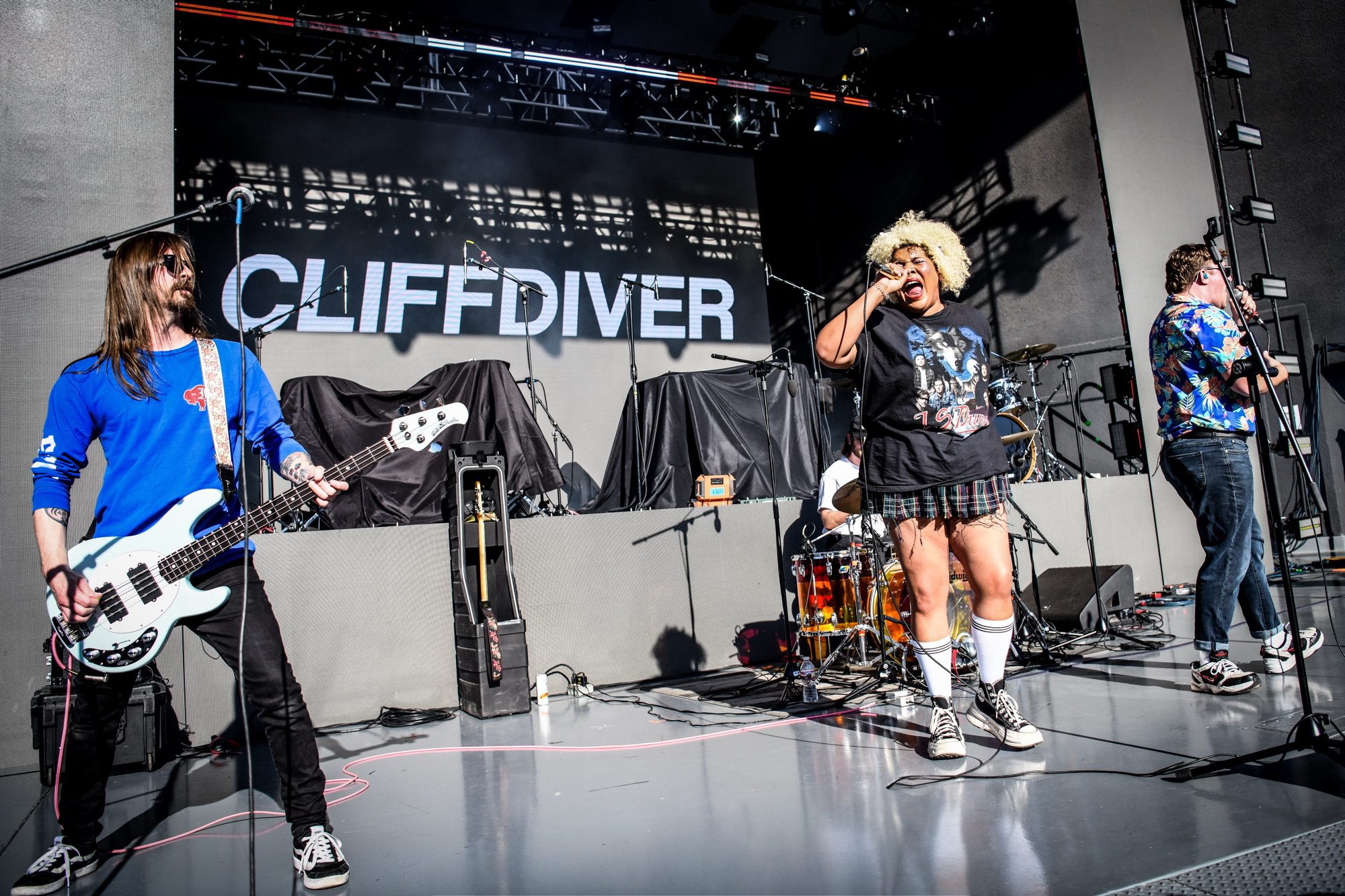 CLIFFDIVER, the midwest emo/alt-rock band out of Oklahoma, took the stage next, bringing their A-game to the stage despite the recent departure of two members of their seven-piece lineup. The band had the crowd completely hooked from the get-go, with co-vocalist Briana Wright stealing the spotlight with her relentless energy. Wright was a force of nature, constantly in motion while engaging the crowd, making it impossible to look away. The rest of the band matched her energy, and the crowd was fully invested, often screaming back the lyrics to songs like “dayz gone”. The set featured many songs from their latest release, Birdwatching, including “thirty, flirty, and thriving!!!” and “goin’ for the garbage plate”, a song about fighting the best that you can. The band puts on a must-see performance— be sure to check them out next time they roll through your city!