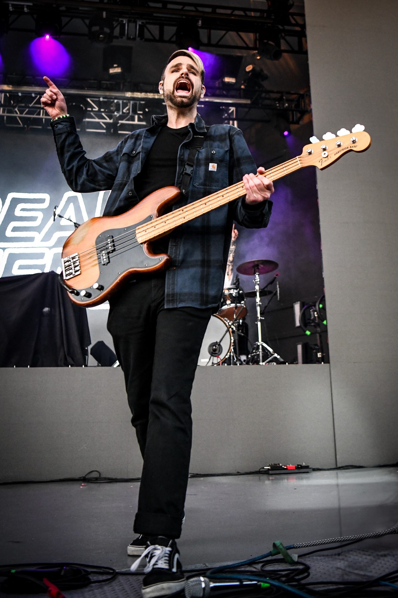 As the sun started to set, Real Friends took to the stage, inciting pure chaos from the crowd (in a good way!) from start to finish. A literal stream of crowd surfers kept security on their toes as the band put on an absolute show, performing songs like “Our Love Was Like a Sad Song”, “Me First”, and “Late Nights in My Car”. In a particularly vulnerable moment, the band performed “Waiting Room” off of their recently released album, Blue Hour. The song, written about the passing of a band member’s father, was dedicated to anyone dealing with grief or loss in their life. The energy immediately picked back up, with a challenge of a jumping competition from the crowd, before ending the set with “Tell Me You’re Sorry.” The band will take a brief hiatus from touring before joining Silverstein on the Spring Edition of their 25 Years of Noise tour in April.