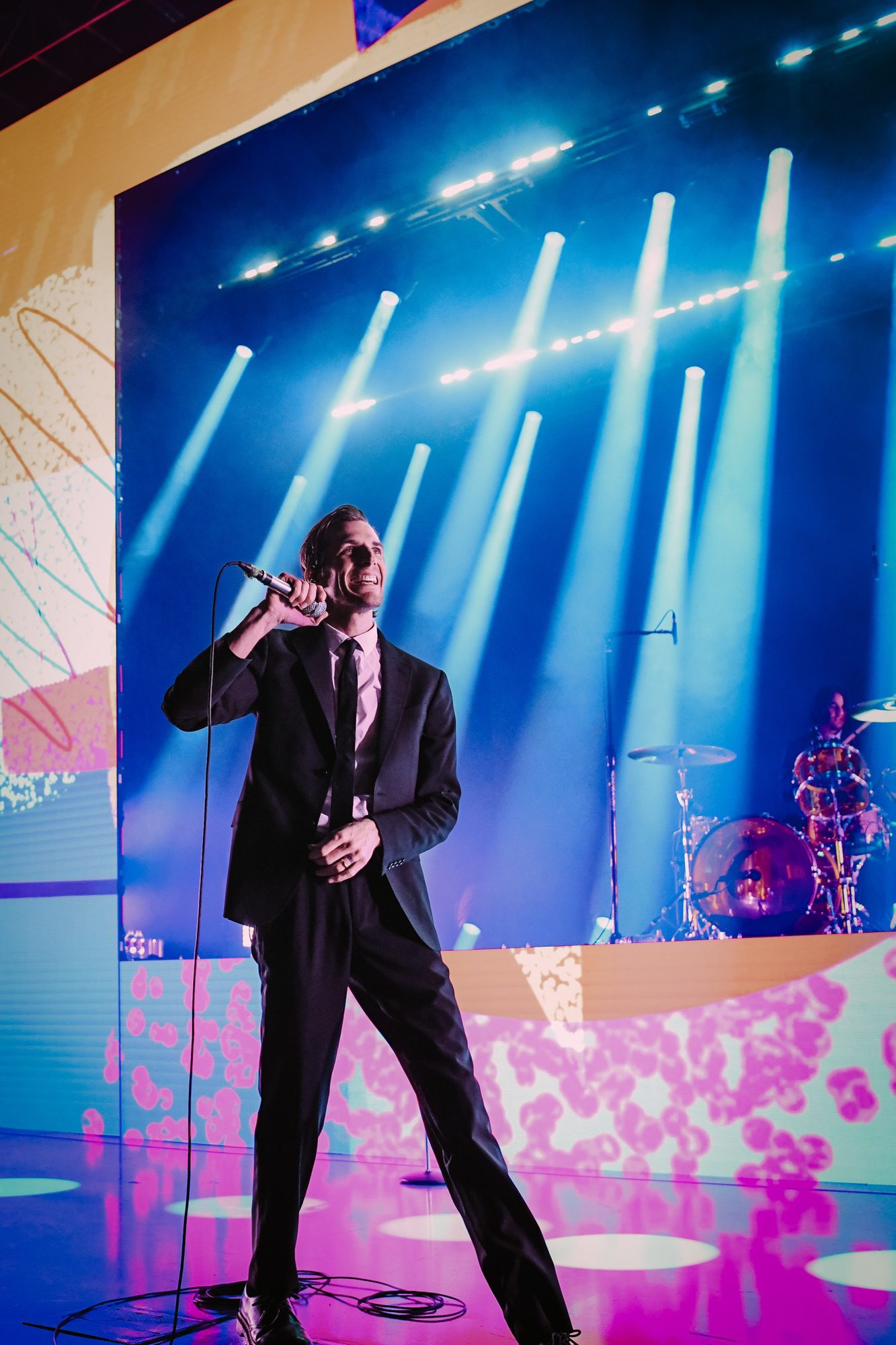 As the crowd anxiously awaited the final set of the night, a timer appeared on the screen, counting down the seconds until The Maine would take the stage. The crowd counted down in unison, and as the clock struck zero, the words “It’s”, “Time”, “To” appeared on the screen before the words “Jump”, “Drink”, “Rage”, “Cry”, “Laugh”, “Puke”, “Dance”, and “Touch” flashed repeatedly on the screen as the Valley’s favorite band made their grand entrance, dressed to the nines in black tuxedos. While night one featured front-to-back playthroughs of American Candy and their self-titled album, the setlist this evening was a carefully curated mix of favorites and deep cuts spanning most of their catalog, all set to stunning visual displays tailored to each individual song. As the band took to the stage, they immediately launched into “Touch”, igniting a dance party within the crowd who sang along with every word. The Maine brought an unparalleled energy to the stage, rivaled only by the fans who matched every bit of intensity brought by The Maine. The set had two guest appearances, with Nick Santino of Beach Weather taking the stage to perform “Thoughts I have While Lying in Bed” with the band, and Charlotte Sands appearing with an incredibly powerful vocal performance during “Loved You A Little”.