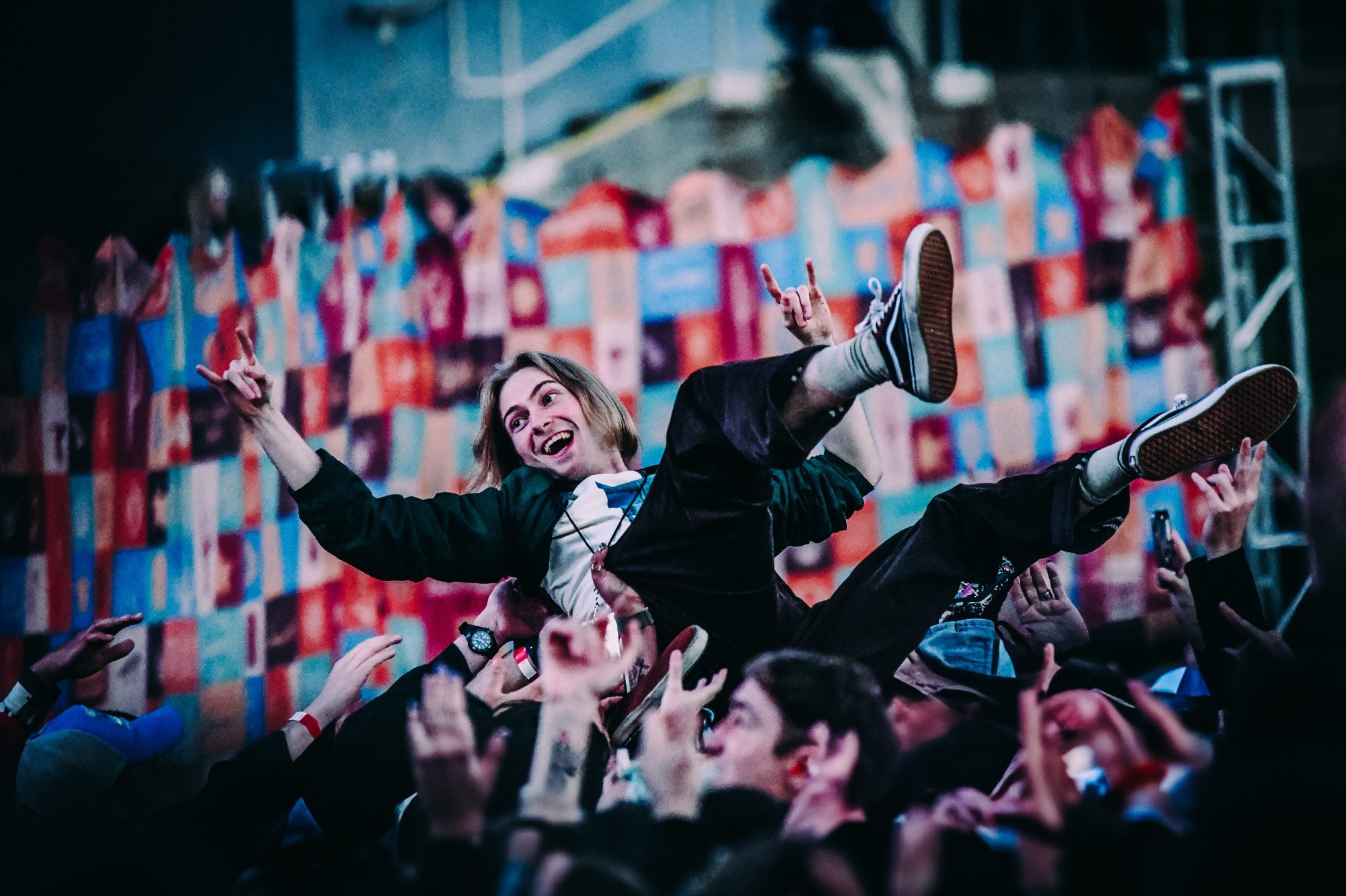 As the sun started to set, Real Friends took to the stage, inciting pure chaos from the crowd (in a good way!) from start to finish. A literal stream of crowd surfers kept security on their toes as the band put on an absolute show, performing songs like “Our Love Was Like a Sad Song”, “Me First”, and “Late Nights in My Car”. In a particularly vulnerable moment, the band performed “Waiting Room” off of their recently released album, Blue Hour. The song, written about the passing of a band member’s father, was dedicated to anyone dealing with grief or loss in their life. The energy immediately picked back up, with a challenge of a jumping competition from the crowd, before ending the set with “Tell Me You’re Sorry.” The band will take a brief hiatus from touring before joining Silverstein on the Spring Edition of their 25 Years of Noise tour in April.