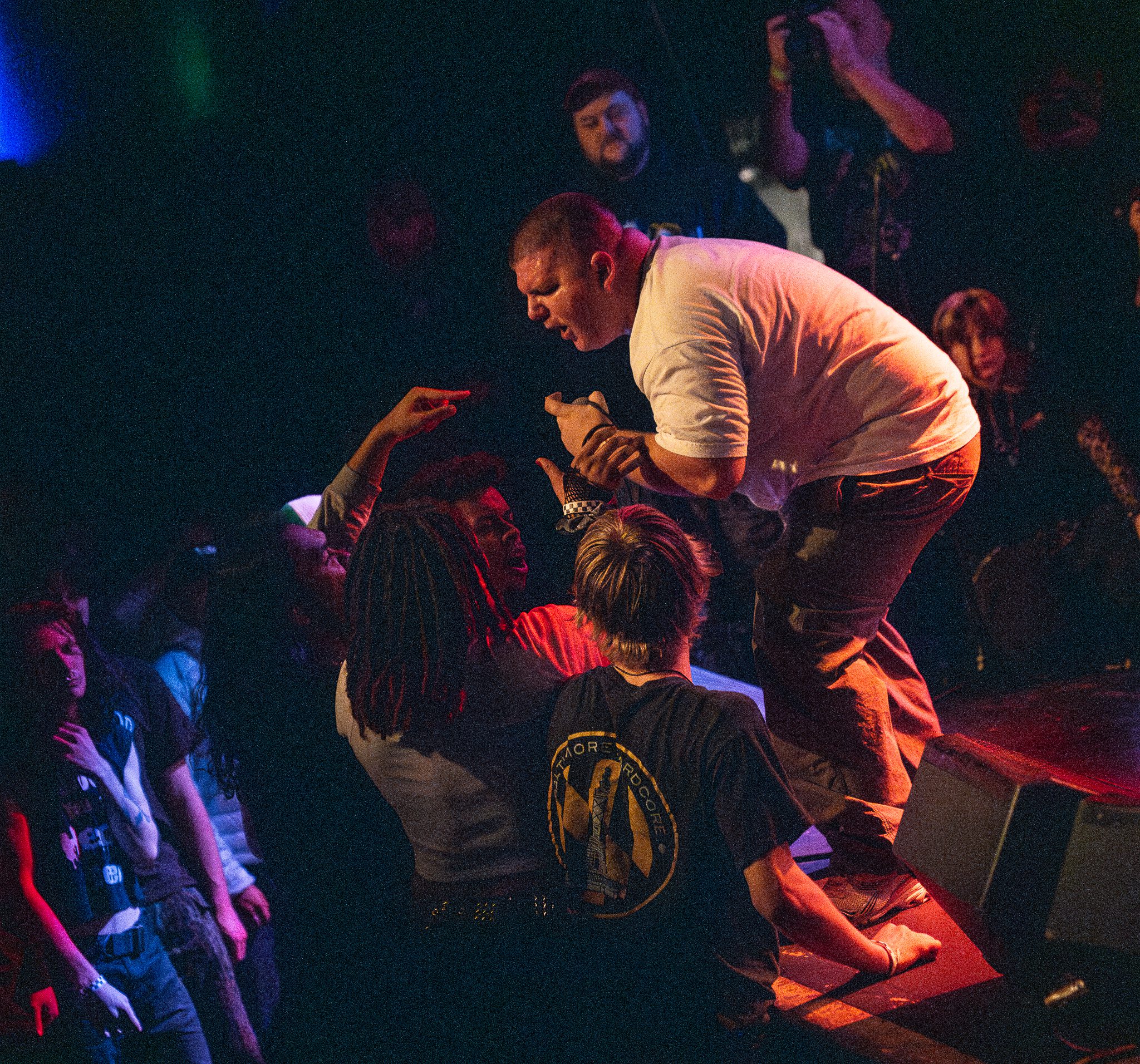 Angel Du$t’s melodic yet hardcore sound makes it impossible to stand still while their music plays—I couldn’t help but also move around with my camera! Justice Tripp, the lead singer, invited anyone who wanted to get on stage to join him, and the crowd did not disappoint! Members from almost every band on the bill got up and sang with them throughout different songs.