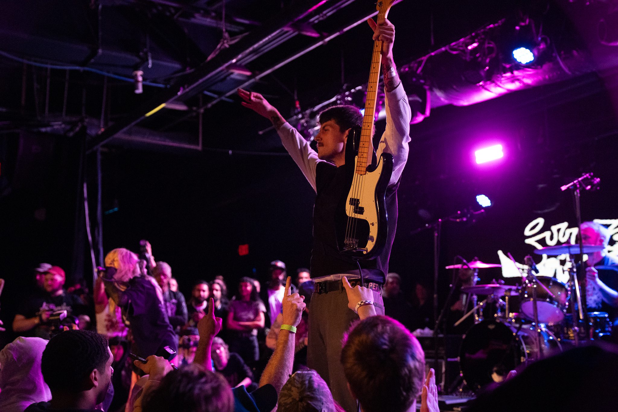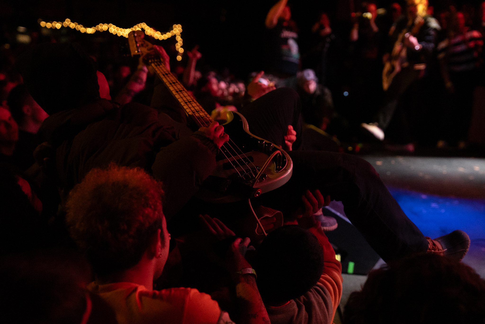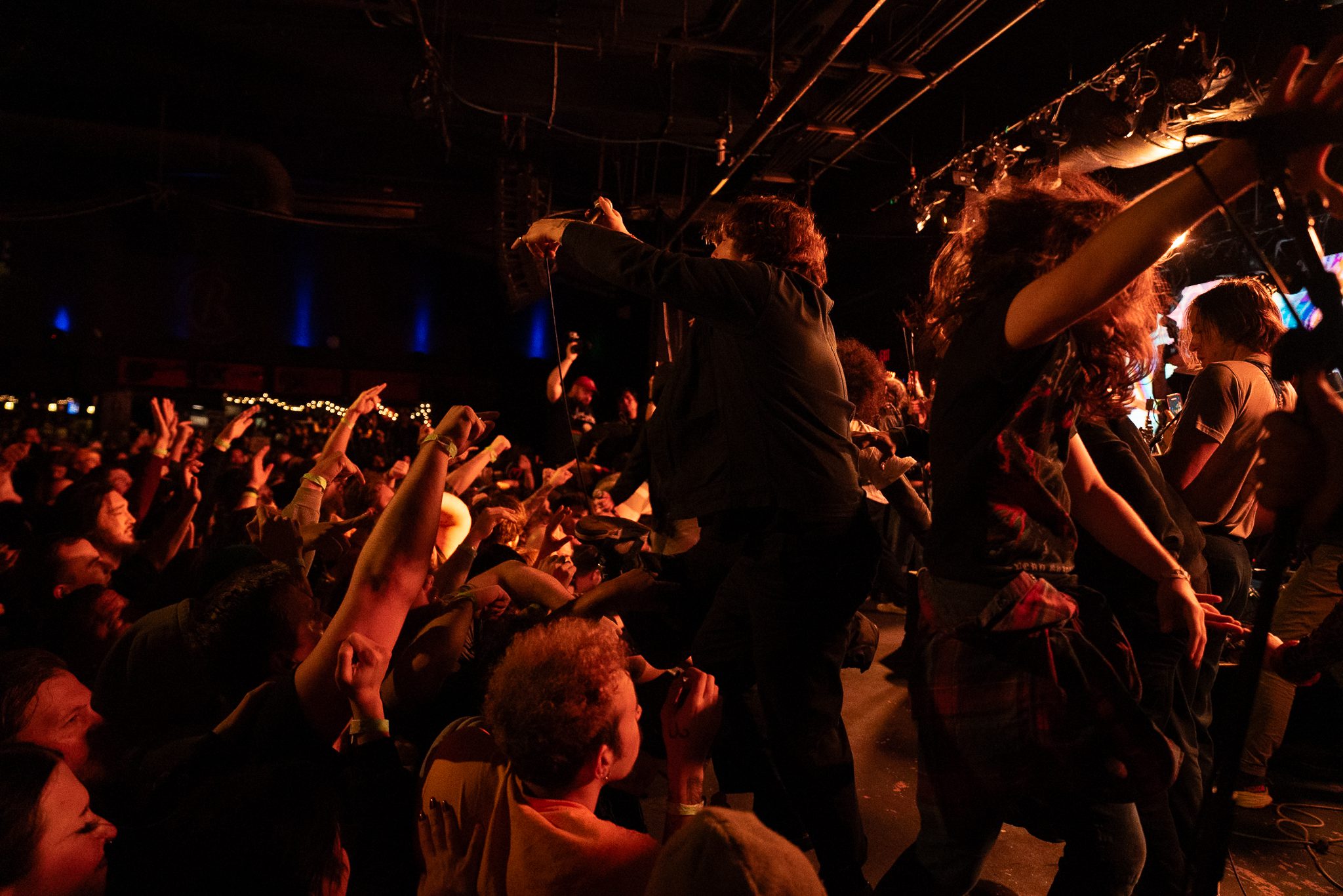 The stage and the crowd erupted into absolute chaos as people were climbed up and stage diving off while everyone else sang along and moshed. Members of the band jumped into the crowd and were being held up while continuing to play!