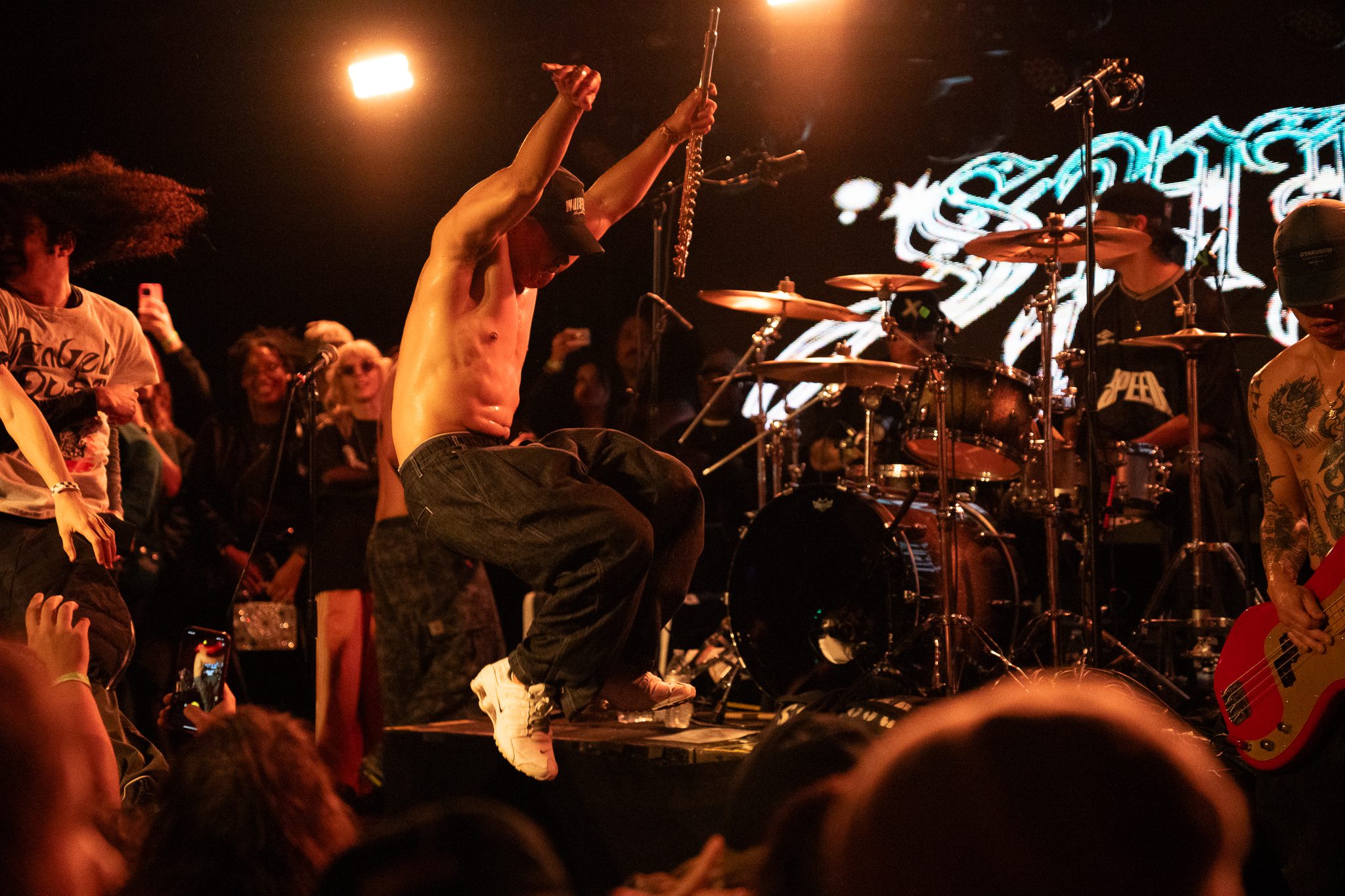 Around 9:50 p.m., SPEED got the crowd ready by turning off the lights, leaving only a dark red glow on as lead singer Jem Siow,walked to the mic— with his flute!