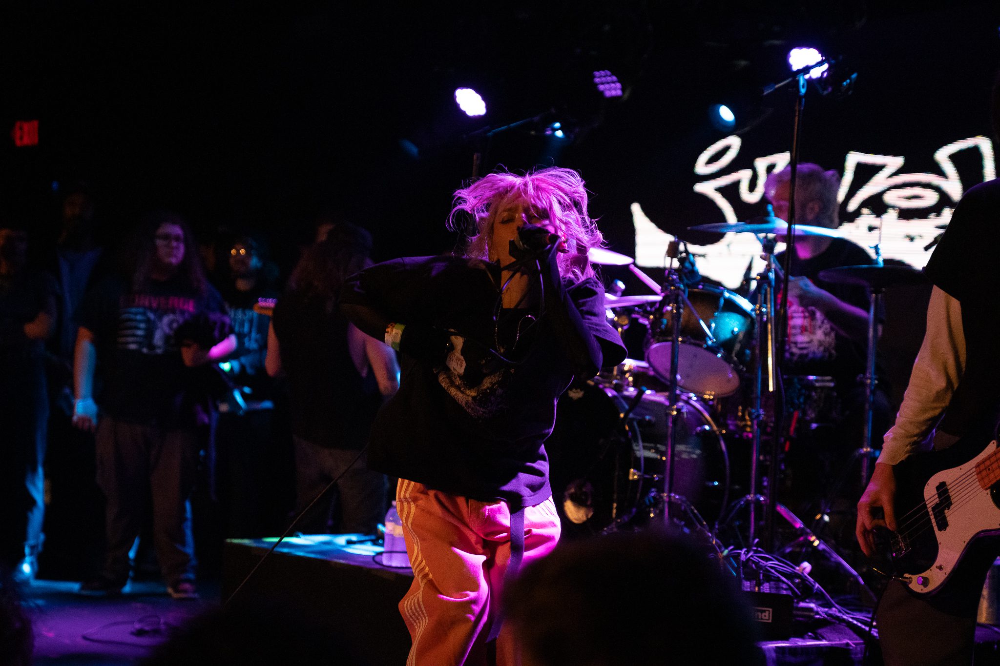 Angel du$t took the stage right after E-Town Concrete and opened with saying, “every band tonight is Baltimore City hardcore,” before launching into their song “Toxic Boombox.”