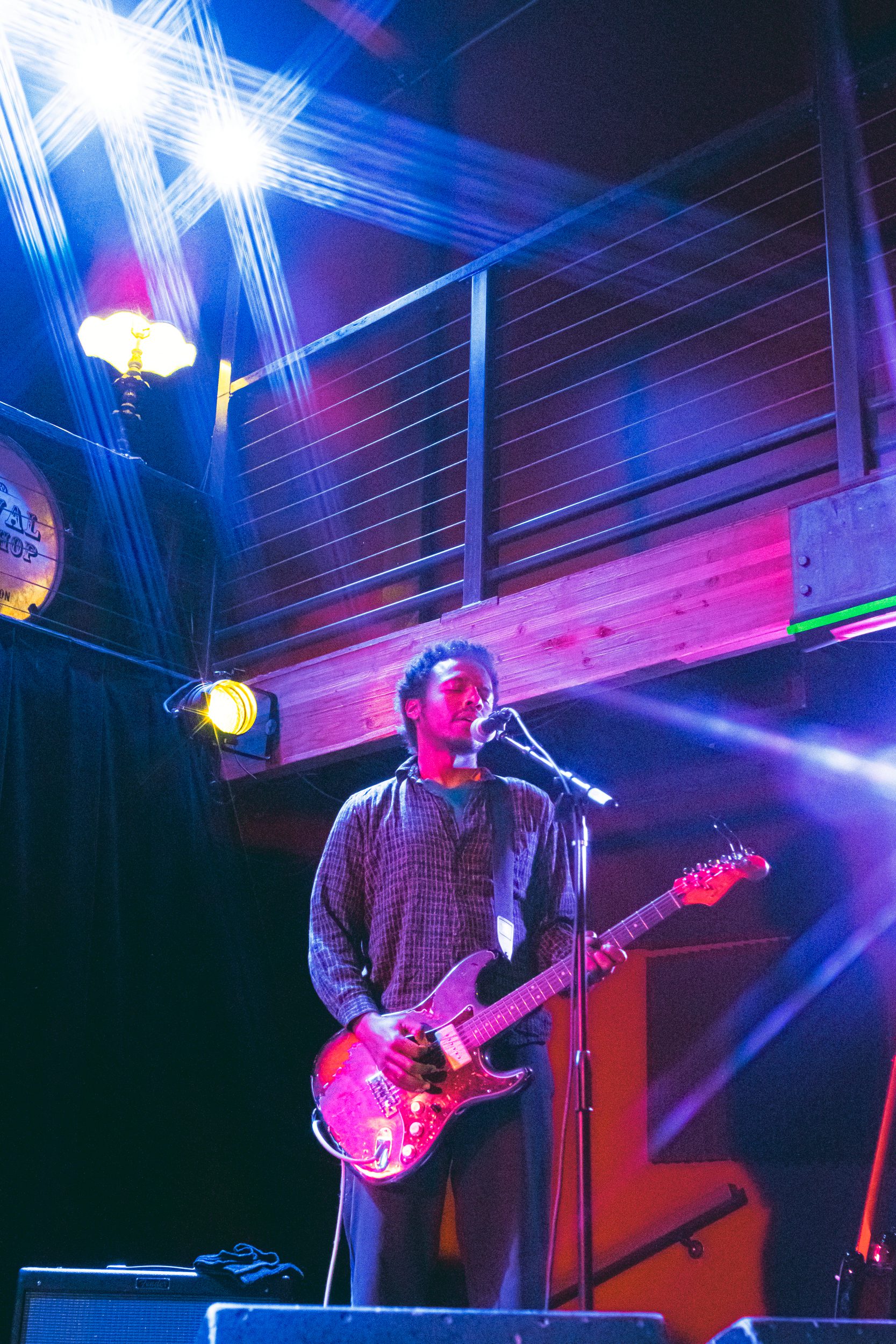 Backed by a tight trio, Booker and his band made the most of the small stage, filling the space with energy rather than feeling constrained by it. The drummer, in particular, played with infectious enthusiasm, clearly feeding off the crowd’s excitement. The setlist showcased material from LOWER, blending elements of lo-fi hip-hop, noise pop, and indie rock into something entirely his own—gritty, emotional, and urgent.