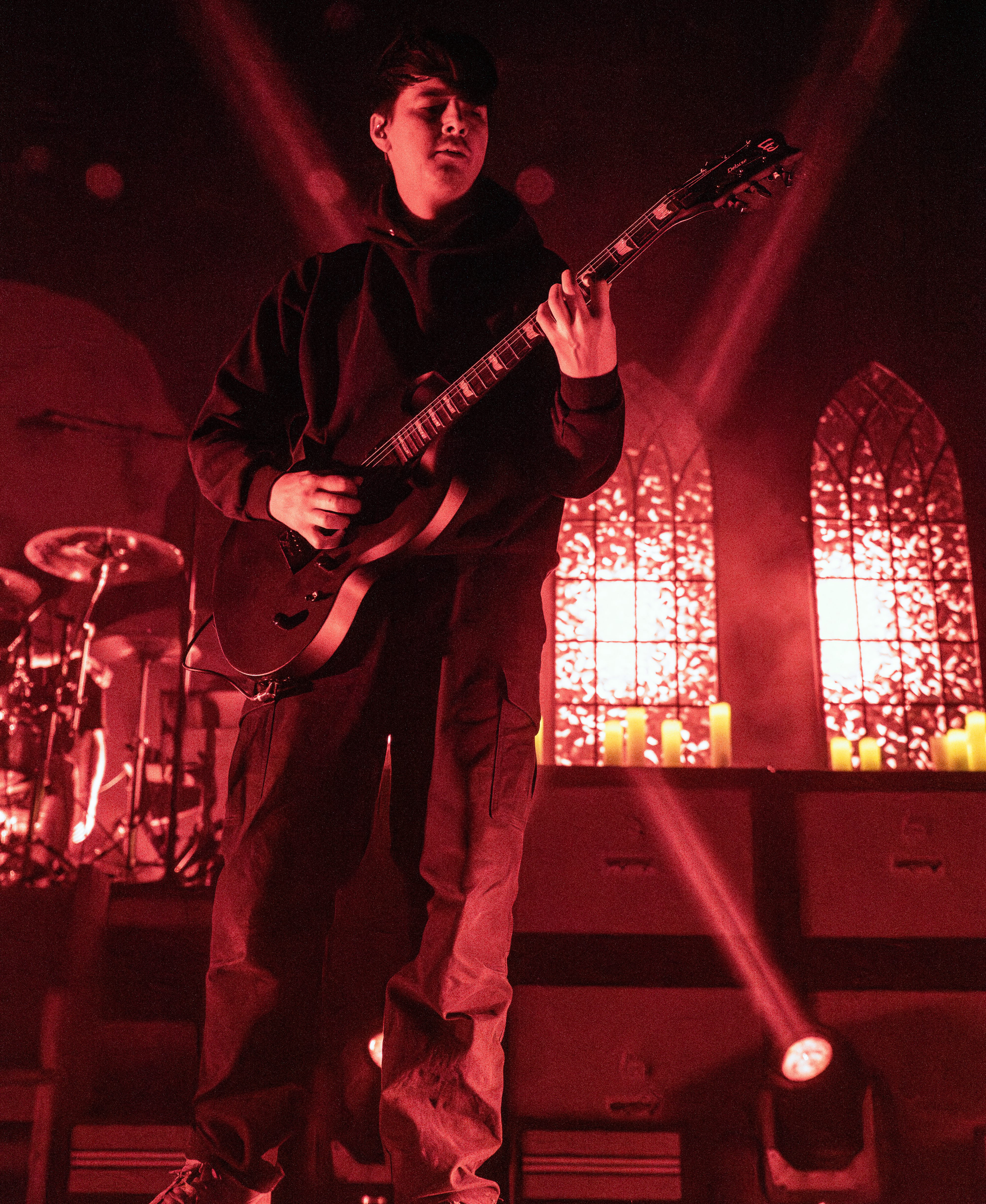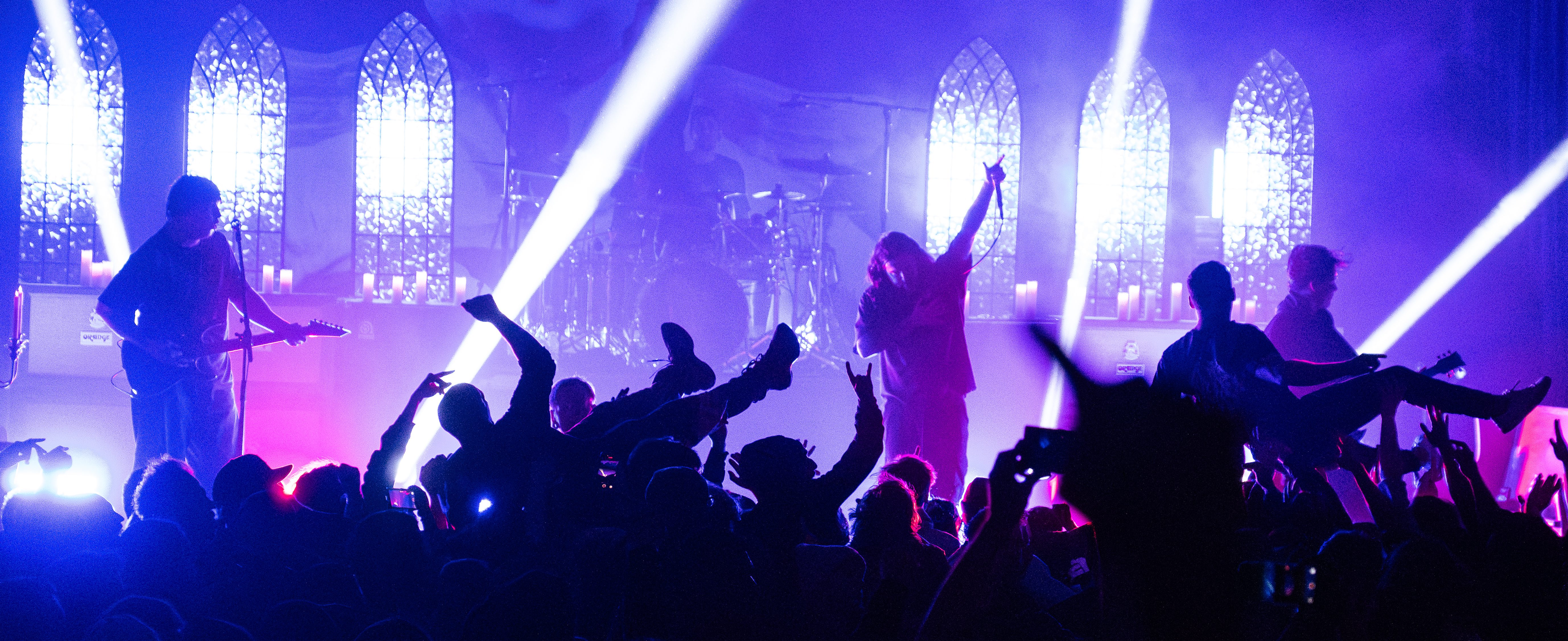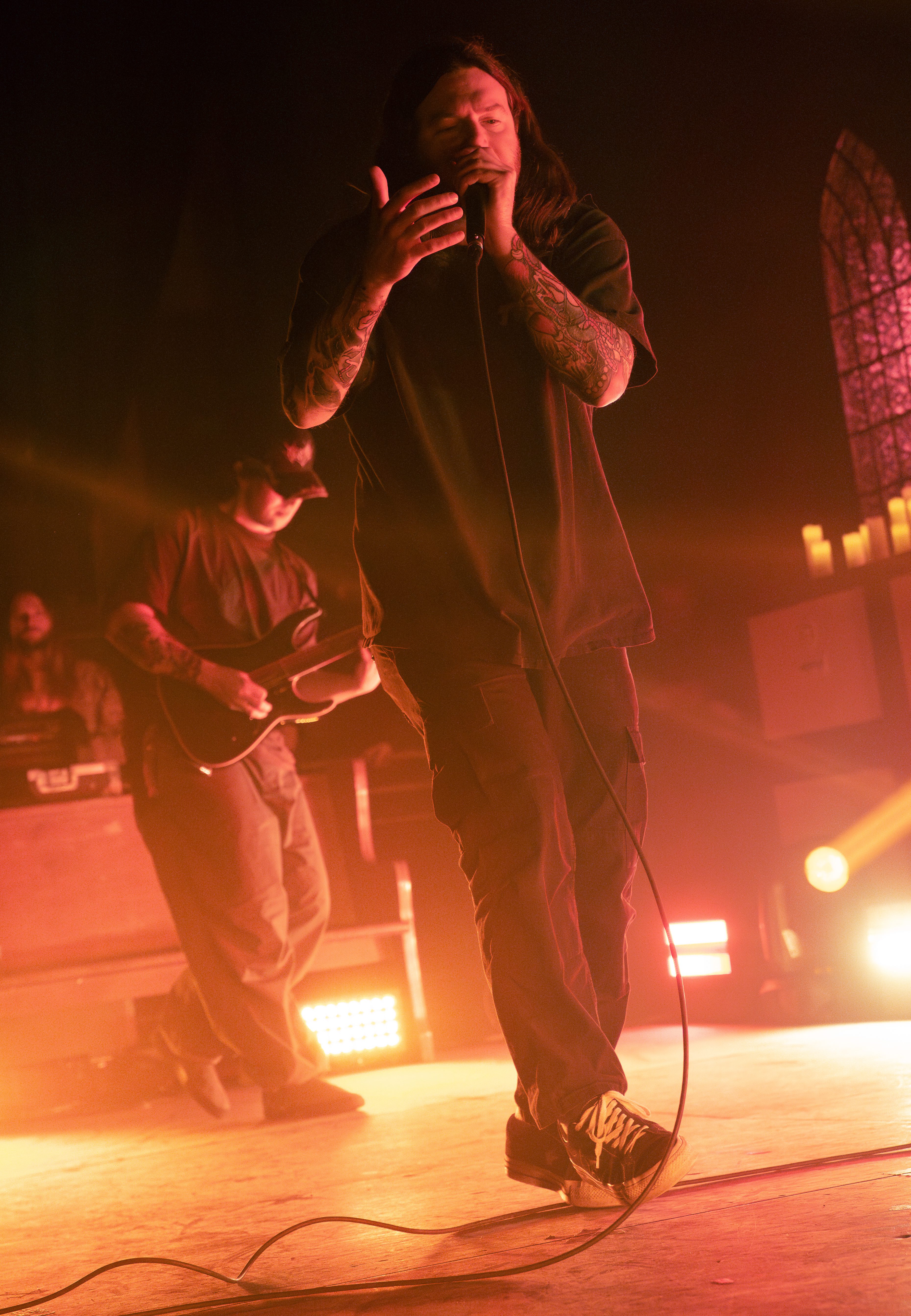 Finally, with the stage being cleared of all remaining mic stands, instruments, and anything else that could get in the way, it was time for Counterparts to take over the stage! Beginning with their song “A Martyr Left Alive,” the crowds cheers caused the room to quake. Between the angelic lighting and the stained glass windows as the background, the band ensures you’re immersed in the whole experience! Their latest EP, “Heaven Let Them Die,” made it to my playlist when it was released, but, if you liked that release, then you’ll be astonished when you get to hear the songs live. It was a personal moment when they played the song “Whispers Of Your Death,” offering a heart wrenching tribute to a best friend and pet.
