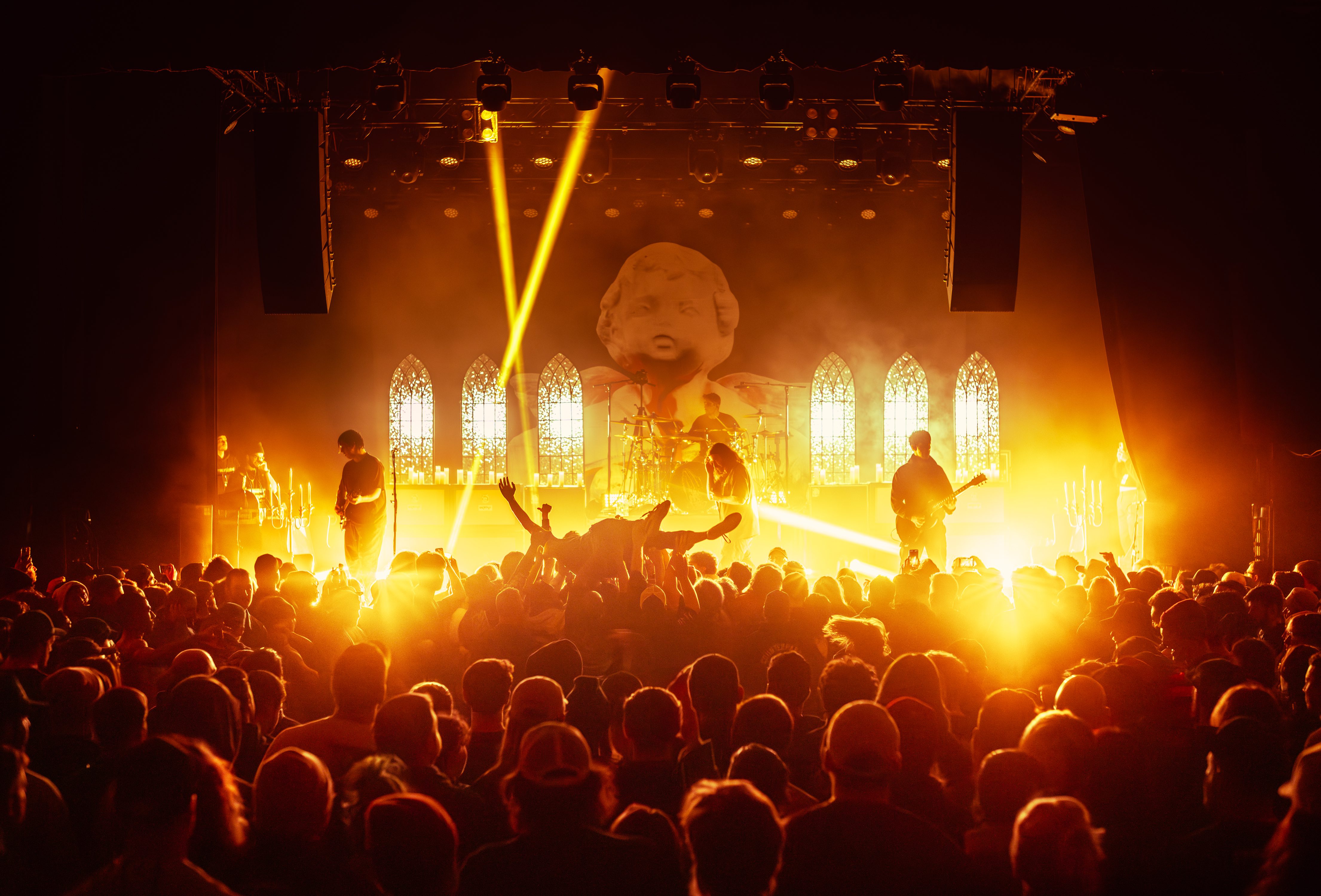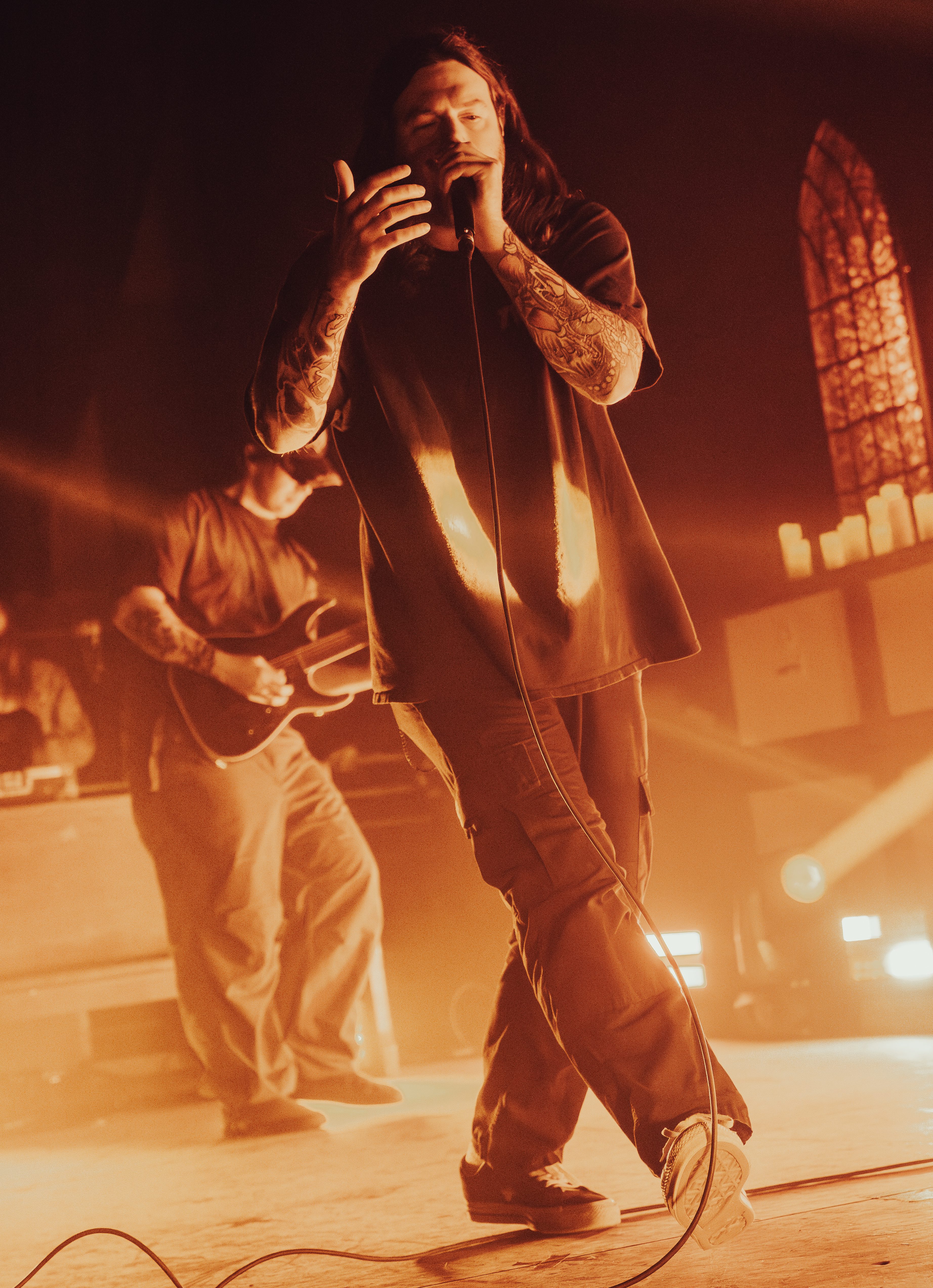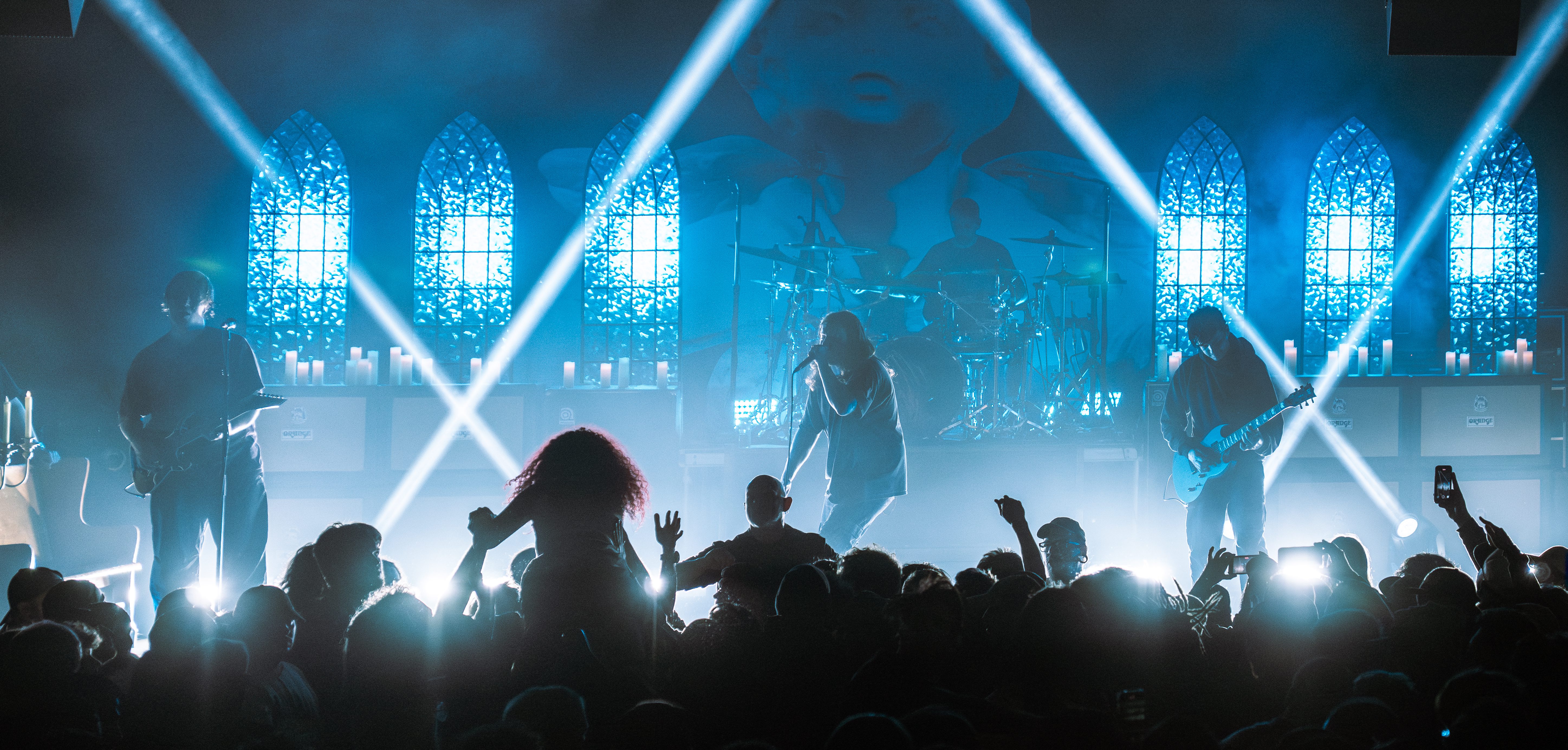 Finally, with the stage being cleared of all remaining mic stands, instruments, and anything else that could get in the way, it was time for Counterparts to take over the stage! Beginning with their song “A Martyr Left Alive,” the crowds cheers caused the room to quake. Between the angelic lighting and the stained glass windows as the background, the band ensures you’re immersed in the whole experience! Their latest EP, “Heaven Let Them Die,” made it to my playlist when it was released, but, if you liked that release, then you’ll be astonished when you get to hear the songs live. It was a personal moment when they played the song “Whispers Of Your Death,” offering a heart wrenching tribute to a best friend and pet.