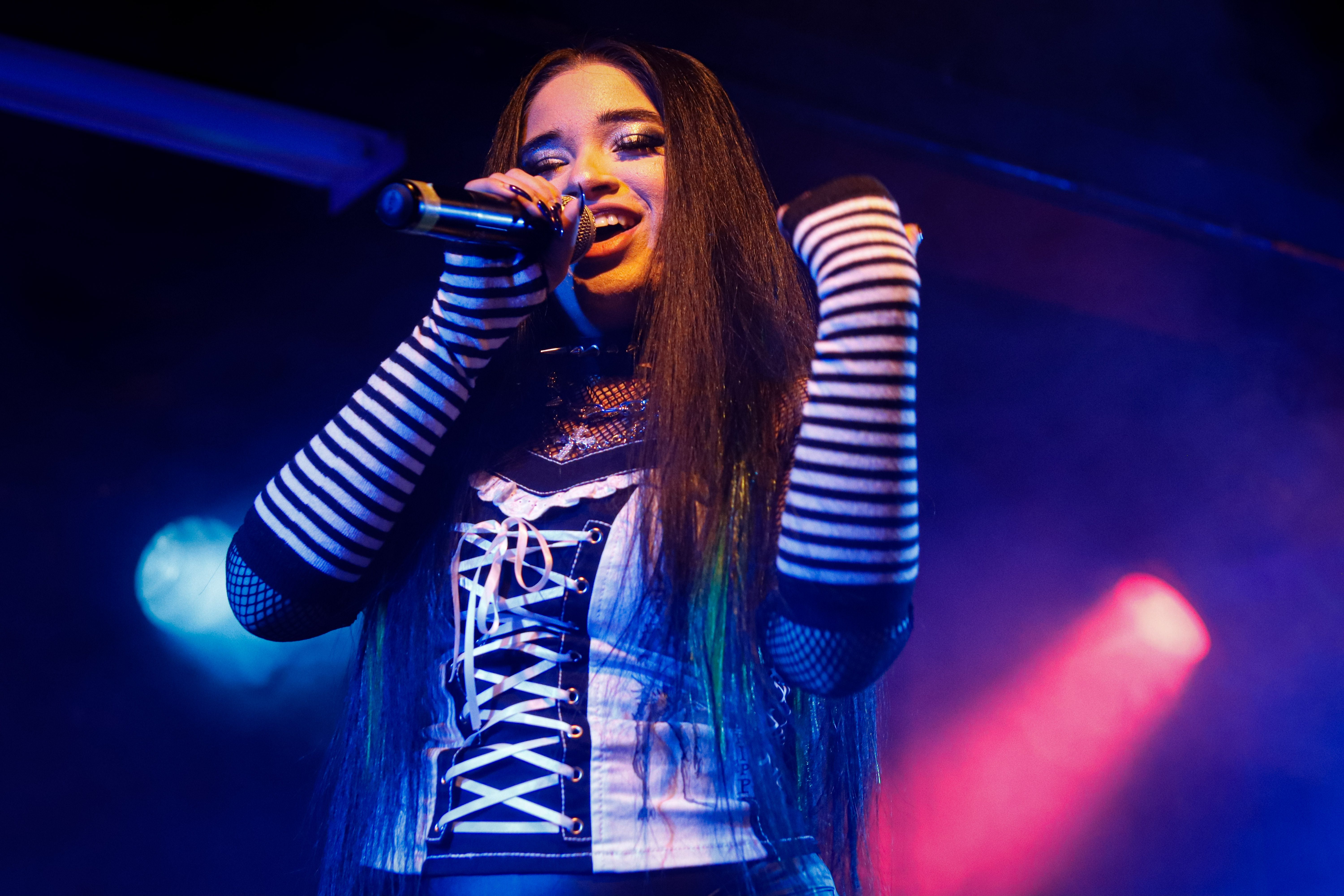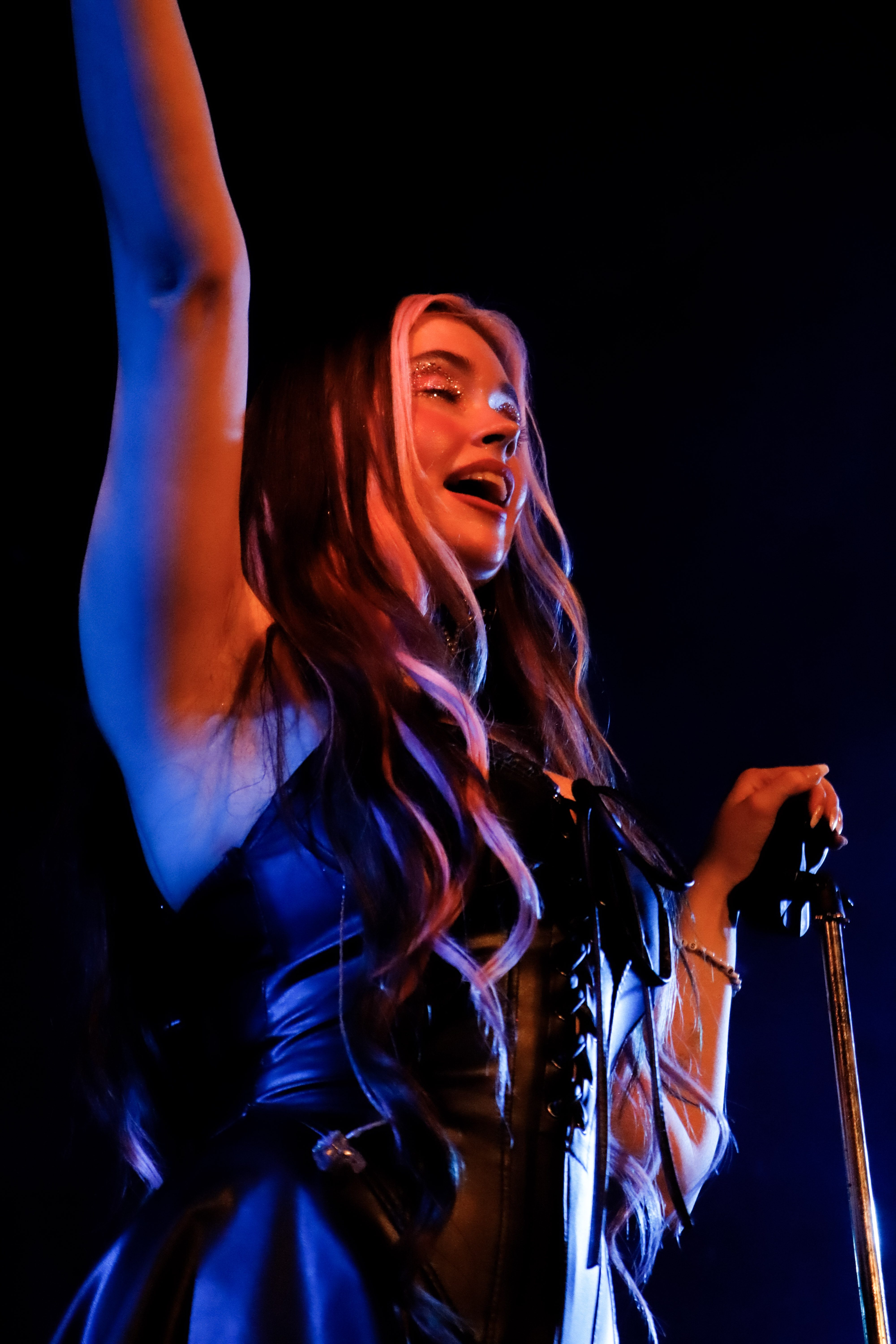 Izza, an LA-based singer-songwriter, showcased her sparkly princess look on the Rivoli stage, being the first opener for NERIAH. Kicking off her set with her song “Gentlemen,” she launched into “Run!” and “X-Ray” with passion that radiated. She was great at getting the crowd ready for the show, leaving everything out on the stage. Izza’s stage present was phenomenal, leaving fans craving more. While waiting for the next performer to come on, Izza sat on the stage and handed out signed posters to everyone.