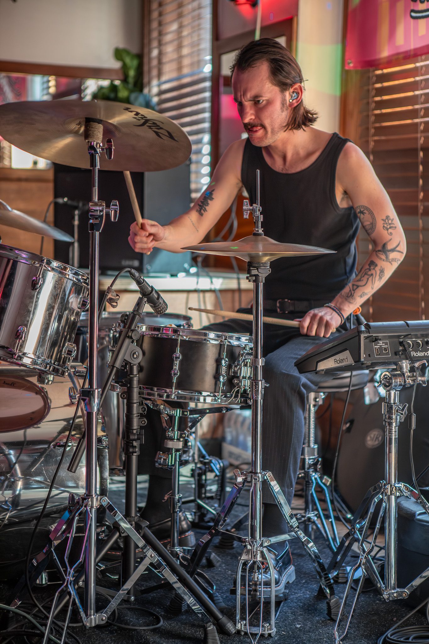 For drummer Matthieu Vaugelade, his story sounds similar but with a uniquely French twist. “My dad was a bass player. So, my dad was in a great French band,” he says. “Music was always here. He didn’t really give me the choice to be in music.” He grins. “When I realized I could have a drum for Christmas, I asked, and I started to do music.”