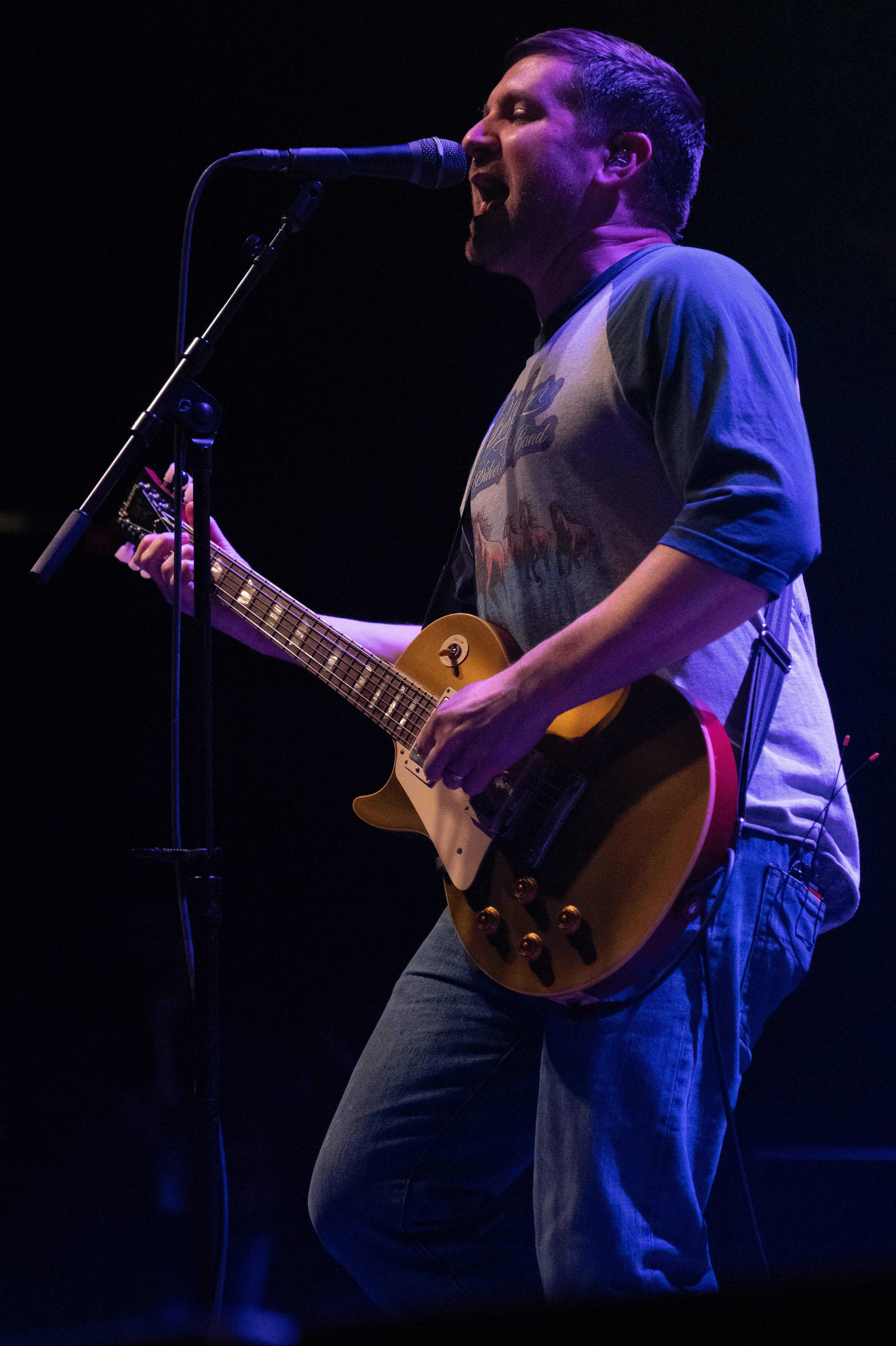 Now, although this wasn’t a hometown show for The Menzingers, it sure was close! Forming in Scranton, PA., in 2006, The Menzingers are a punk band that fit in this concert bill perfectly! Playing songs such as “‘I Don’t Wanna Be an Asshole Anymore” and “House On Fire,” the band = had the crowd moving and singing along instantaneously. Guitarist and vocalist Tom May bounced and swayed all around stage with a huge smile on his face, confessing to the band’s love for the art and the performance!