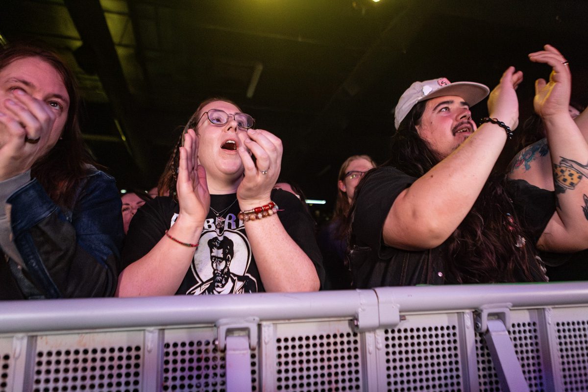 The day of the show, my anxiety was at an all-time high. I had spent so long waiting and anticipating this show that I couldn’t believe it was finally here. The Hawthorne Theatre was the most packed I’ve ever seen — and I’ve been to quite a few sold-out shows at this particular venue. For some reason, the number of attendees that night felt higher than that of other sold out shows. I spotted two distinctions that may have contributed to this feeling: the lack of the usual barricade normally dividing the venue between all ages and 21+—since this was an entirely 21-plus show—and the barricade at the front being narrower than usual.