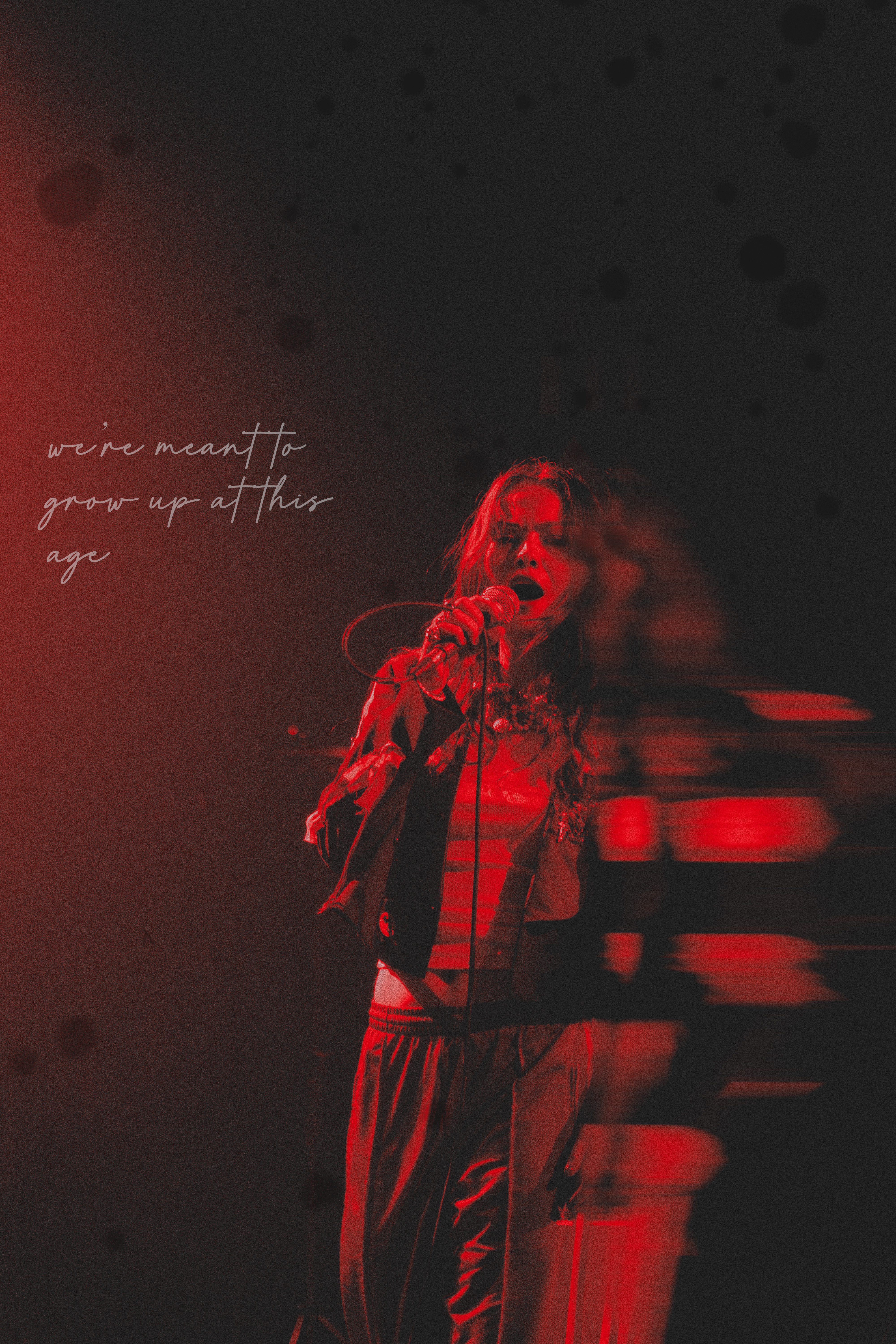 “I made it a mission that I was only going to be writing songs with women. I was 19 when I started walking into sessions with other musicians trying to write songs about my life. A 19-year-old girl working with, like, 40-year-old men. They’d ask, ‘What do you want to write about?’ and I’d say, ‘I kind of have a crush on this one person?’ and they’d go, ‘Oh, I totally get it.’ I’d be like, ‘Do you? You’re a man and you’re 40.’ I think it was really important for me to work alongside women who could understand the experiences I was writing about. elevator marked the beginning of that process. And there was one song in particular that was really special to sing on tour because I wrote it entirely for myself. It’s about family, generational trauma, and all that stuff. So this next song is really special to me. It’s called now’s not the time.”