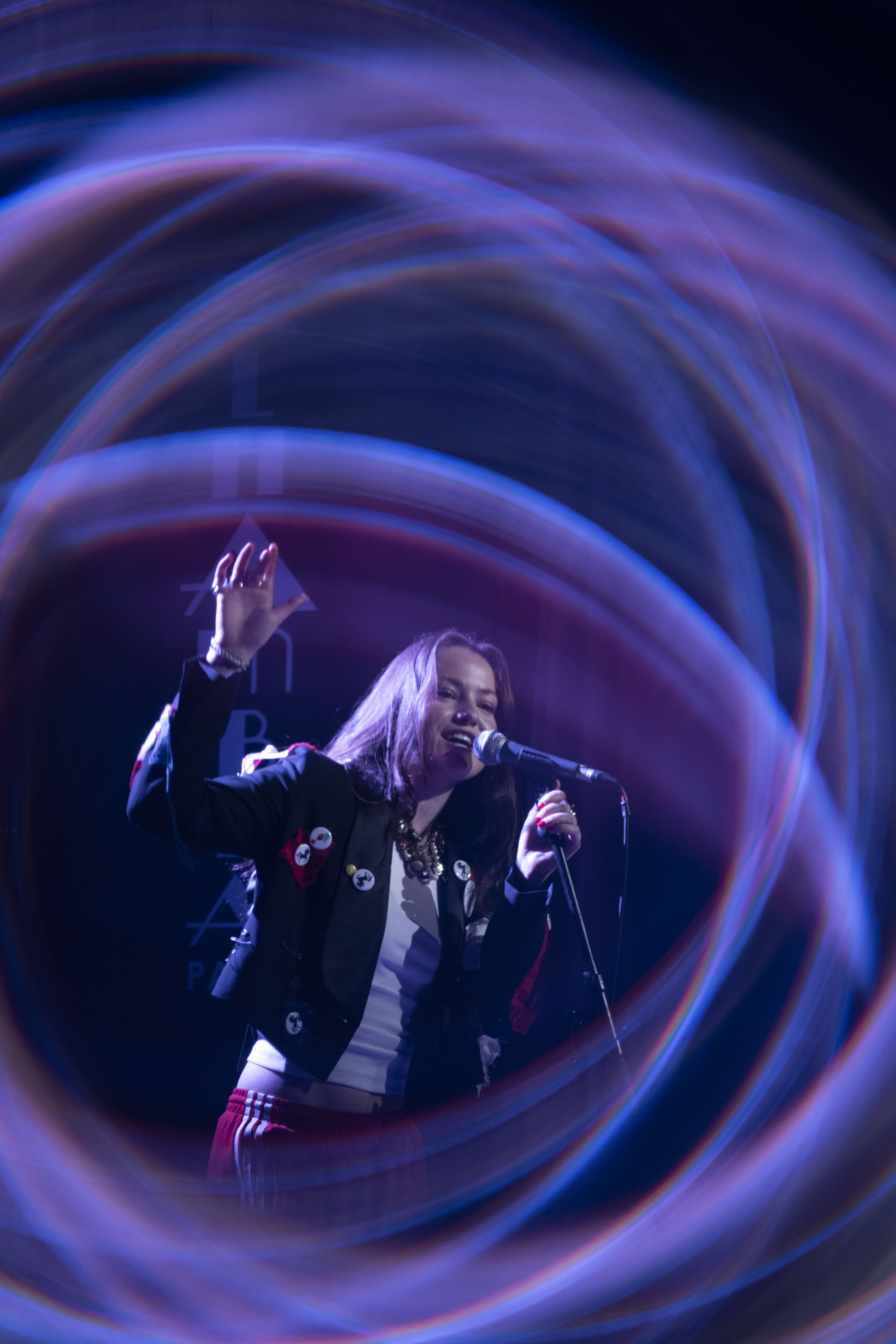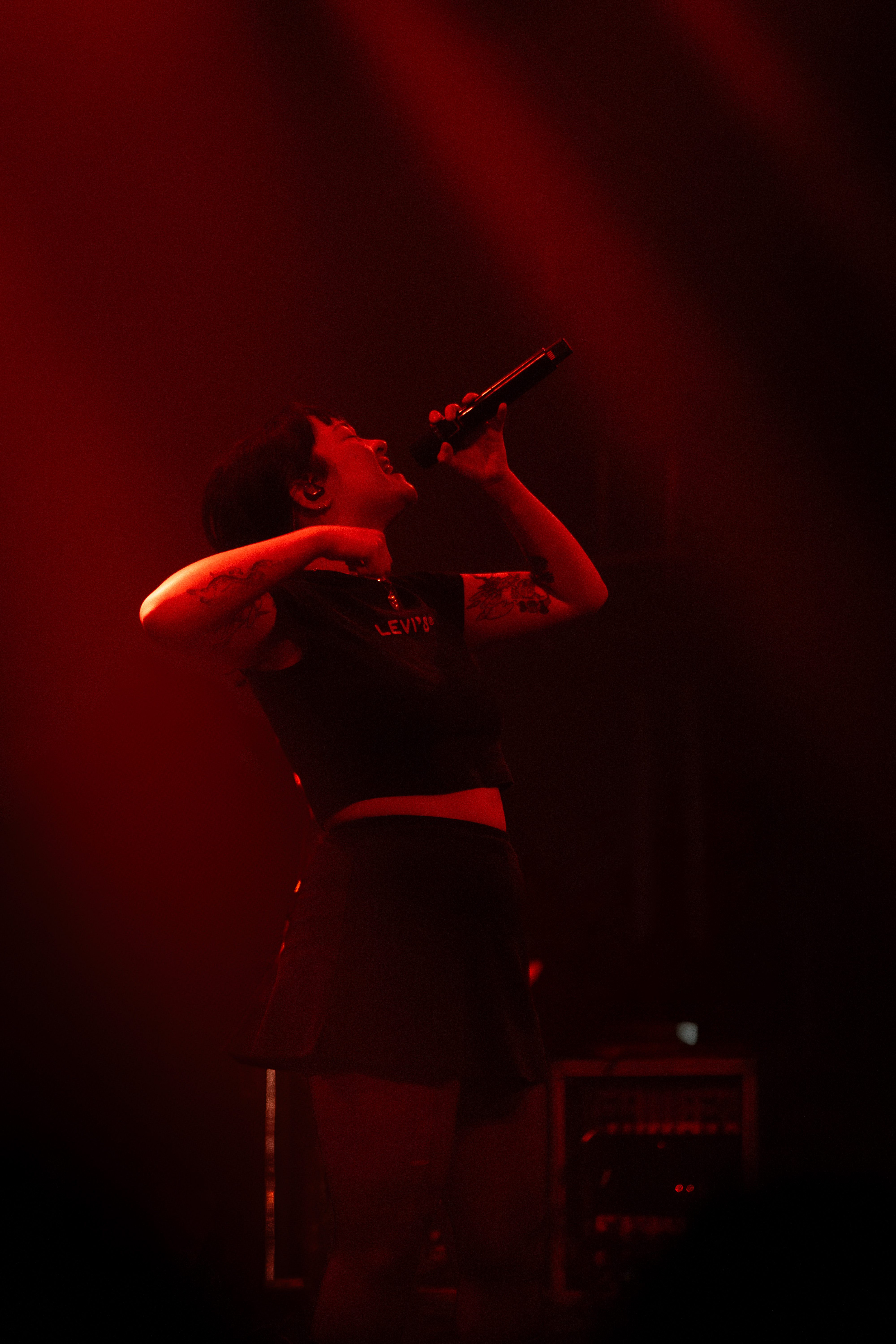 Before “white out,” she took a moment to share her story, how she started making music in her bedroom, learning production through YouTube. As a teen, she wrote songs she hoped no one would hear because they felt too personal. But music eventually taught her that telling her story was not only important for others, but also for herself. Touring in places she never dreamed of visiting, like Paris, now feels surreal. She expressed how thankful she is for everyone who listens, even if they don’t know the words.
