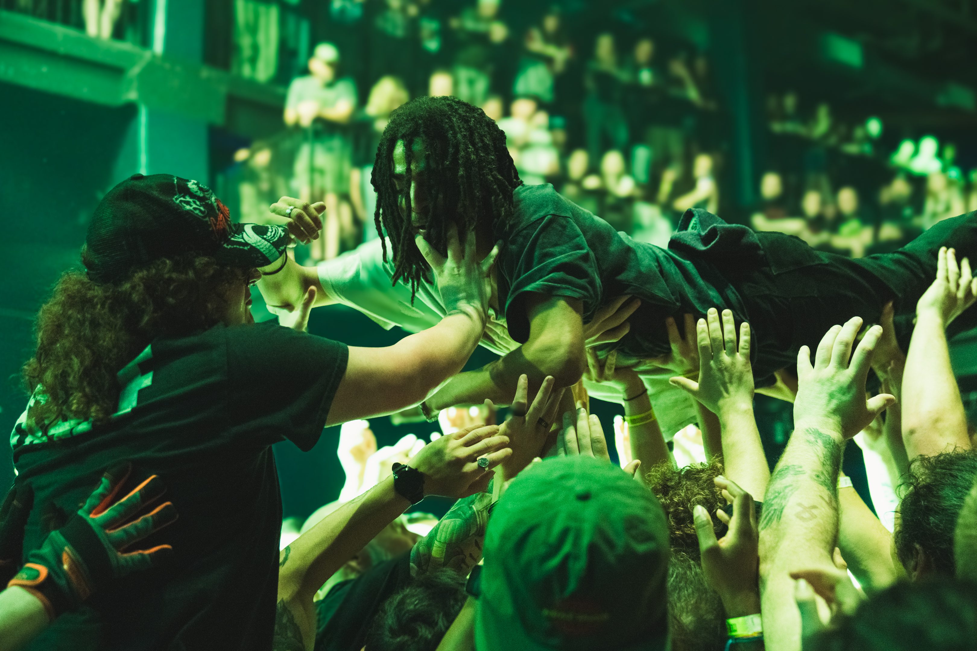 Whitechapel, bred in Knoxville, Tennessee, has been known for its deathcore mayhem since 2006. The band consists of Phil Bozeman (vocals), Ben Savage (guitar) Zack Householder (guitar) Alex Wade (guitar) Gabe Crisp (Bassists), and drummer Ben Harclerode. With nine albums, their recent release of Hymns in Dissonance brings a heavier sound than the previous releases, affirming their spot as titans in the genre. My favorite track is “The Valley,” the lyrics resonated with me on a personal level and cut deep. I was beyond excited to witness Whitechapel’s live performance and experience their audience while they are still at the top of the deathcore scene.