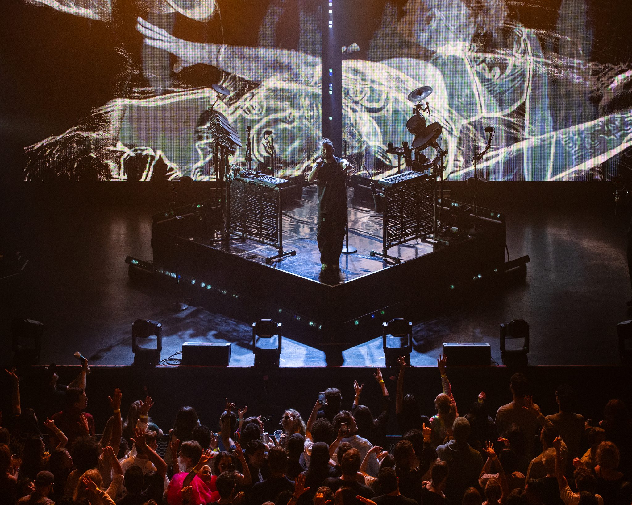 On a quiet Wednesday night, British electronic artist Elderbrook turned the House of Blues into a pulsing dance club with entrancing beats, a mesmerizing performance rig, and stunning visuals.