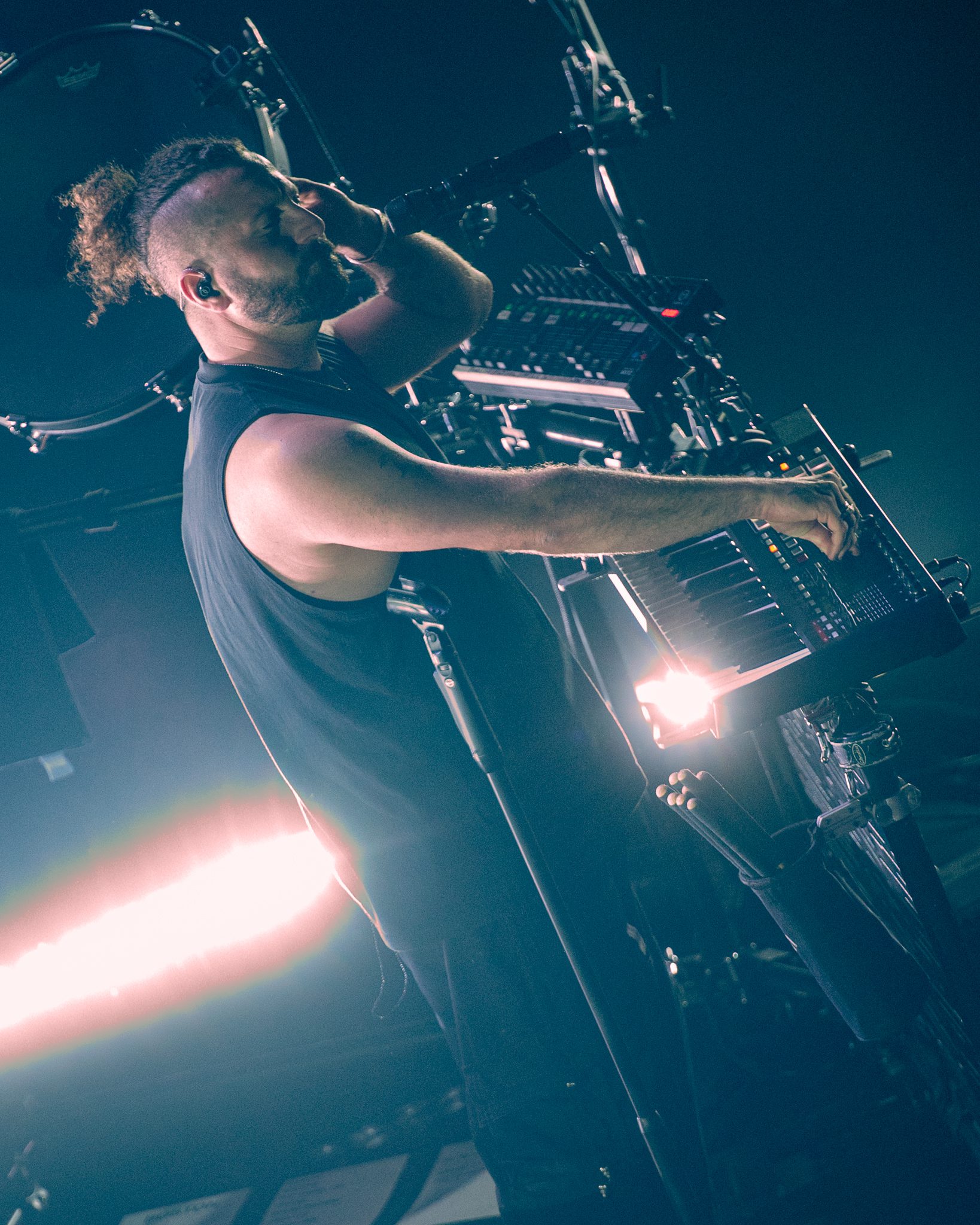 As soon as Elderbrook stepped into the spotlight, he commanded the room’s attention with an almost hypnotic presence. Flanked by a sprawling rig of synthesizers, drum pads, and other electronic instruments, he moved fluidly between each piece of equipment. One moment he was pounding out a rhythm on an electronic drum pad, the next he was at a keyboard or twisting knobs to shape the soundscapes. All the while, he stepped up to the mic to deliver his soulful vocals, making it clear this was more than a typical DJ set. It was like watching a one-man band for the electronic age – a visually and technically impressive feat that had the crowd cheering for both the music and the showmanship.