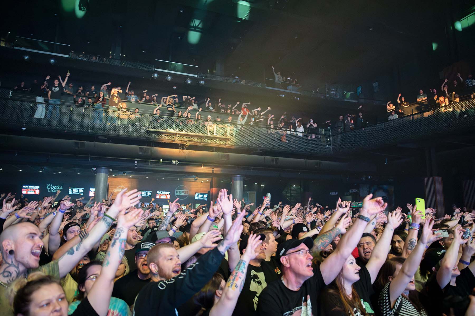 Just this past weekend, my husband and I trekked up to Madison from Milwaukee to catch Silverstein. I was super excited for this one; the lineup was perfect. Aside from that, the weather was beautiful. The show was going to be at The Sylvee, which is one of my favorite venues to visit—even if this was only my second time. It’s got a nice big area for the pit and moshers, plus a section that surrounds that area in a U-shape around soundboard for those who wanted a good view without the pushing. Then, there’s the balconies—two different levels. Apparently, the VIP spots also come with pizza? I found this out since I ran into a few unexpected friends at the show, and one of them happened to be sitting in the balcony section. Honestly, a slice of pizza at the show? I dig it. More venues need to provide food or snacks if you ask me—I get hungry.