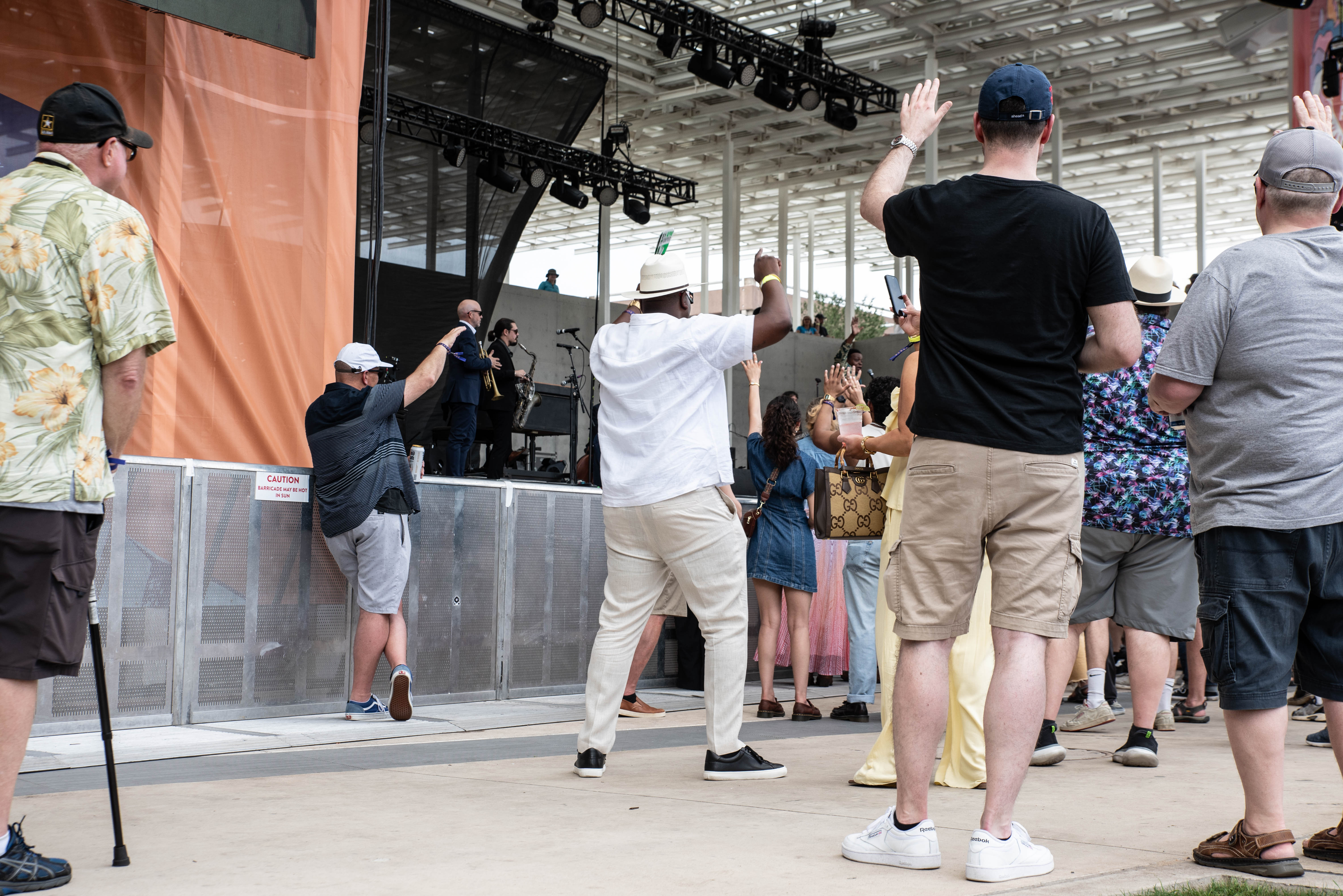I was sitting there in the middle of the festival when I started hearing some music coming my way. I stood up to check it out, and there they were—the Cha Wa Band from New Orleans, making their way through the crowd. The energy was contagious, and the whole place started buzzing.