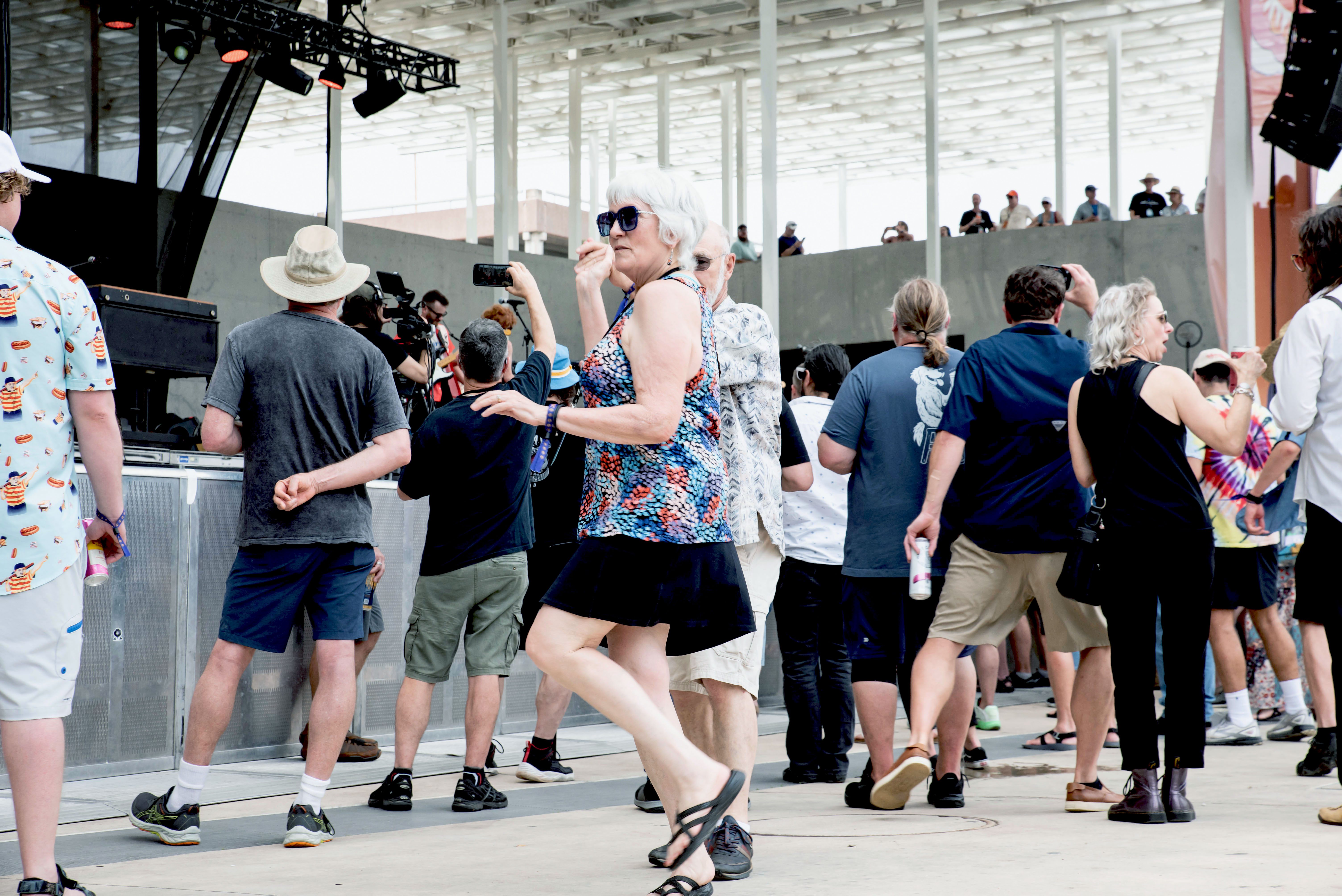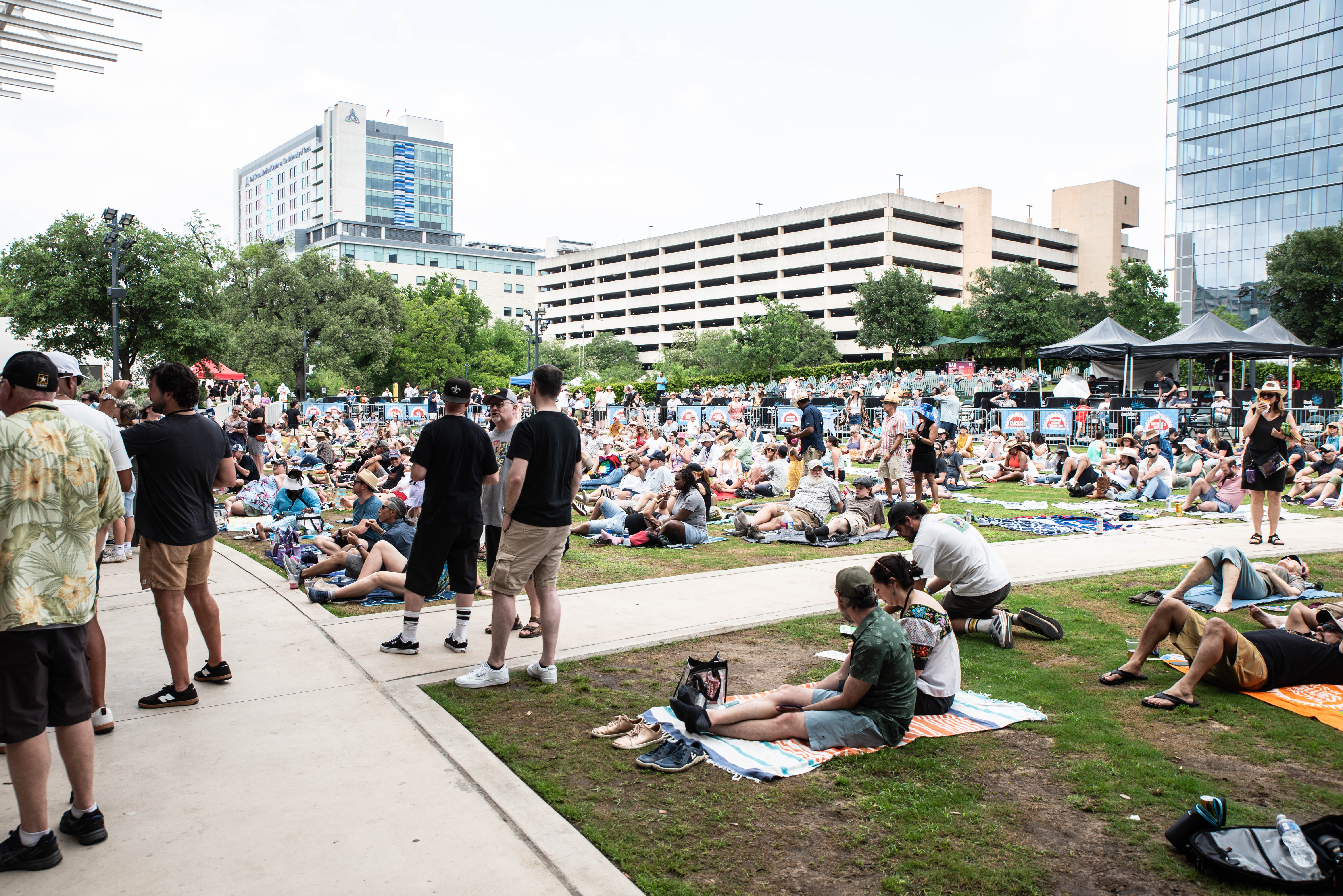 After a bit of walking, I finally reached the entrance and made my way through to the media booth for my badge and wristbands. The vibe was already picking up, with people streaming in, excited for the day ahead. I passed by a few vendors—food trucks, merch stands, and a couple of people setting up their booths. Then, I turned the corner, and there it was. The Moody Amphitheater. I’d seen photos ahead of time, just to get a feel for the space, but none of them did it justice. Standing there, seeing it in person for the first time, it was pretty impressive. The venue stretched out in front of me, the stage with lights and speakers already set up, while the lawn below was dotted with people sprawled out on blankets, enjoying the warm weather and soaking up the good vibes. The whole place had this laid-back yet electric energy, like everyone knew something amazing was about to happen.