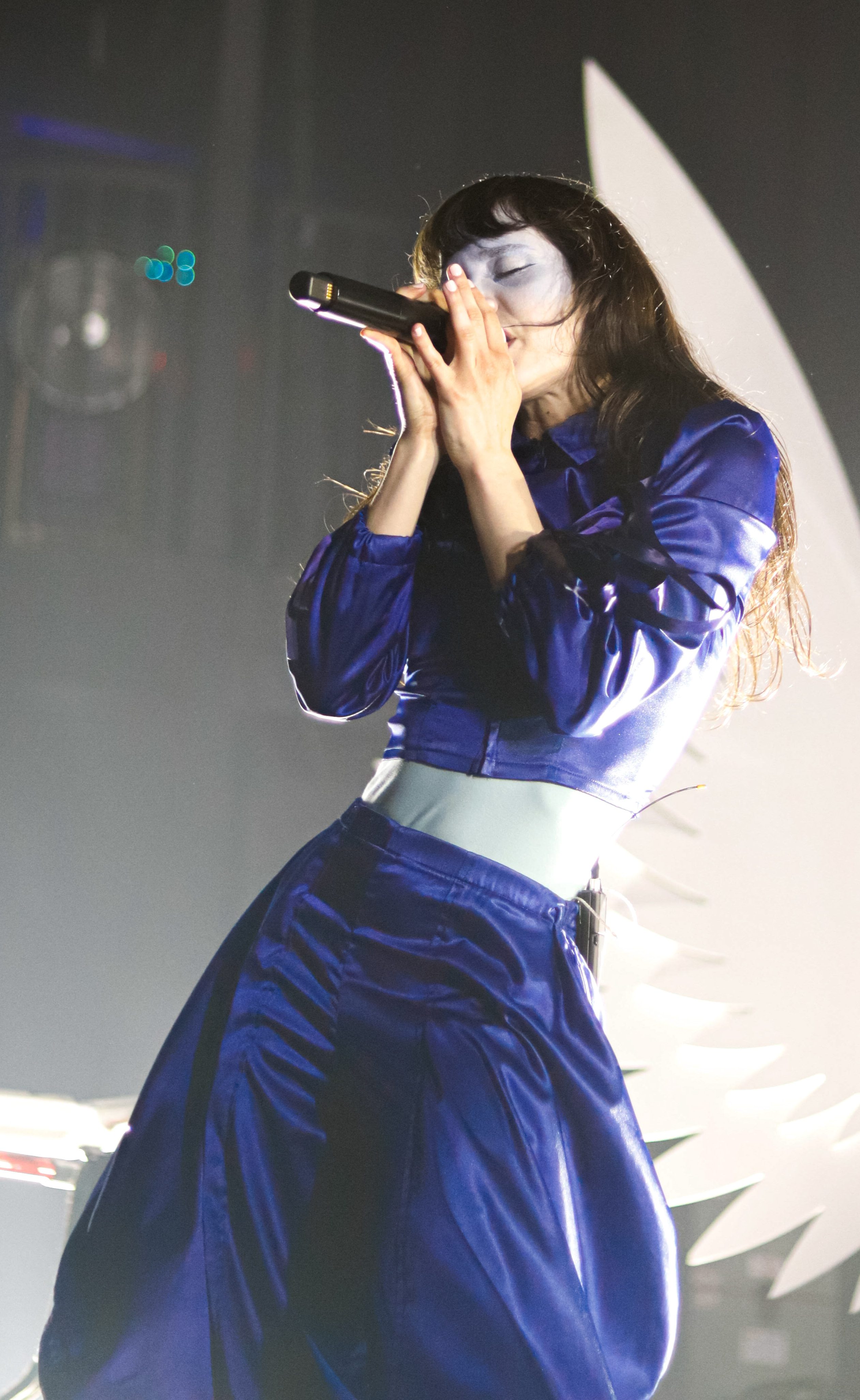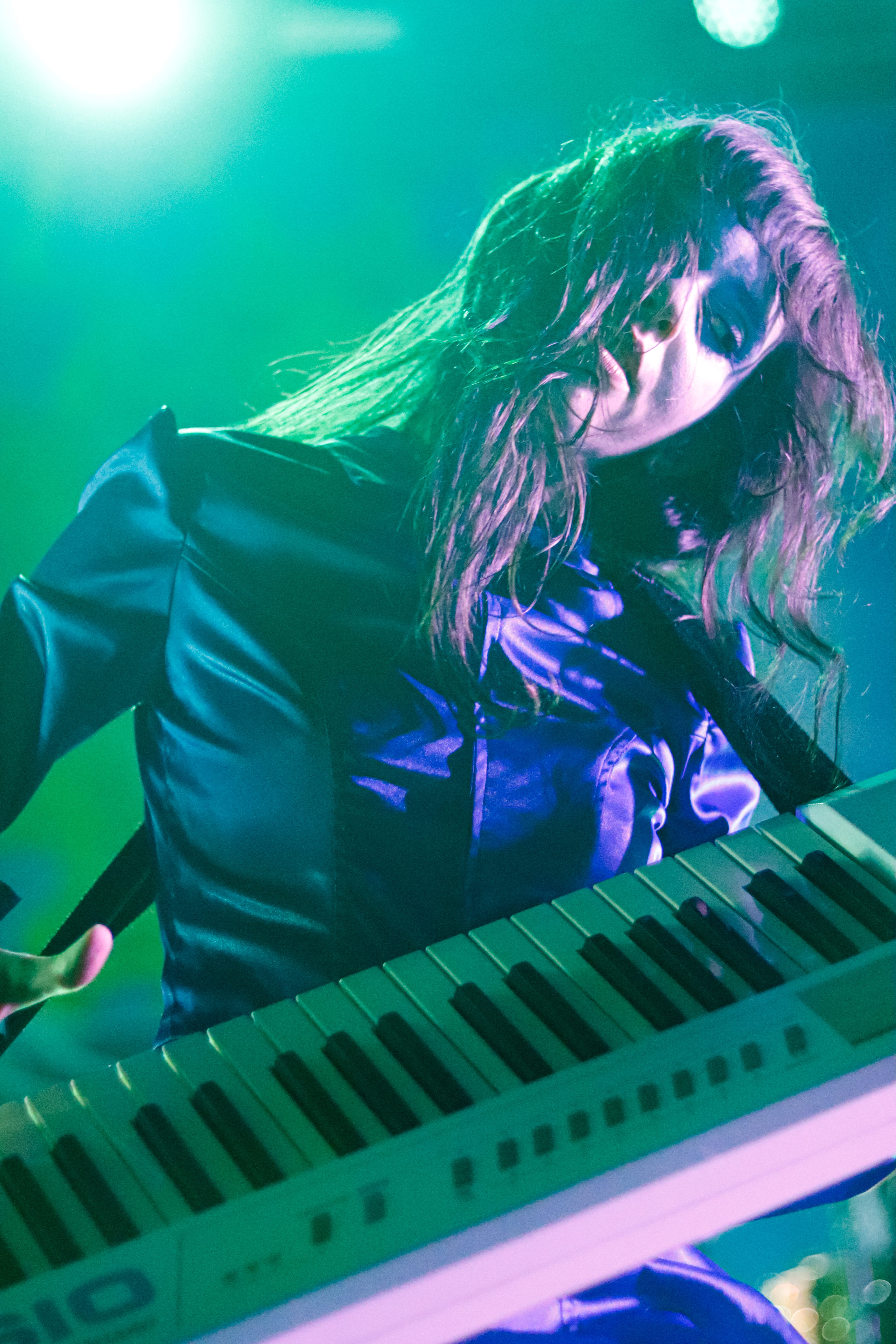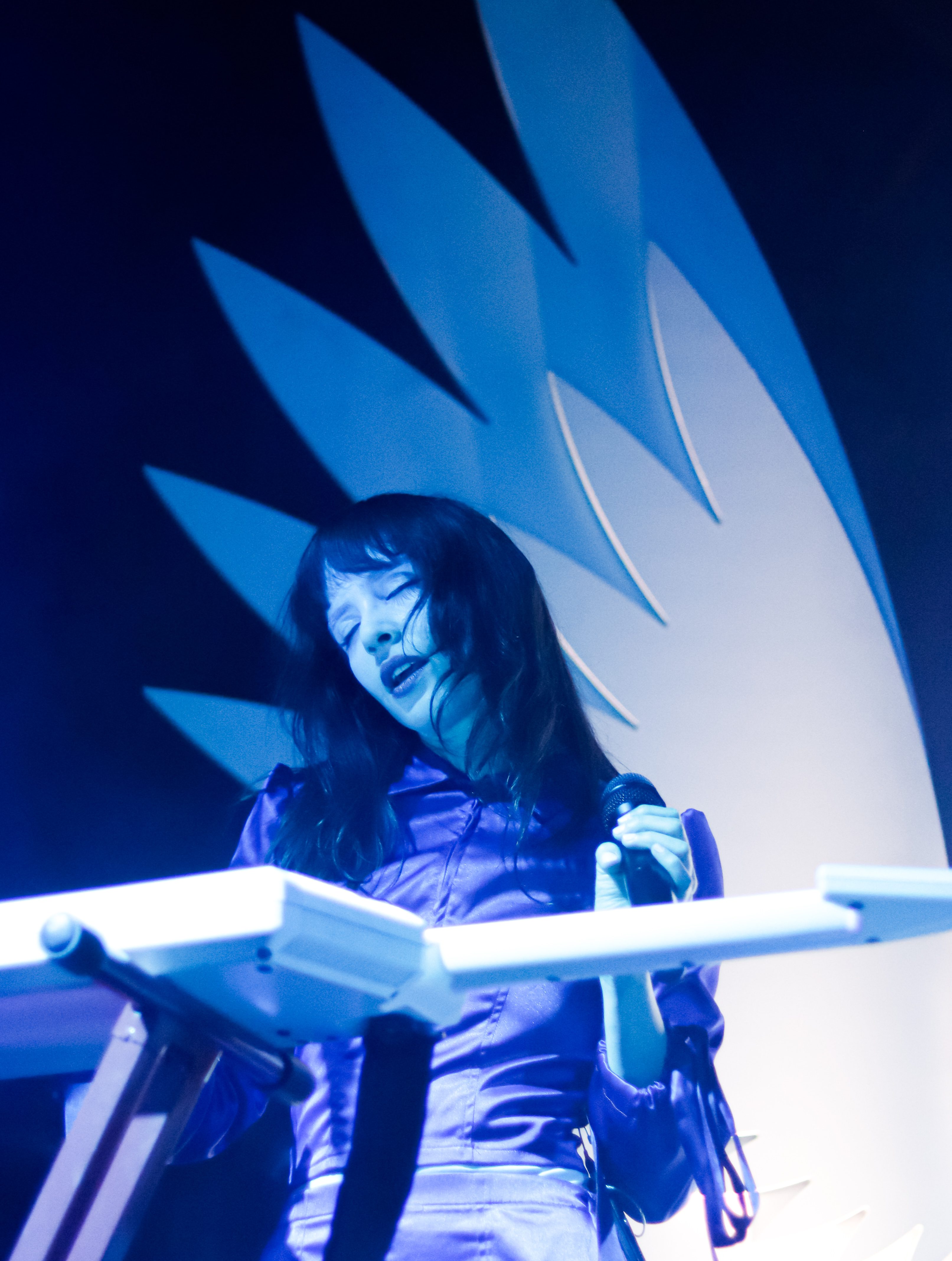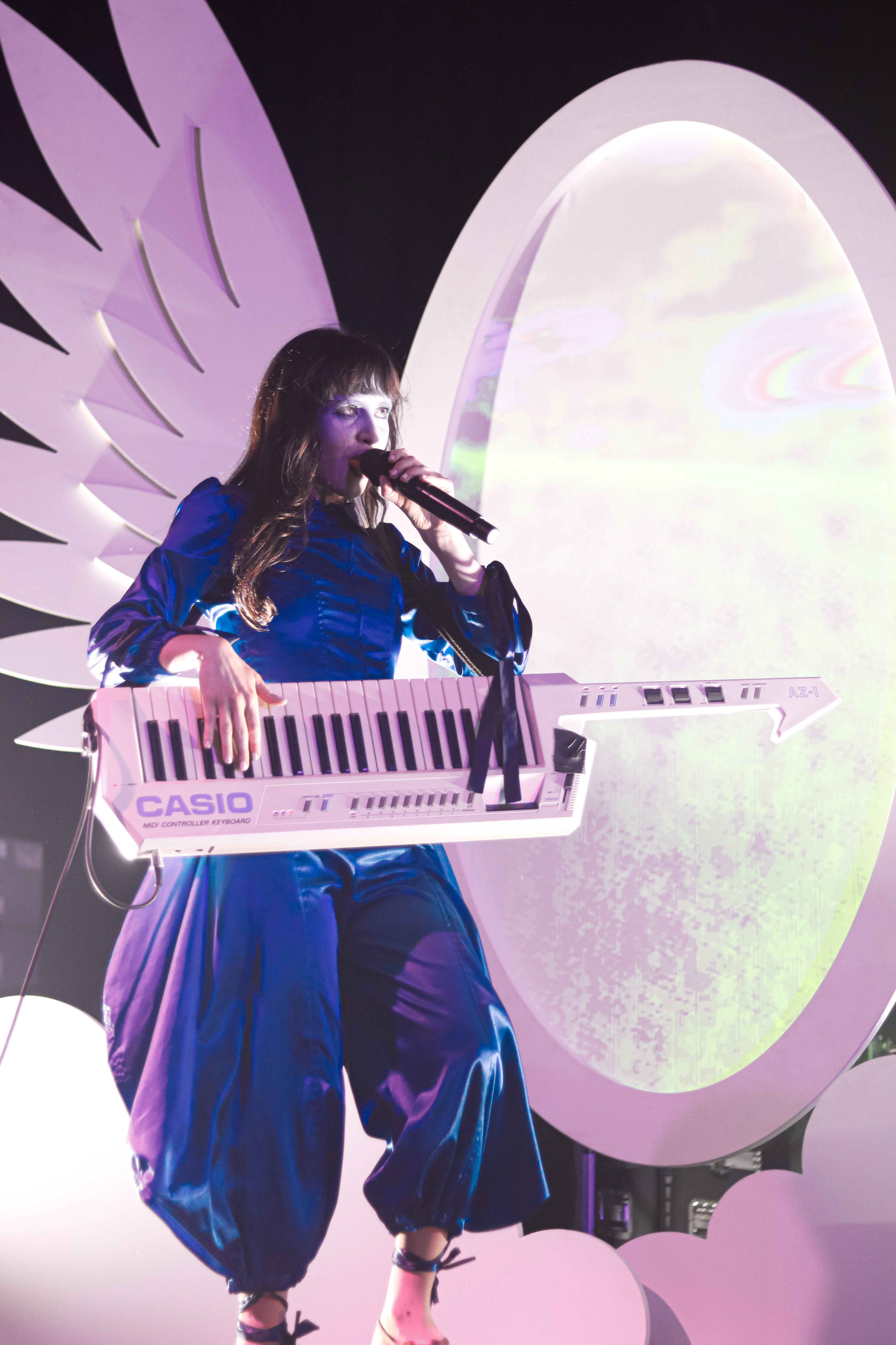 They had an amazing stage set, which featured an oval mirror with wings on either side, and a window with a curtain that lit up with visual images and videos, including a biblically accurate angel. They also had a three-step platform she’d stand and sit on, for some songs, along with a keytar station. For their last set, she picked up the keytar and played it amazingly to the song “Image.”