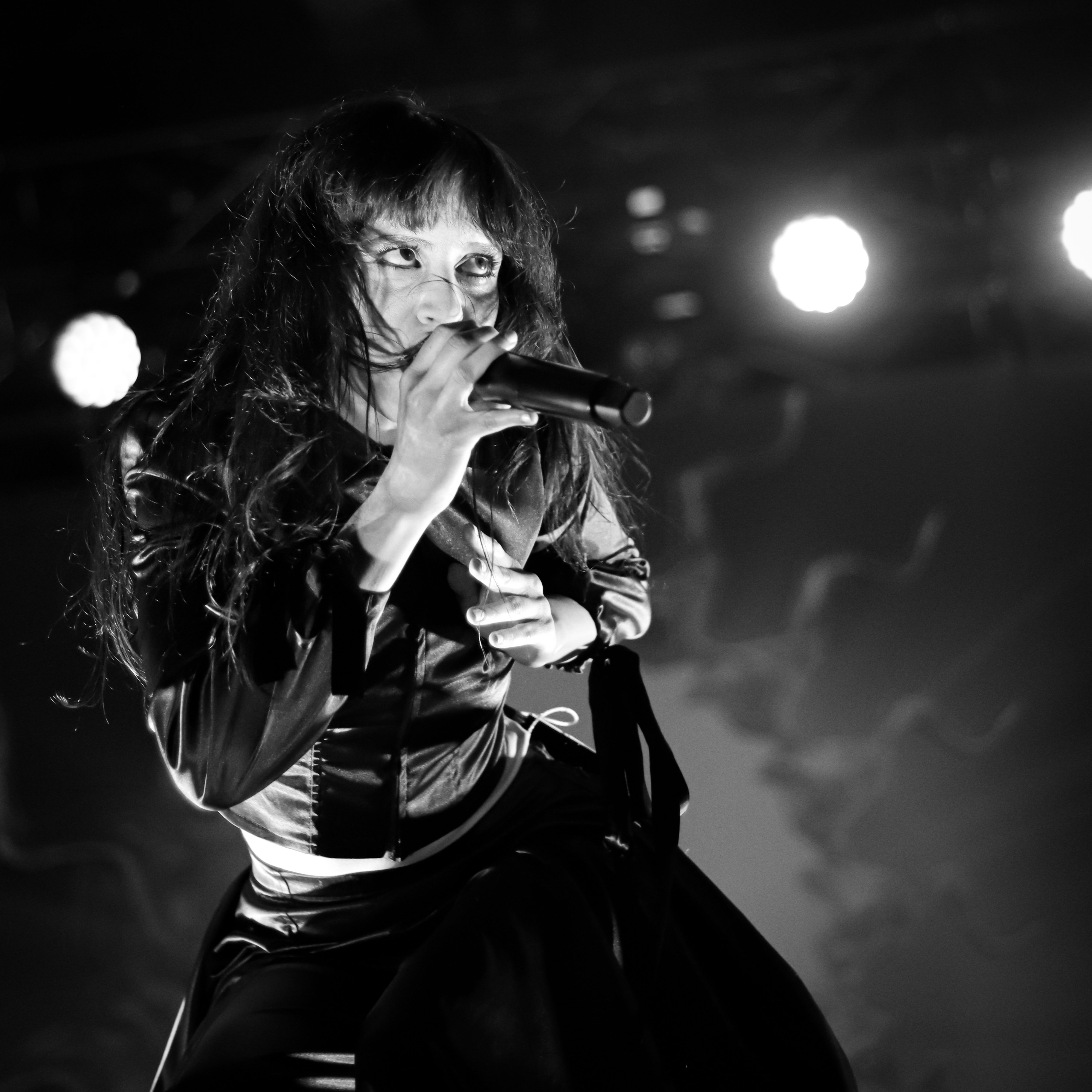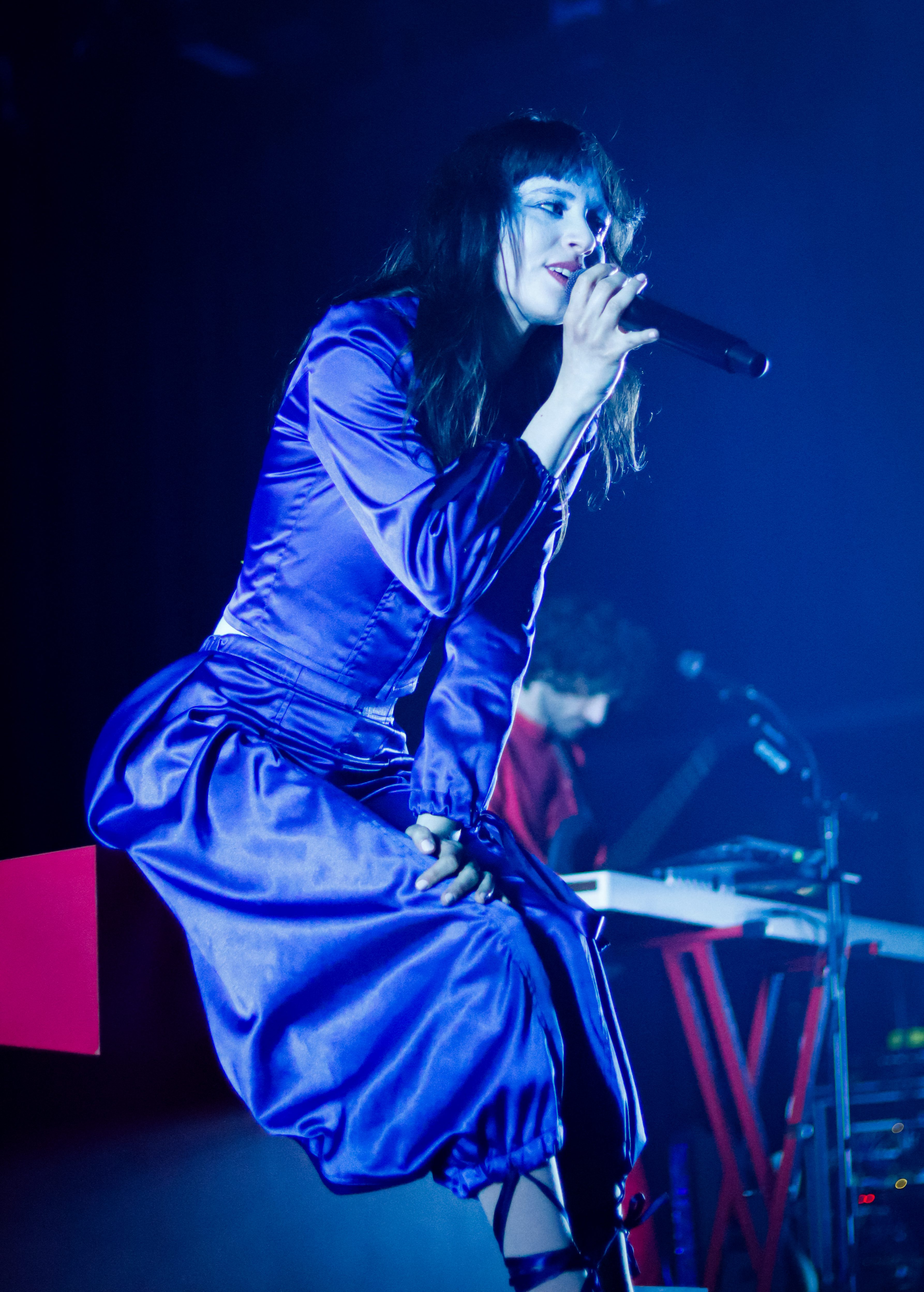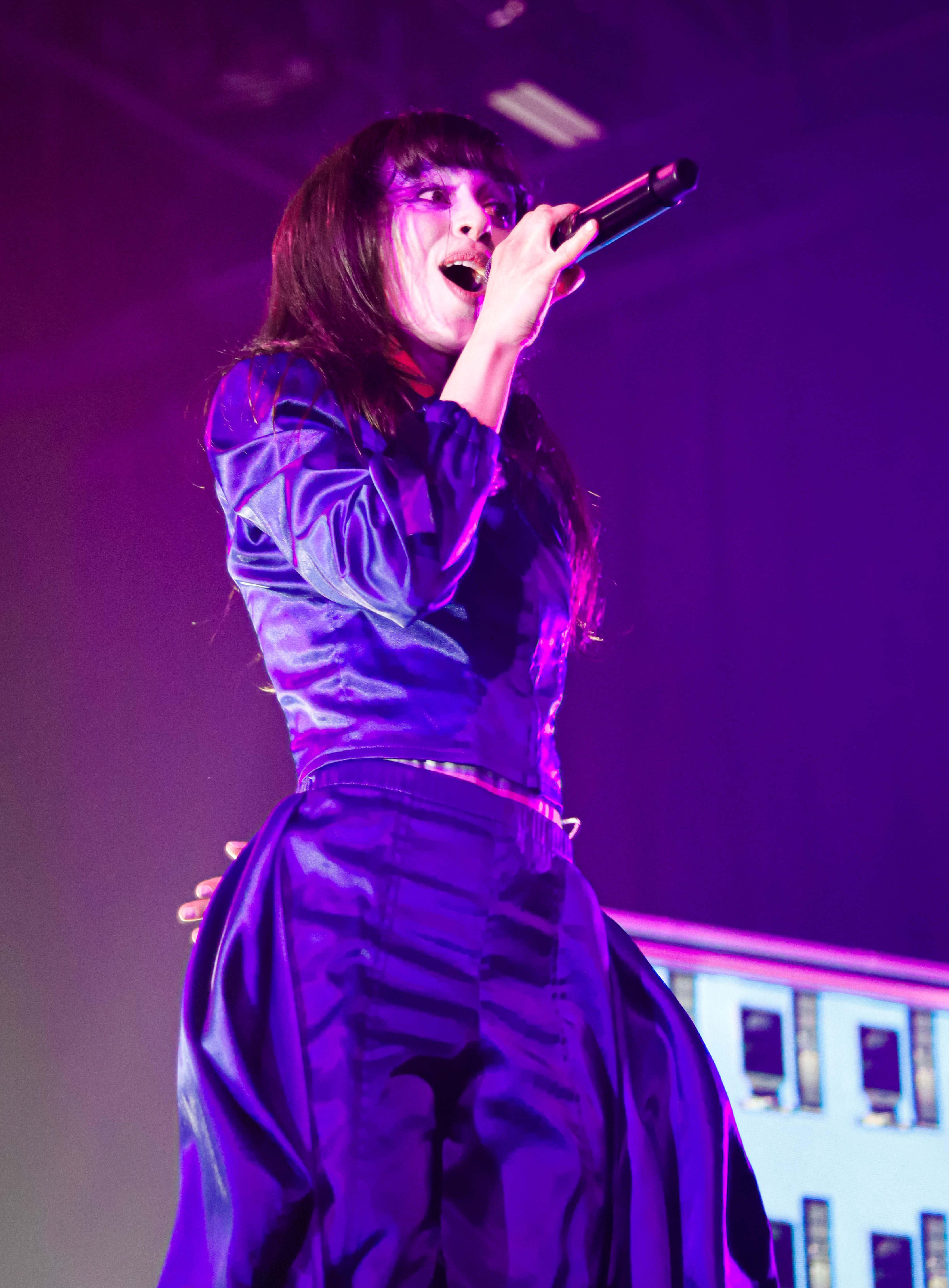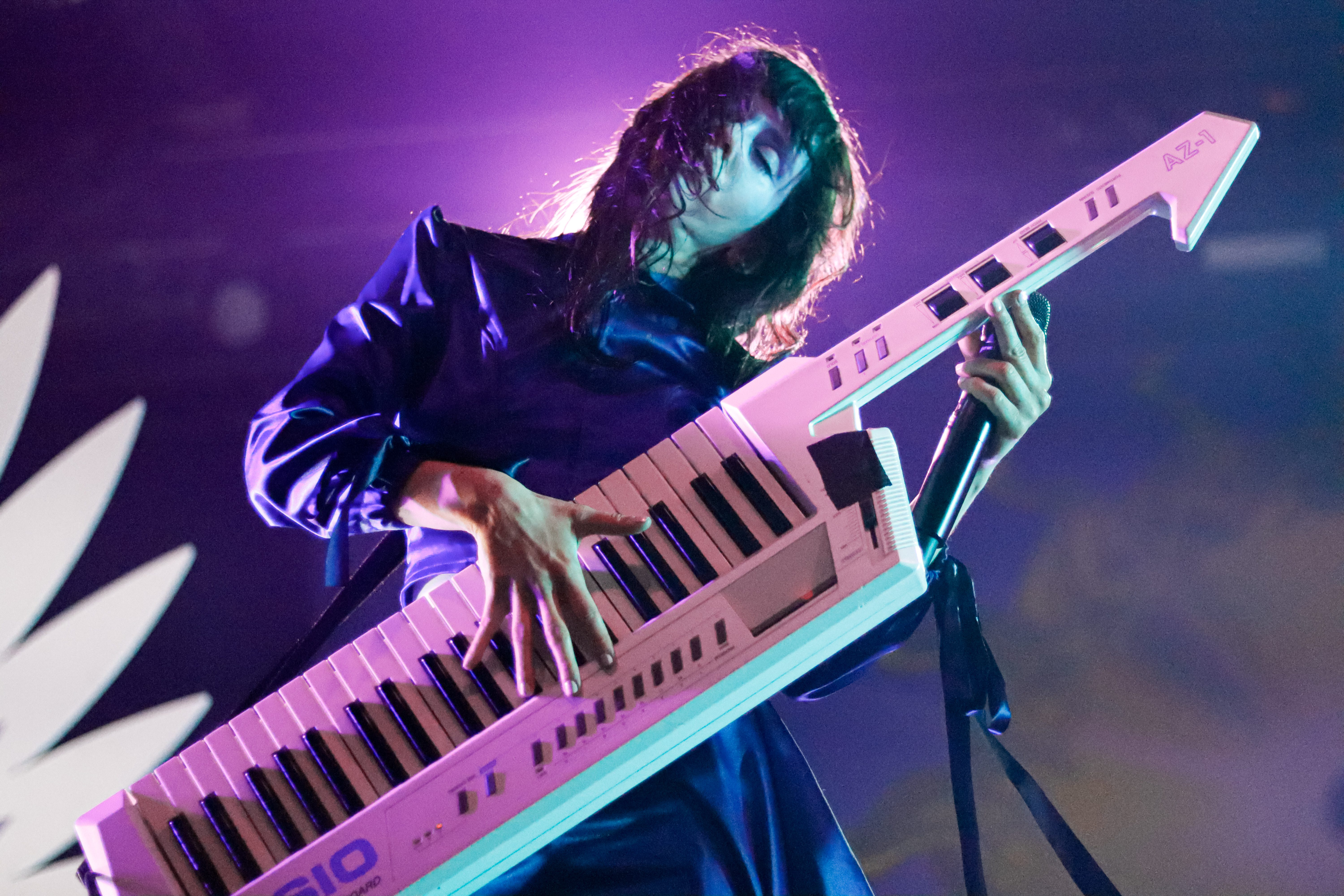 They had an amazing stage set, which featured an oval mirror with wings on either side, and a window with a curtain that lit up with visual images and videos, including a biblically accurate angel. They also had a three-step platform she’d stand and sit on, for some songs, along with a keytar station. For their last set, she picked up the keytar and played it amazingly to the song “Image.”