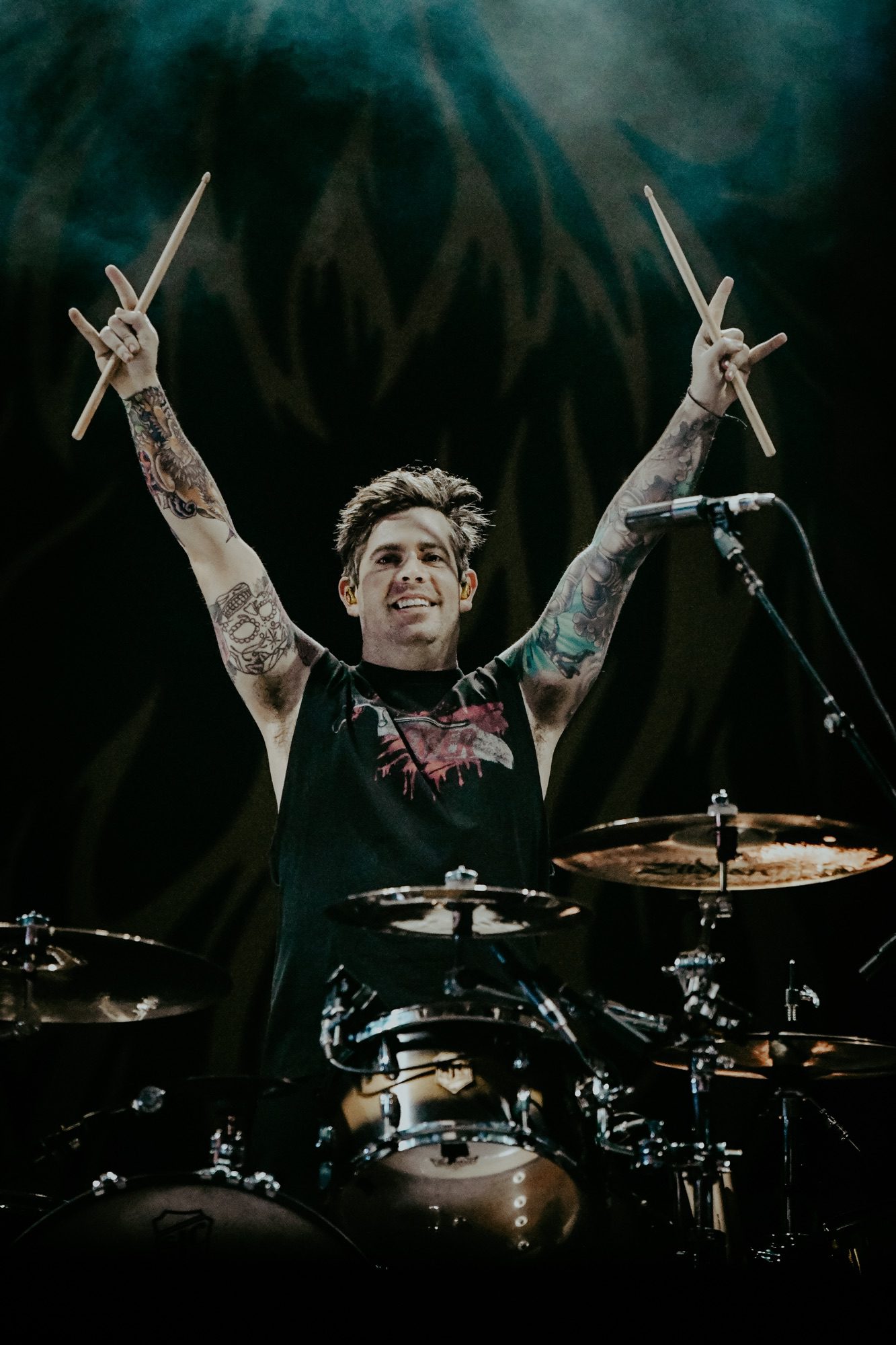 The amphitheater was packed and the excitement from the crowd was absolutely palpable as everyone geared up for the evening’s main event- A Day To Remember. Their newest album, Big Ole Album, Vol. 1, hit streaming platforms on March 21, a month after it was exclusively released on CD and Vinyl. Their performance at UFEST would mark their first US performance since the release of their new album, meaning the audience was the first to experience many of the new tracks live. A Day To Remember gives their all in every performance and this night was no different. “Also sprach Zarathustra, Op. 30: Prelude” played as the pop-punk/metalcore Florida natives came out swinging, immediately launching into “The Downfall Of Us All”- a track that is typically saved for the encore- kicking off the set on a high note. It was only up from there, as the band continued with favorites like “I’m Made of Wax Larry, What Are You Made of?,” “Miracle,” and “Resentment.” The setlist also featured 7 of the 12 tracks from the band’s new album. The crowd joined in as vocalist Jeremy McKinnon serenaded the ladies of the crowd with “Have Faith In Me” as they were hoisted on to the shoulders of others. McKinnon made an agreement with the crowd that there would not be an encore, that they would play all the songs and then actually leave, before moving into “If It Means A Lot To You.” A technical difficulty delayed the start of the song, during which guitarist Kevin Skaff, the “human jukebox,” immediately entertained the crowd with a brief moment of “With Arms Wide Open” which had the entire crowd singing along in unison. Once the problem was resolved, fans lit up the amphitheater while they all sang along with McKinnon. The band ended the night with an explosive performance of “All Signs Point to Lauderdale.” Although it had been a long day of enduring the Phoenix heat, the crowd showed no signs of tiring- every last ounce of energy they had went into head banging, moshing, crowdsurfing, and screaming the lyrics at the top of their lungs. The band matched the crowd’s energy, and their stage production, along with their onstage antics, including a man dressed as Mario blasting merch into the crowd, beach balls, and tossing rolls of toilet paper into the crowd, made for an unforgettable finale to an incredible day of rock. In just a week, the band will embark on their UK and European tour with support from Polaris, Boston Manor, and Terror. The band will also appear on the lineup for Warped Tour Long Beach and Orlando. Do not miss A Day To Remember next time they make their way through your city!
