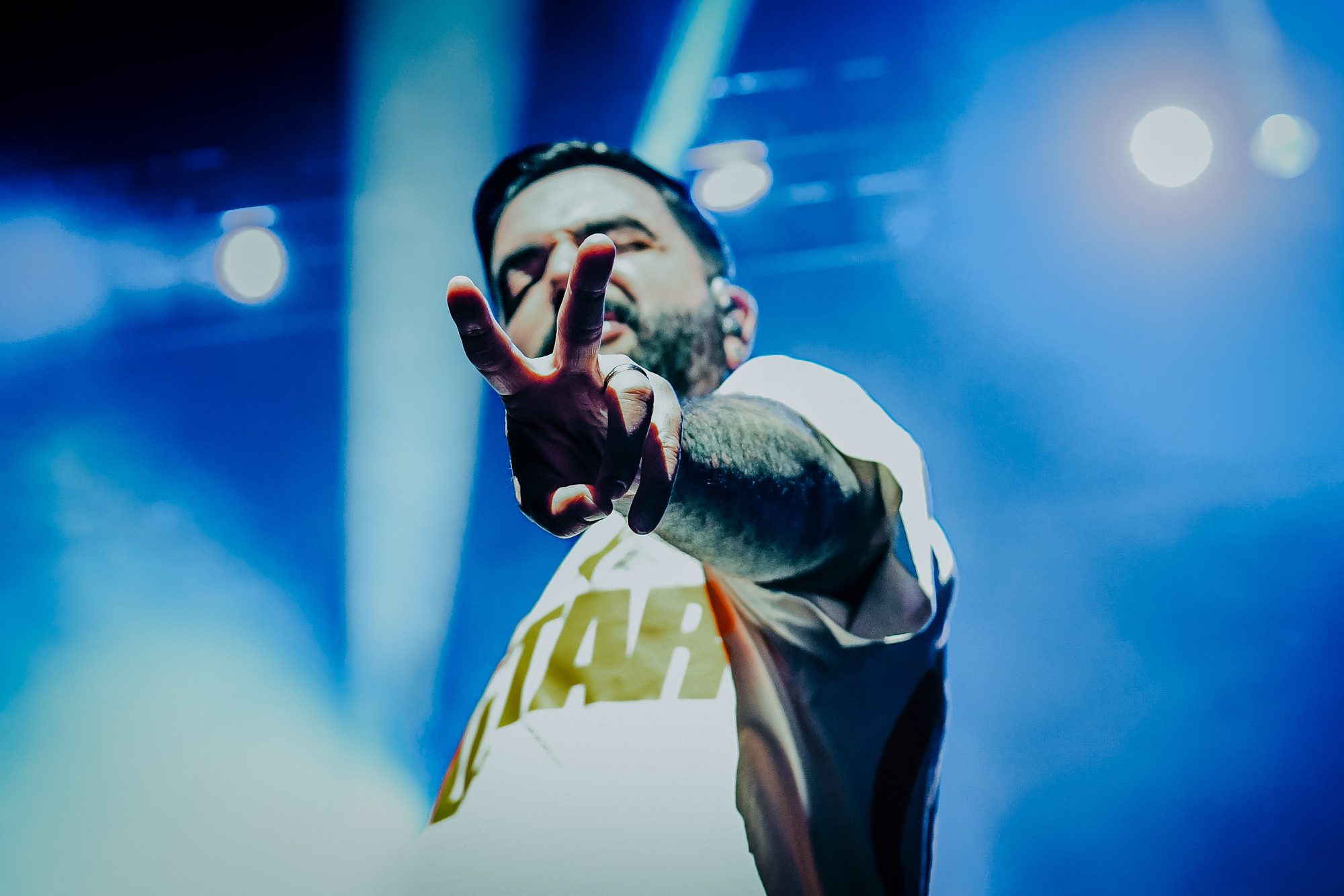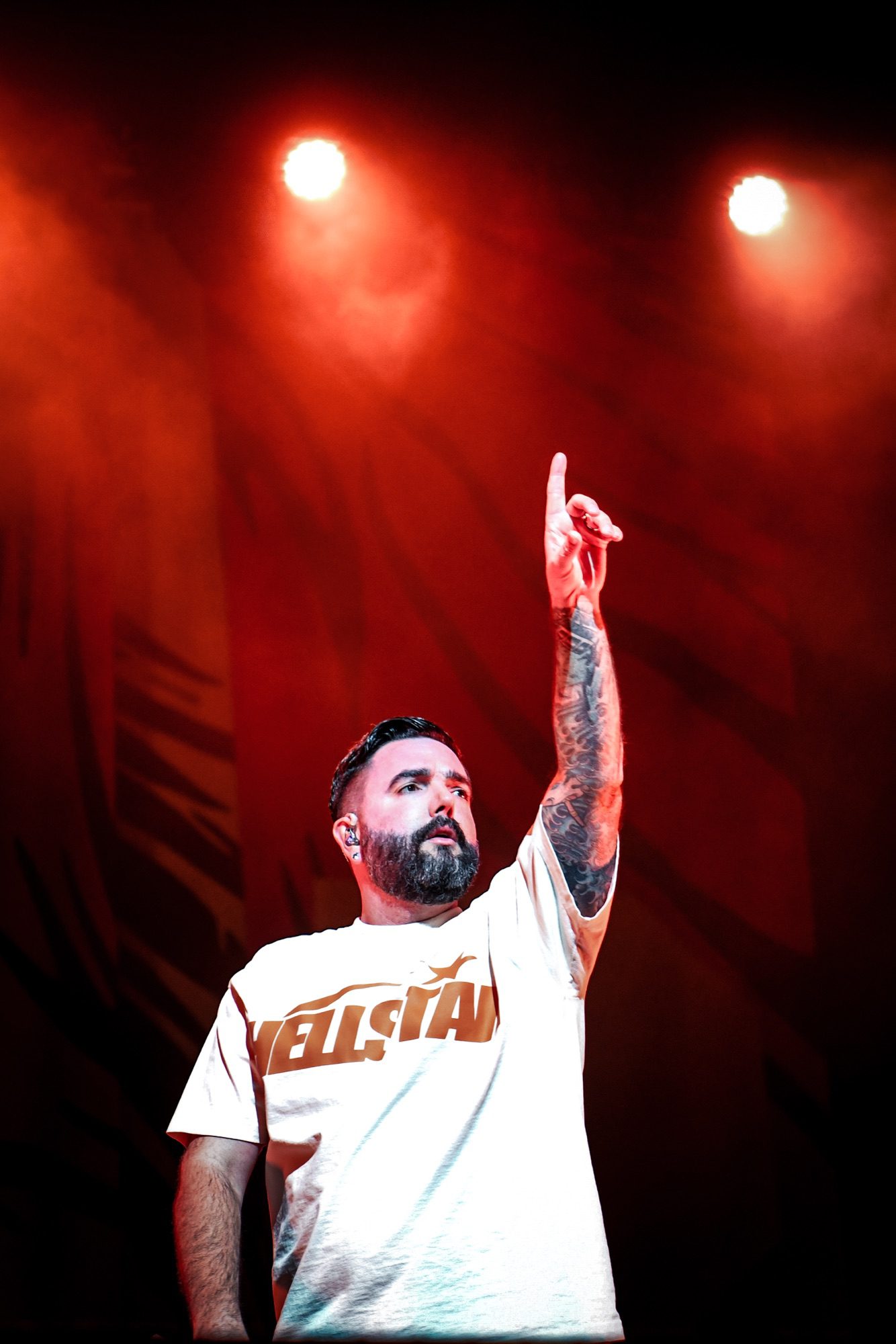 As the sun set, fans were buzzing with anticipation for the UFEST’s next act, South African rock band Seether. It was clear that Seether’s set was one of the most anticipated of the evening, as fans could be seen throughout the venue wearing Seether hats and t-shirts, ready for one of their favorite bands to take the stage. The amphitheater lights dimmed, and a colorful light show began as Seether emerged and the beginning notes of their hit song, “Gasoline”, rang out. The band would go on to play hits from nearly all of their records, including “Country Song,” “Nobody Praying For Me,” “Fake It,” and “Remedy”. In a standout moment of the set, the crowd sang along in unison with flashlights ablaze as vocalist Shaun Morgan and bassist Dale Stewart brought out their acoustic guitars for a powerful performance of “Broken.” Seether is currently touring in promotion of their newest album, The Surface Seems So Far, released in September. Catch them on the road with P.O.D. and Nonpoint through the end of May.