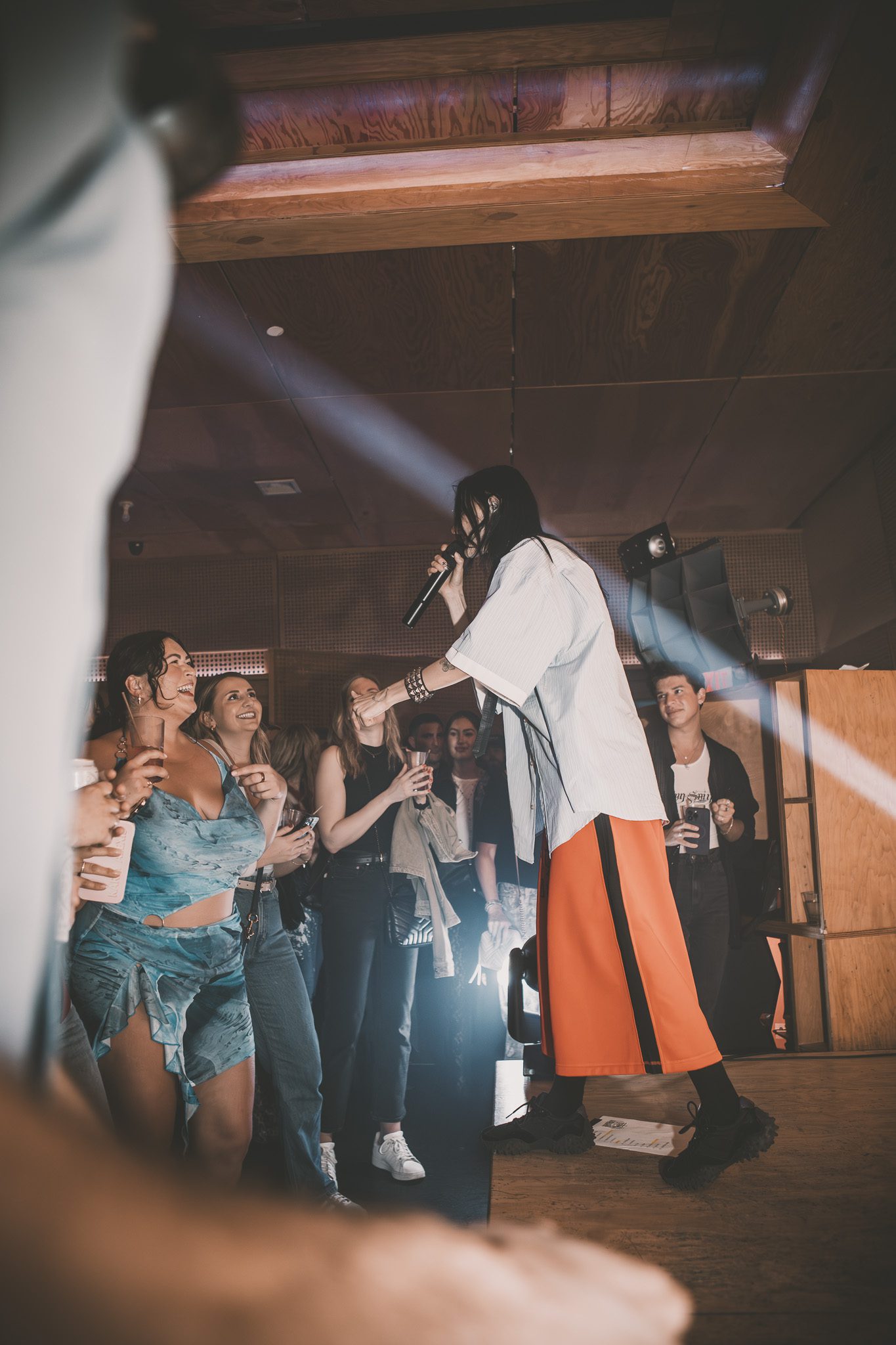 Her voice – half whispered, half-war cry – tugged at memory and marrow. During the title track, “Out Of The Blue,” time unraveled. With a heartbeat’s pulse beneath her breathy cadence, she sang of love not as fantasy but as elemental truth. “We were touching knees right underneath the trees, when it came into view, I could finally see it was you and me the whole time, baby, out of the blue, I fell in love with you” – the line dropped like a weightless confession, and for a moment, we weren’t just listening. We were inside her love story with her wife and creative mirror, Carley Ridersleeve.