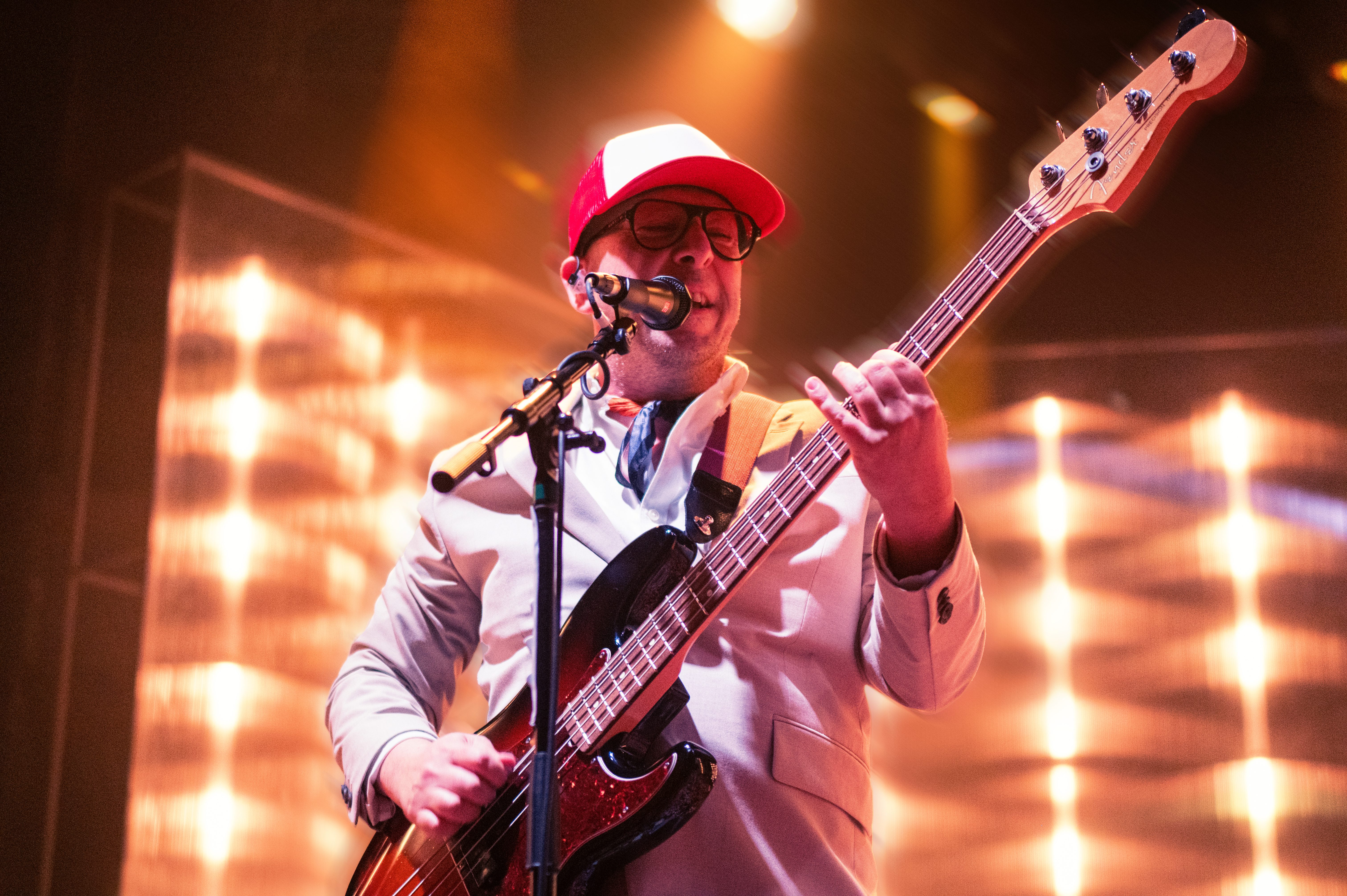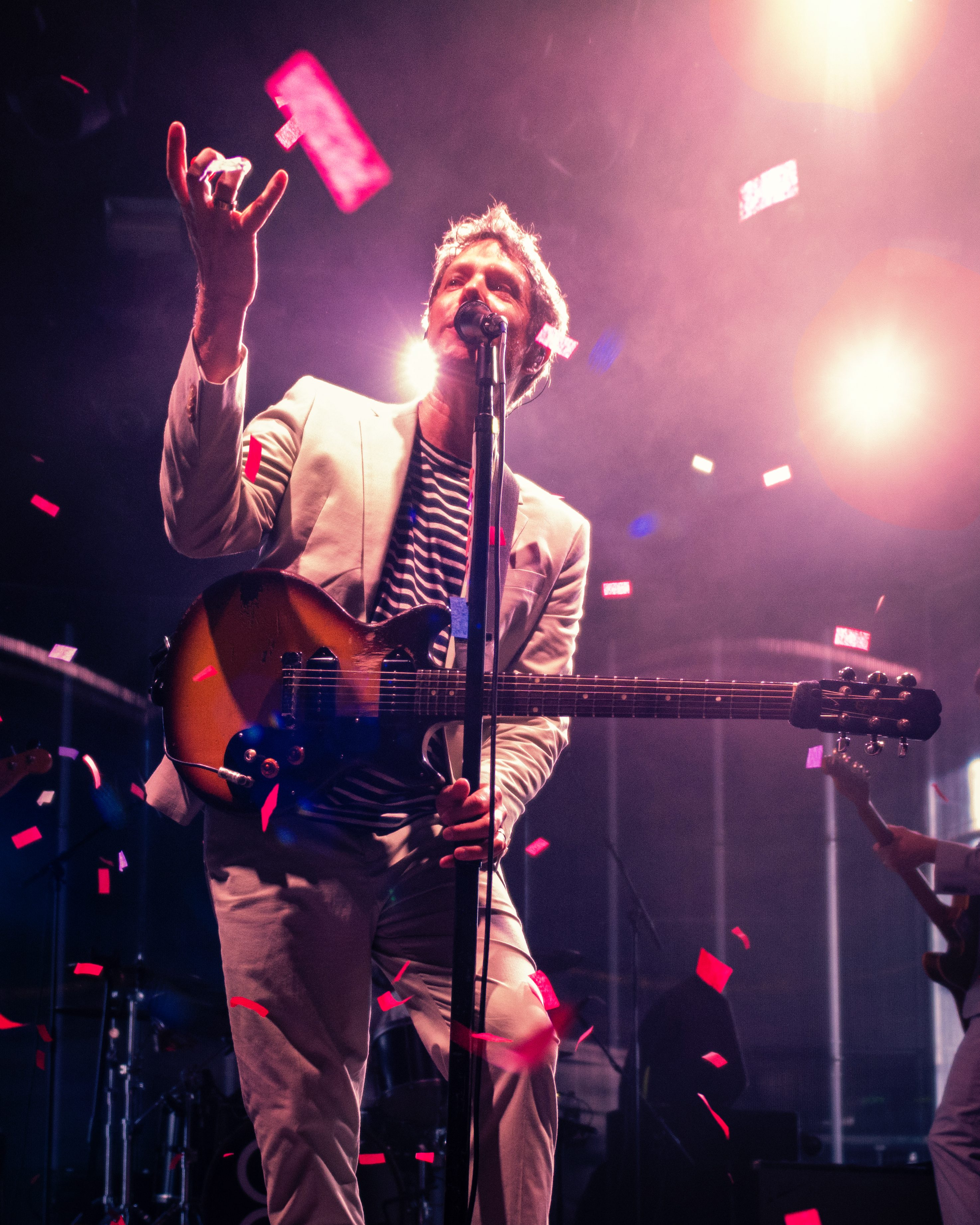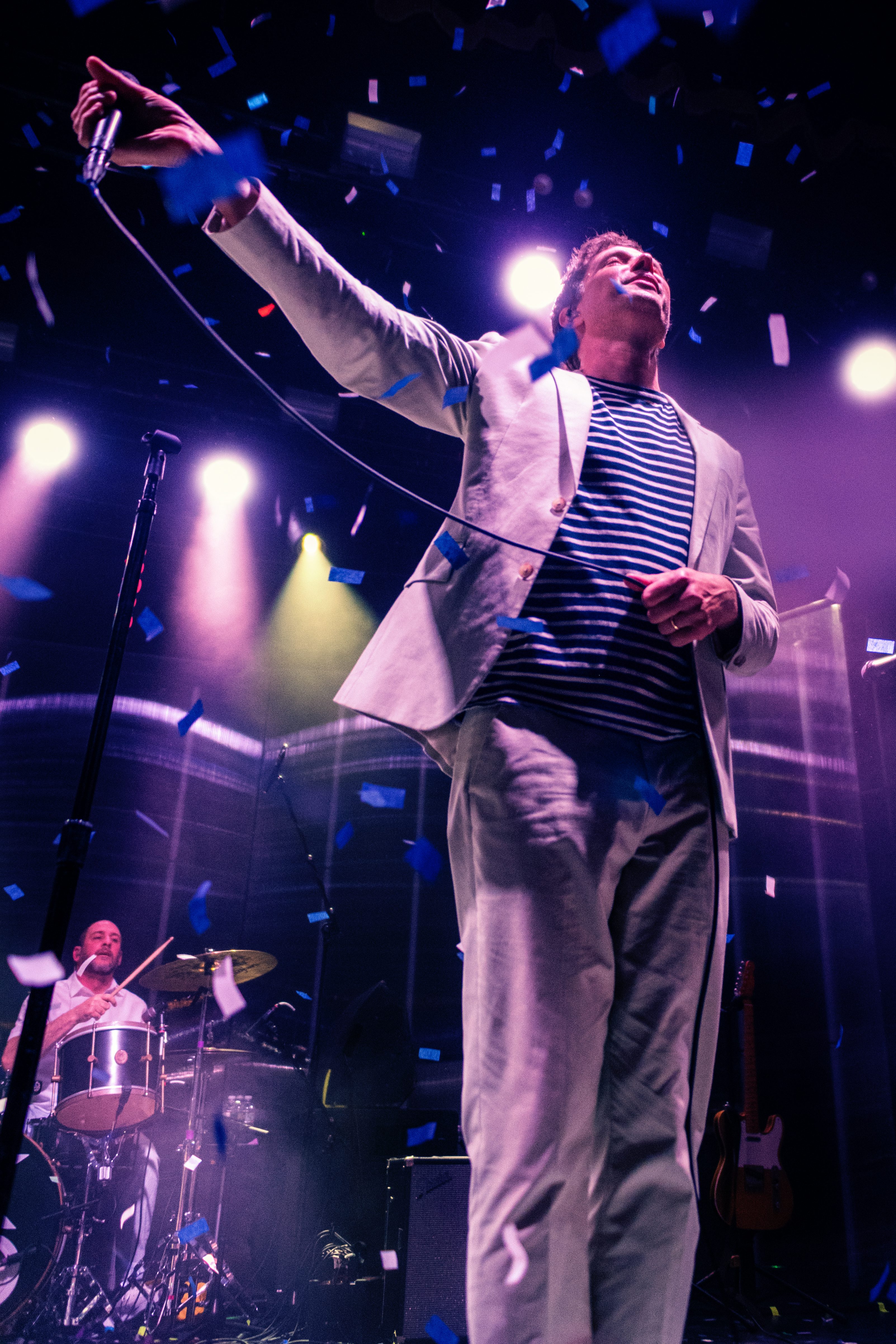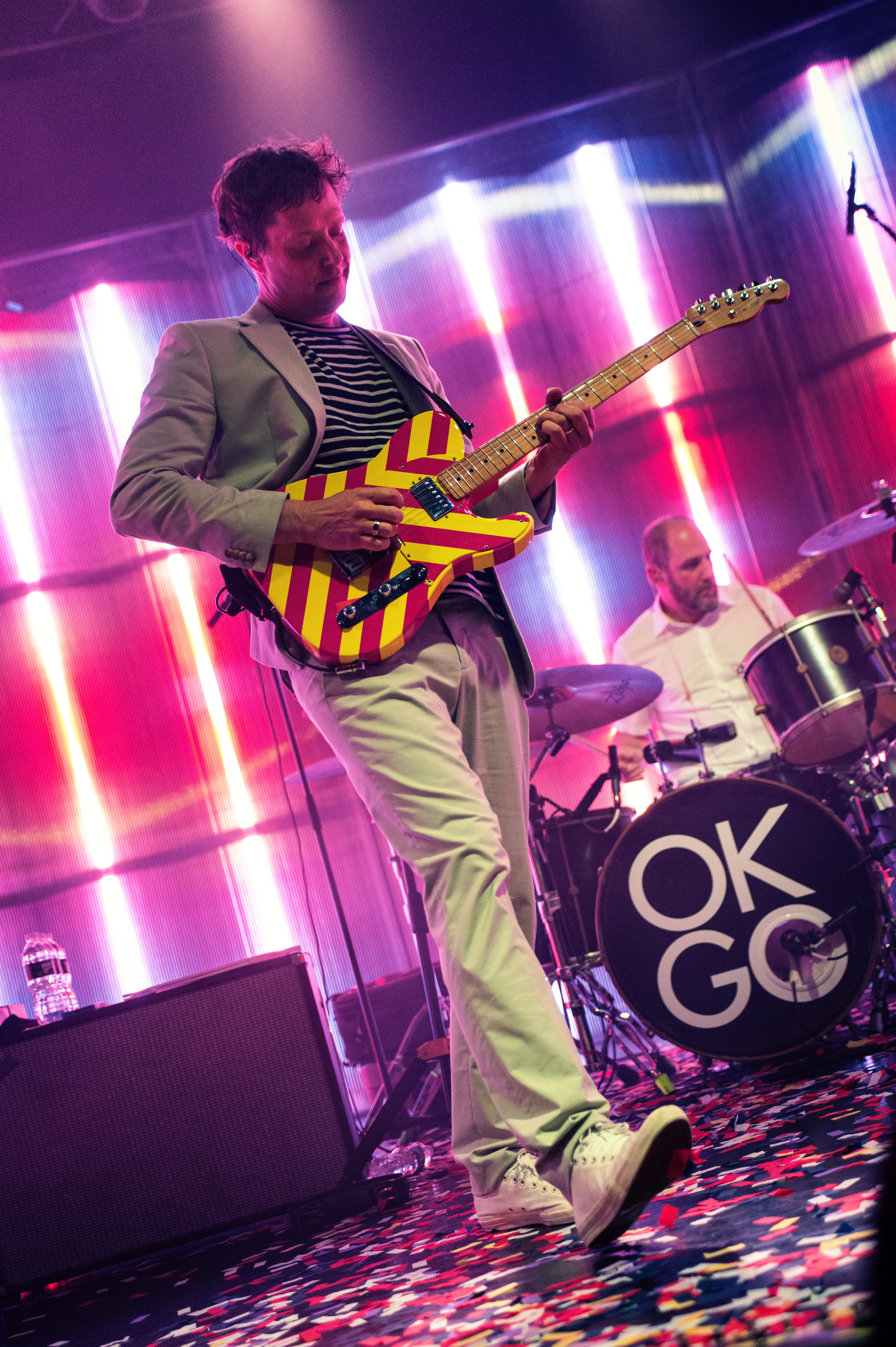 OK Go kicked off their set with a bang. Literally. Confetti cannons erupted within the first few bars and didn’t let up for the next 90 minutes. Lead singer Damian Kulash, ever the charming showman, paused between songs to field questions from the crowd. When asked about the confetti, he casually mentioned they use about 100 pounds per night, adding with a grin, “But it’s biodegradable… I think.”
