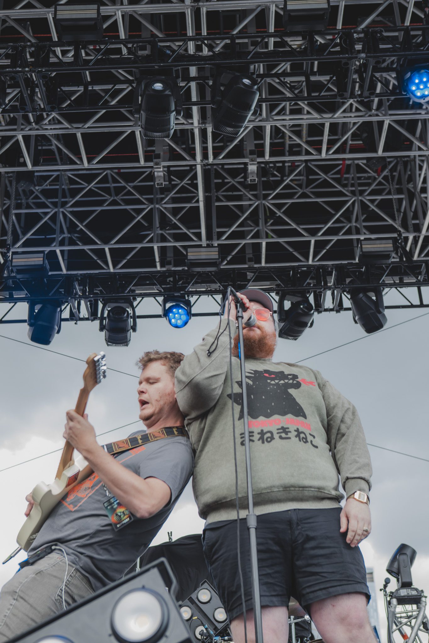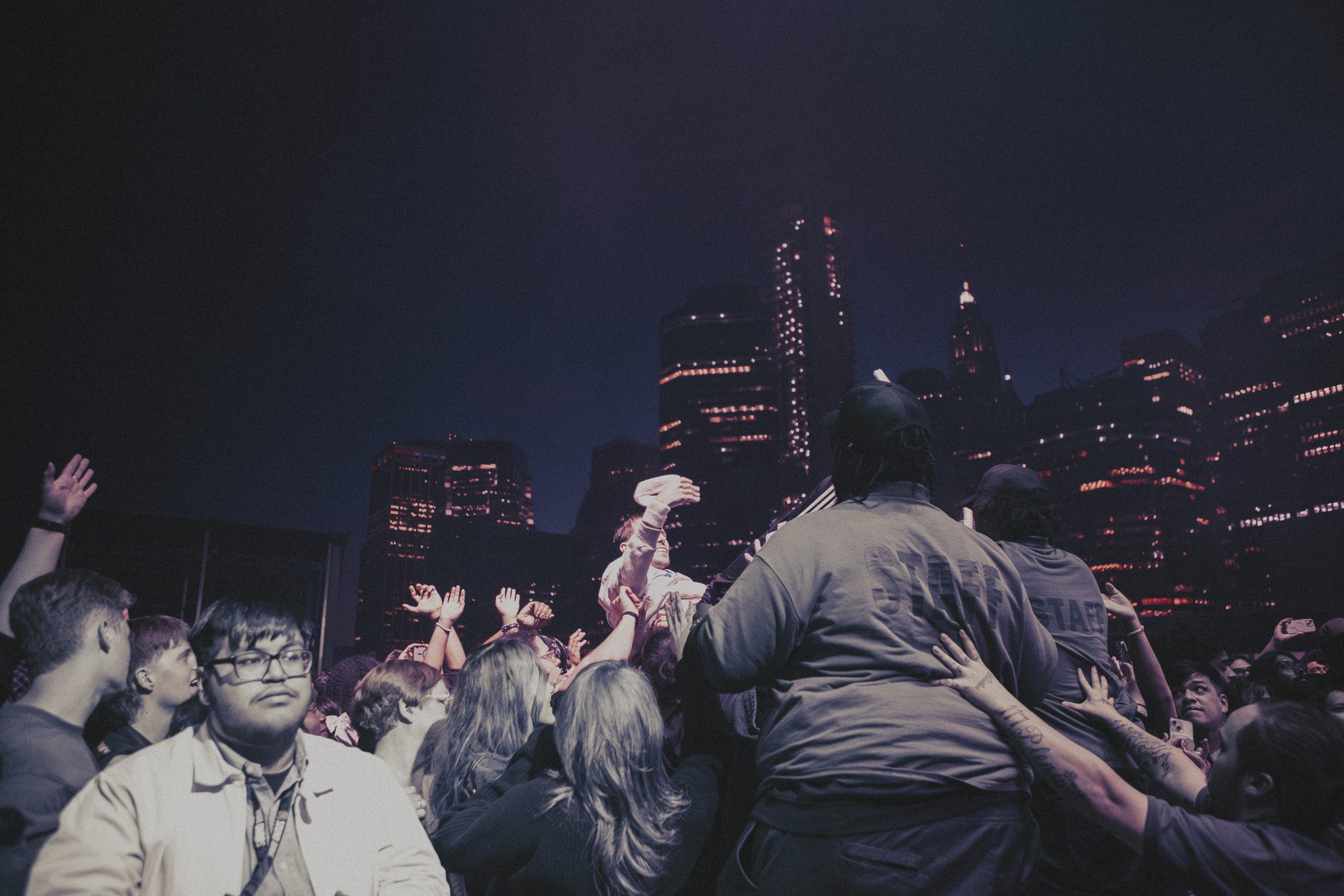 Then came Belmont. And just like that, the floor was moving. Within seconds, mosh pits scattered across the rooftop like constellations – shifting, bright, and burning. Hailing from Chicago, the band brought the grit of Midwest hardcore infused with pop-punk’s infectious magnetism to the city that never sleeps. Their technical precision hit like muscle memory. It was their performance that made Dwellings fall short for me – the contrast was stark. They didn’t ask the crowd to move – they made them. Sing-along choruses met head-crushing breakdowns, and the room pulsed in time with their command. The rain poured down when they stepped on stage, but the second their music picked up, it cleared out and a rainbow came in its wake, making the performance feel even more monumental.