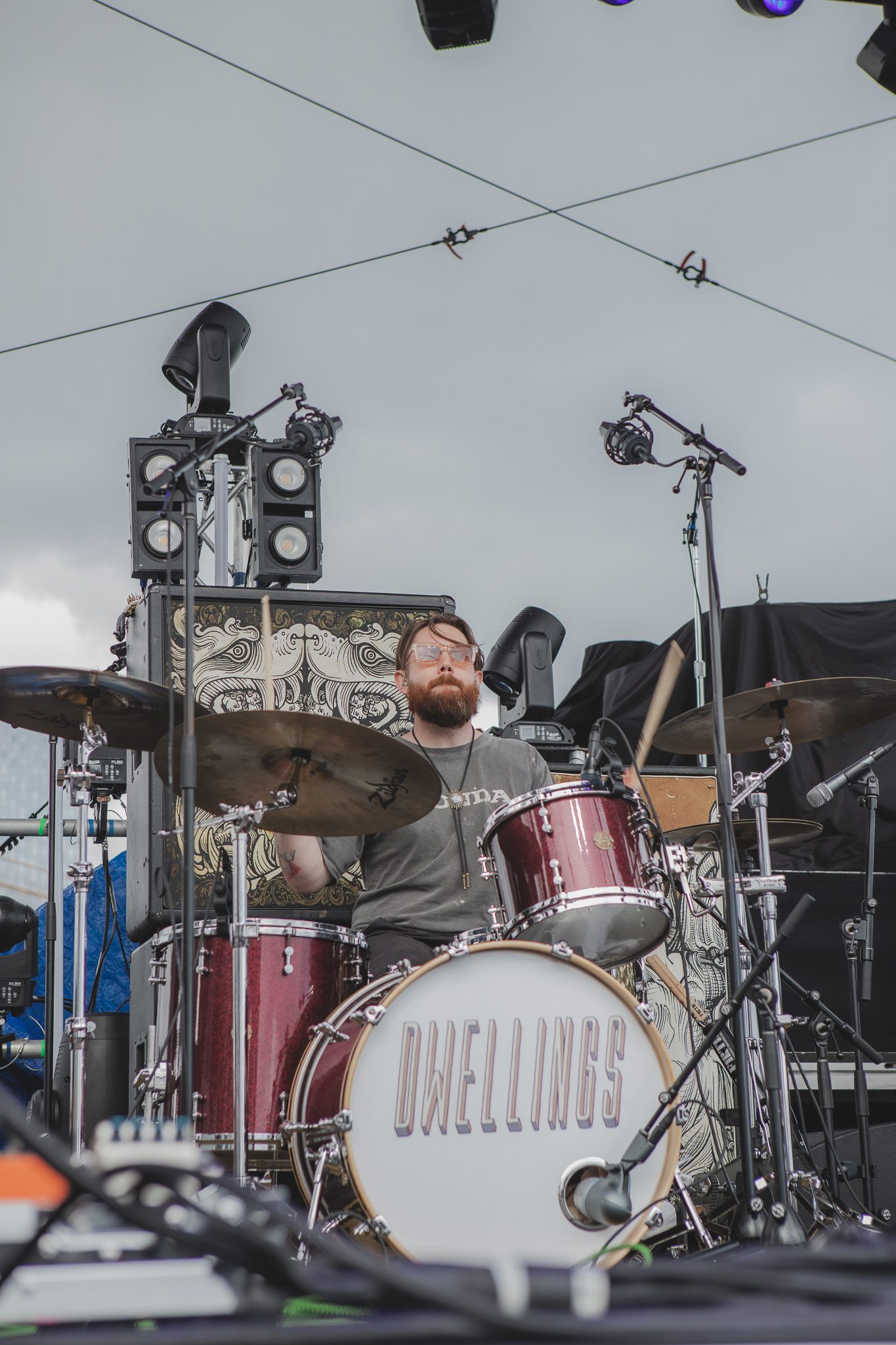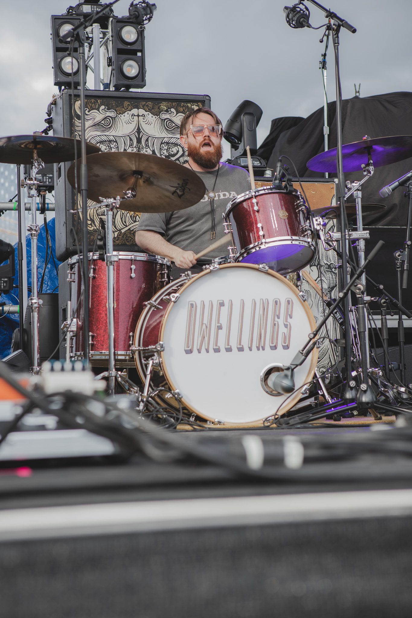 Opening the night, Dwellings emerged with a sound that defied categorization. Their intricate guitar work and emotive vocals created an immersive experience, drawing the audience into their unique blend of post-hardcore and ambient rock. Intricate guitar lines snaked through a wash of emotive vocals, pulling listeners into a sonic fog. But their set struggled to capture the rooftop’s full attention. Maybe we were just containing our energy, maybe we were just being introduced to the world of Dwellings for the first time, however the crowd murmured and swayed in place, more curious than captivated. Though the band proved adept at building tension and releasing it in controlled crescendos, their presence lacked the weight needed to pin down New York’s recognition. The talent is there, but the performance is still growing into its shoes, suggesting a continued evolution for Dwellings that I look forward to witnessing.
