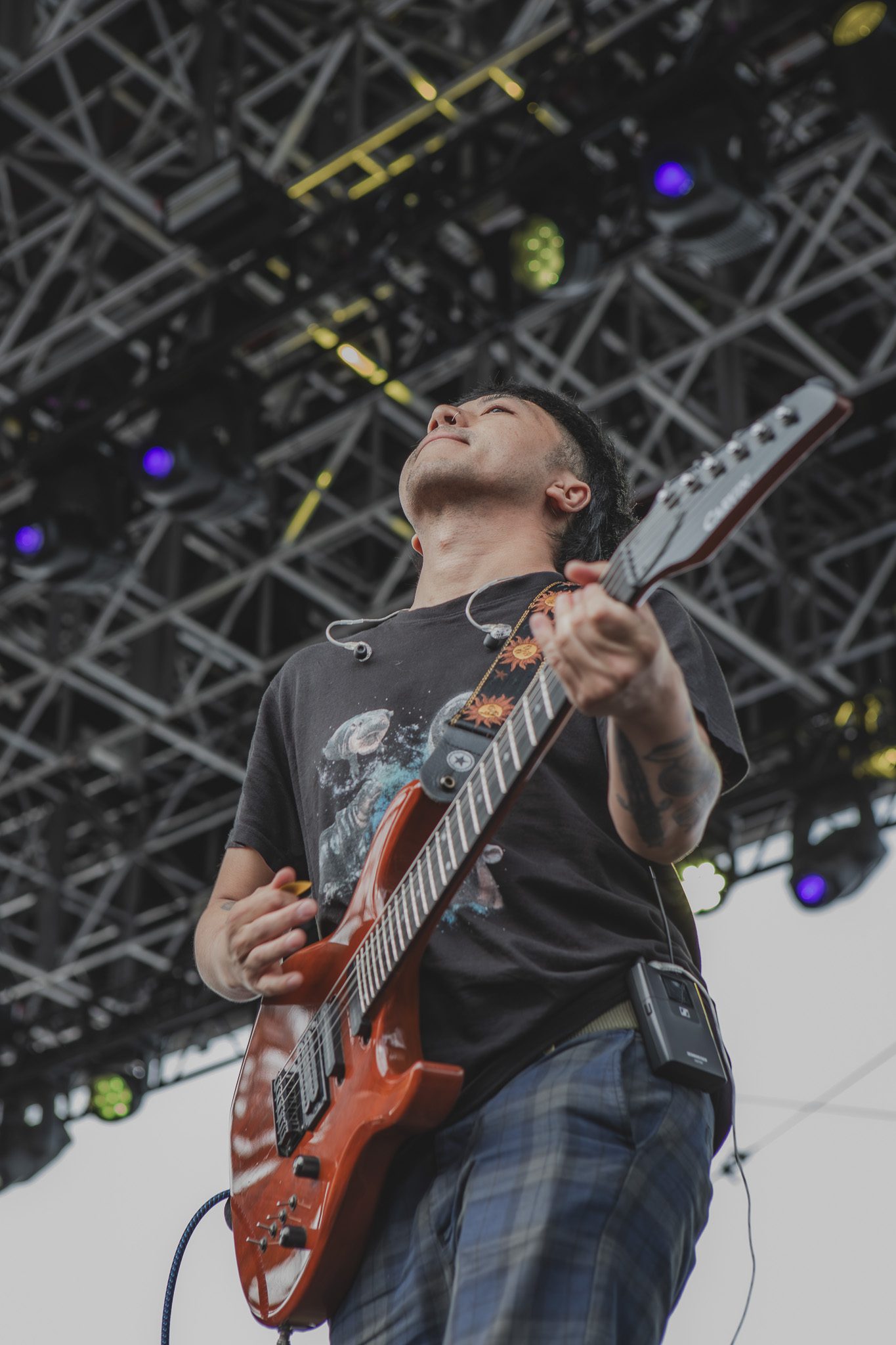Personally, it was the instrumentation that floored me. As someone who plays both guitar and bass, Dance Gavin Dance was part of the reason I picked up those instruments in the first place. Watching them play iconic lines live – up close, locked in, divine – it was like hearing a language I’d forgotten I was fluent in. I stood at the back, planted, speechless. I wanted to mosh. I wanted to dance with strangers. I wanted to relive memories from my teenage years, going to Warped Tour and sweaty, small venues much unlike Pier 17. But awe anchored me to the ground. I was left staring at the screens, wide-eyed in astonishment. This is a band that is tightly knit in all the right places, exquisite yet accessible, and hearing it live is an experience that is indescribable.