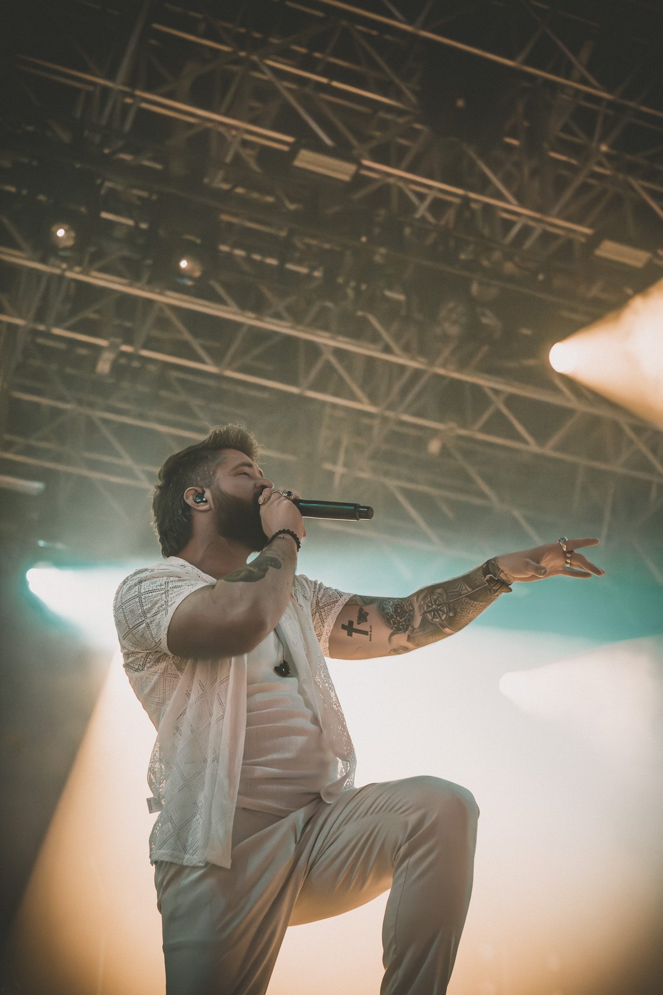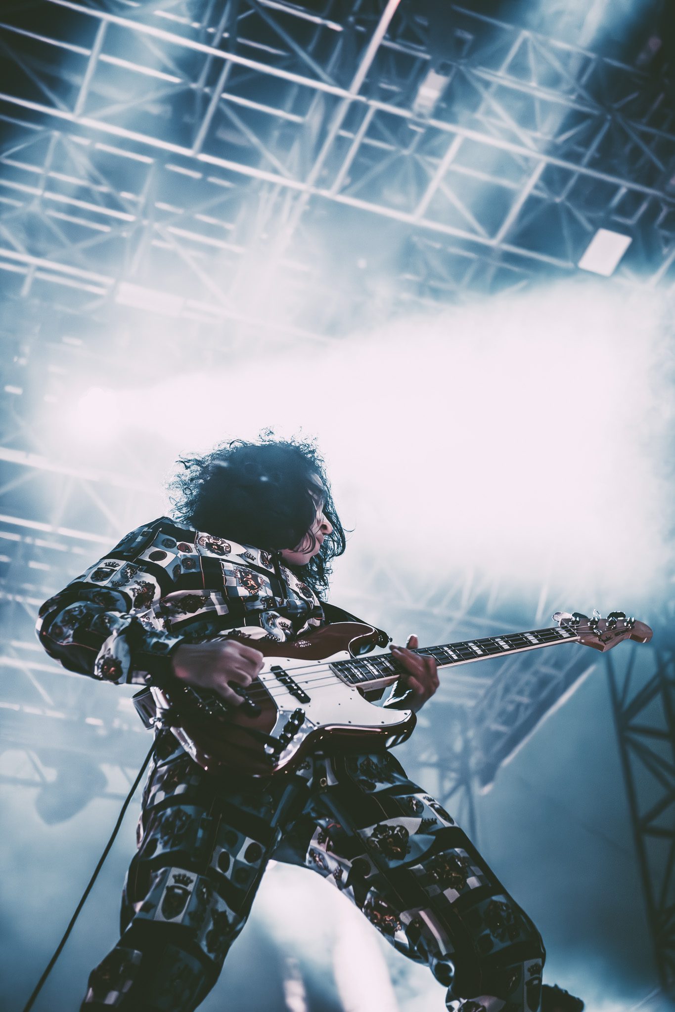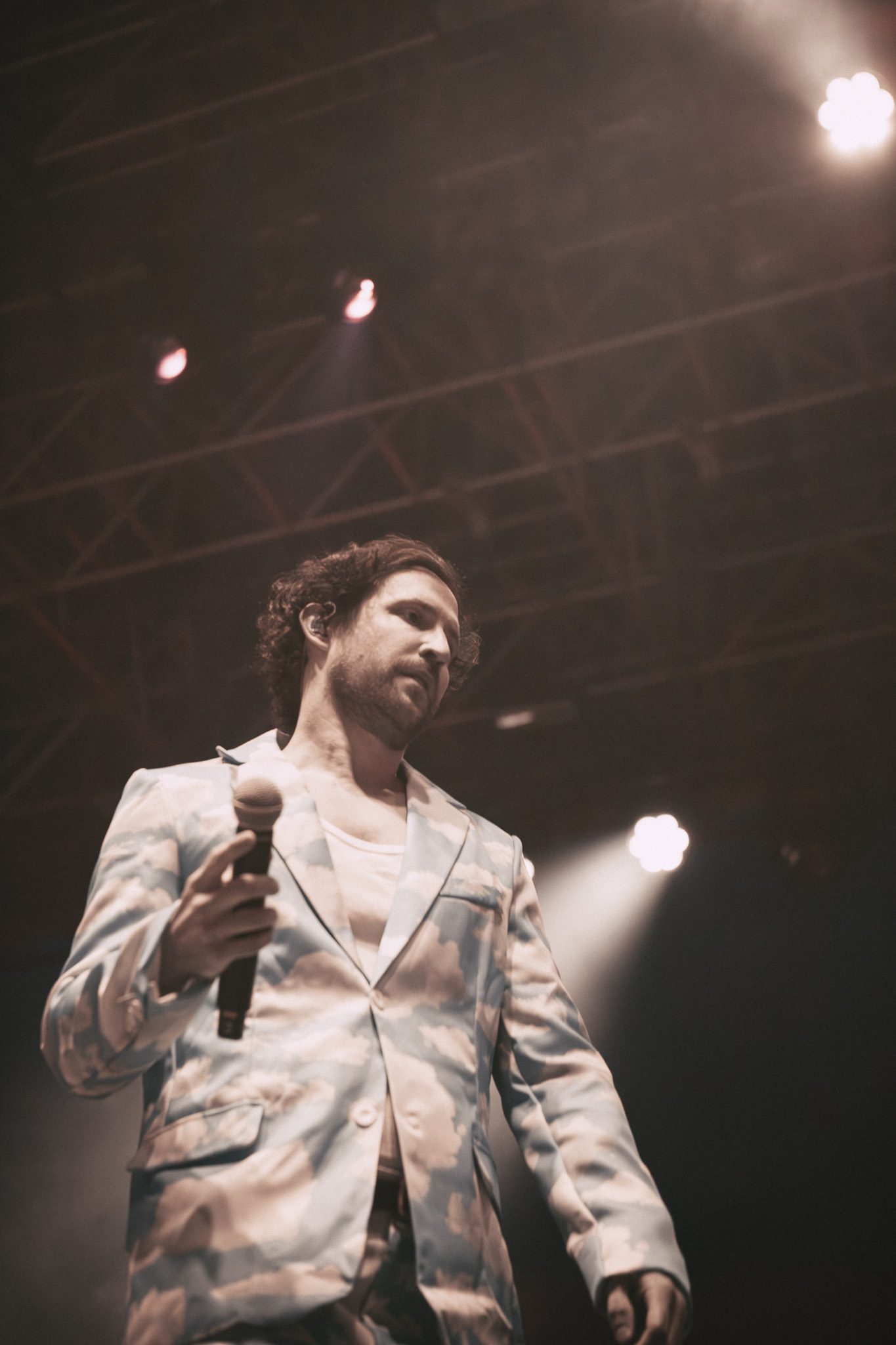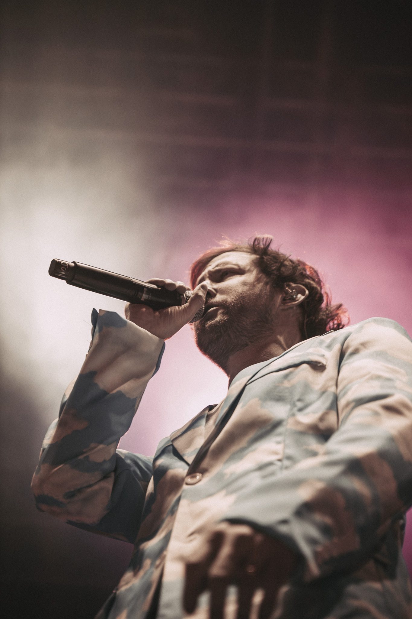 The Home Team was the sweet reprieve – a shimmering interlude dressed in silk and groove. Frontman Brian Butcher is, without a doubt, one of the strongest vocalists in the scene today. His live performance mirrors the band’s studio polish with haunting fidelity, soaring through melodies like a ribbon pulled tight. There are few artists remaining on my “bucket list of shows to photograph,” but The Home Team has been top of it for awhile. And they did not disappoint. Under a canvas of coral light, “Walk This World With Me” rose over the skyline like a prayer, and the crowd, suspended in the moment, swayed in collective surrender with their phone lights illuminating the stage. Butcher looked out and said it plainly: “This is the biggest crowd we’ve ever played to.” Judging by their rising stardom – and with their next album The Crucible of Life releasing July 12 – it won’t hold that title for long. Their set was a celebration of genre-blending, effortlessly marrying funk rhythms with rock intensity.