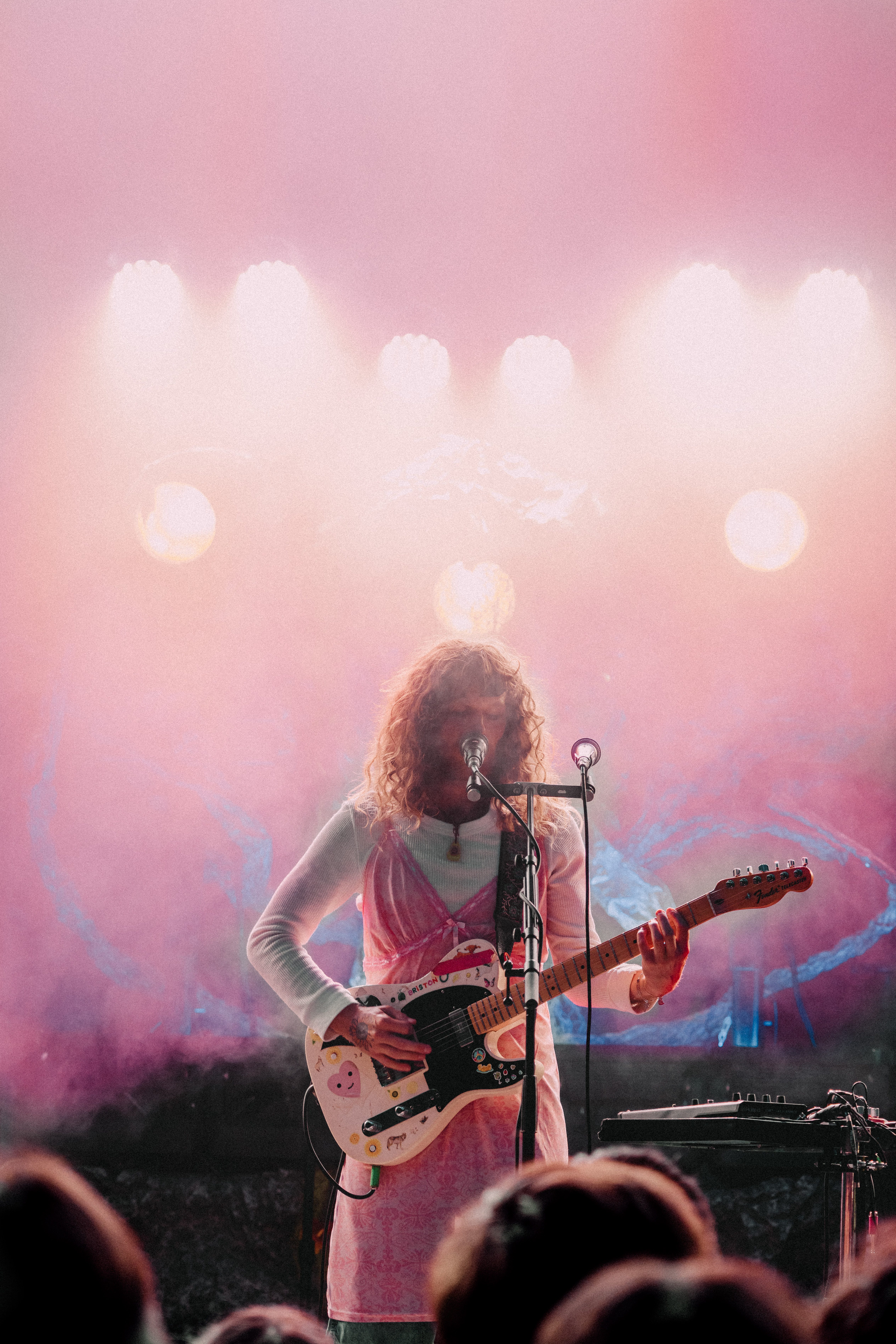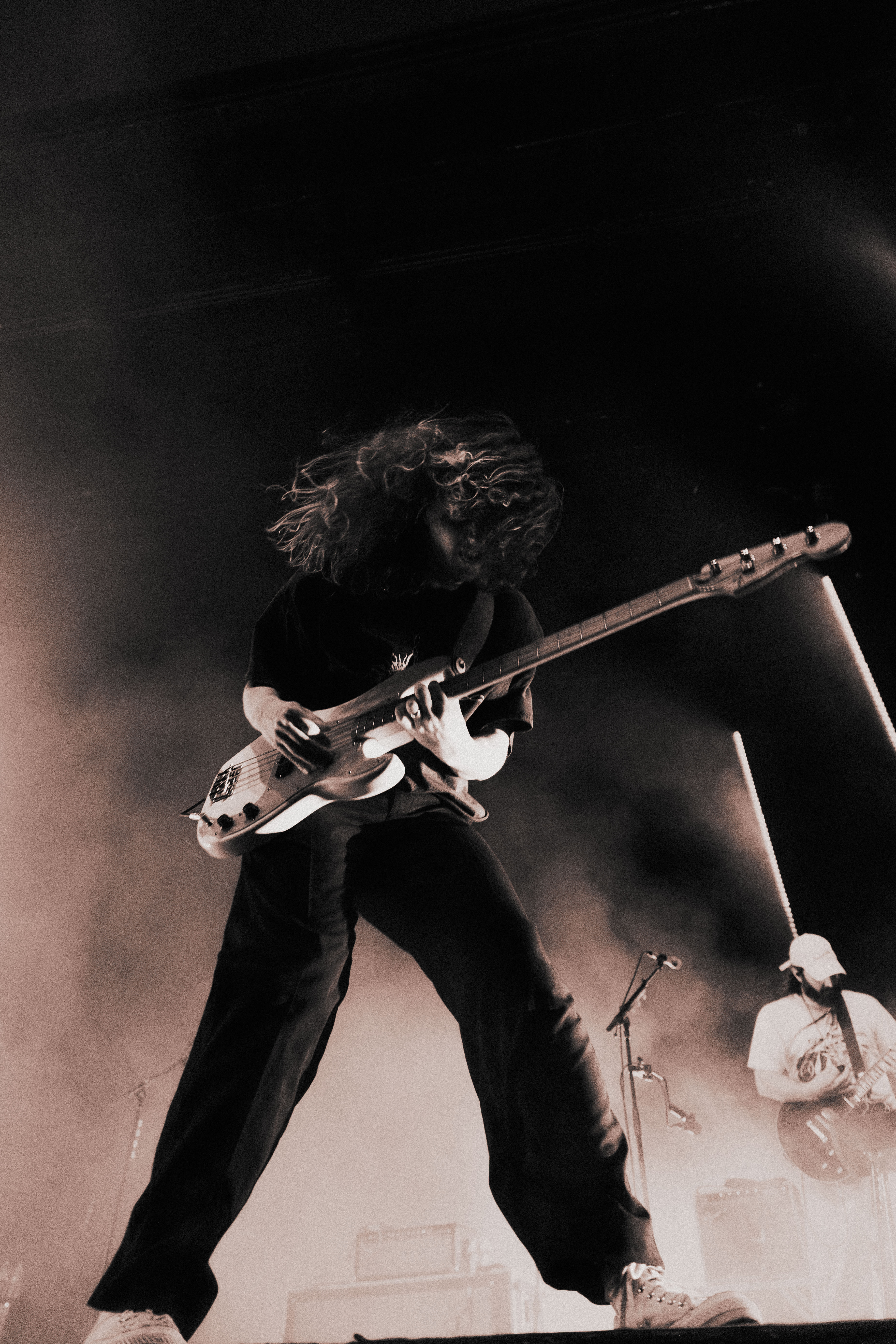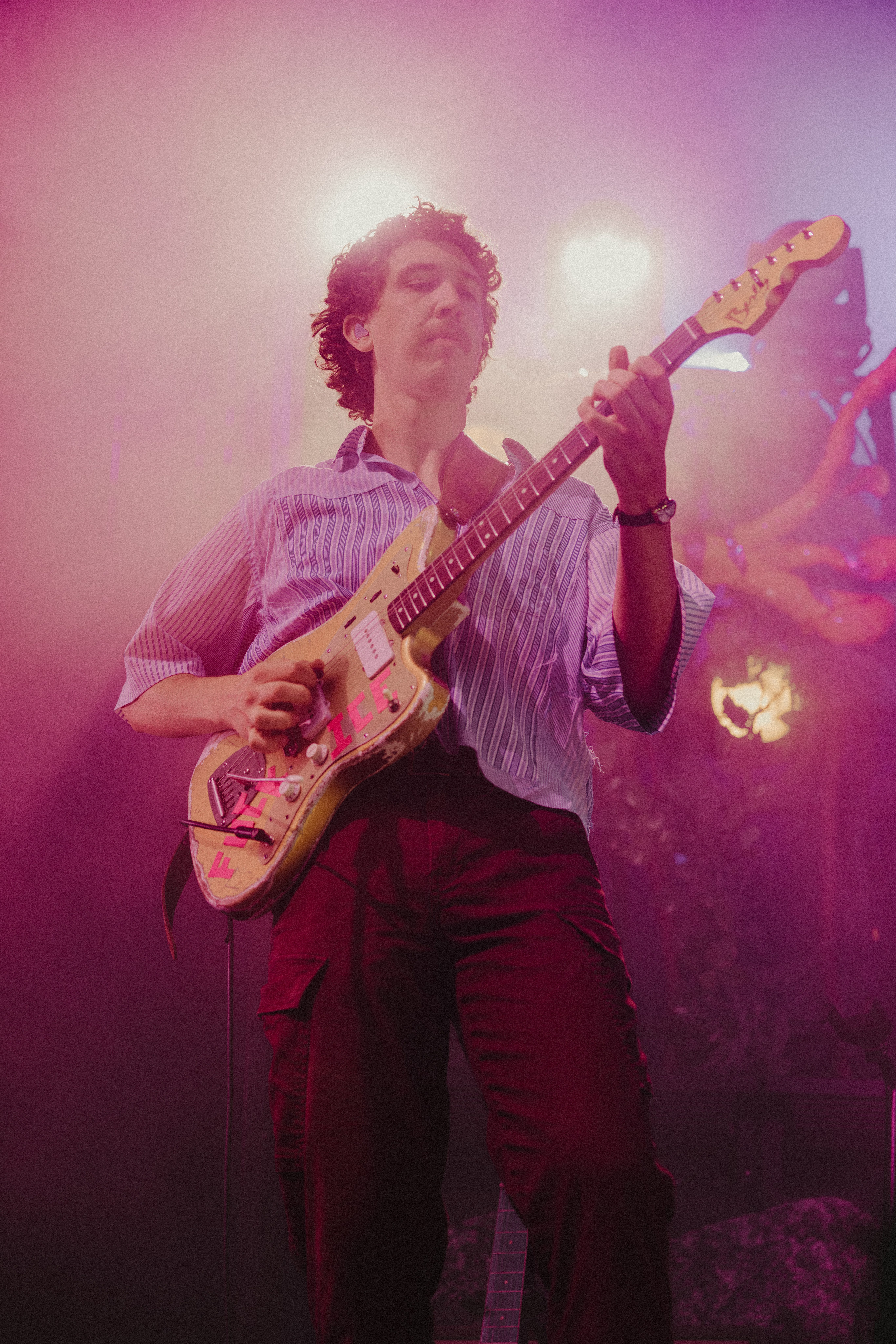 Following up was Vancouver-based indie group Peach Pit, who walked onstage to thunderous cheers. The band immediately matched the crowd’s energy. While their stage setup was very minimal compared to Maroney’s, the lighting design filled the space with warmth and movement, allowing the band’s chemistry and stage presence to take center stage.
