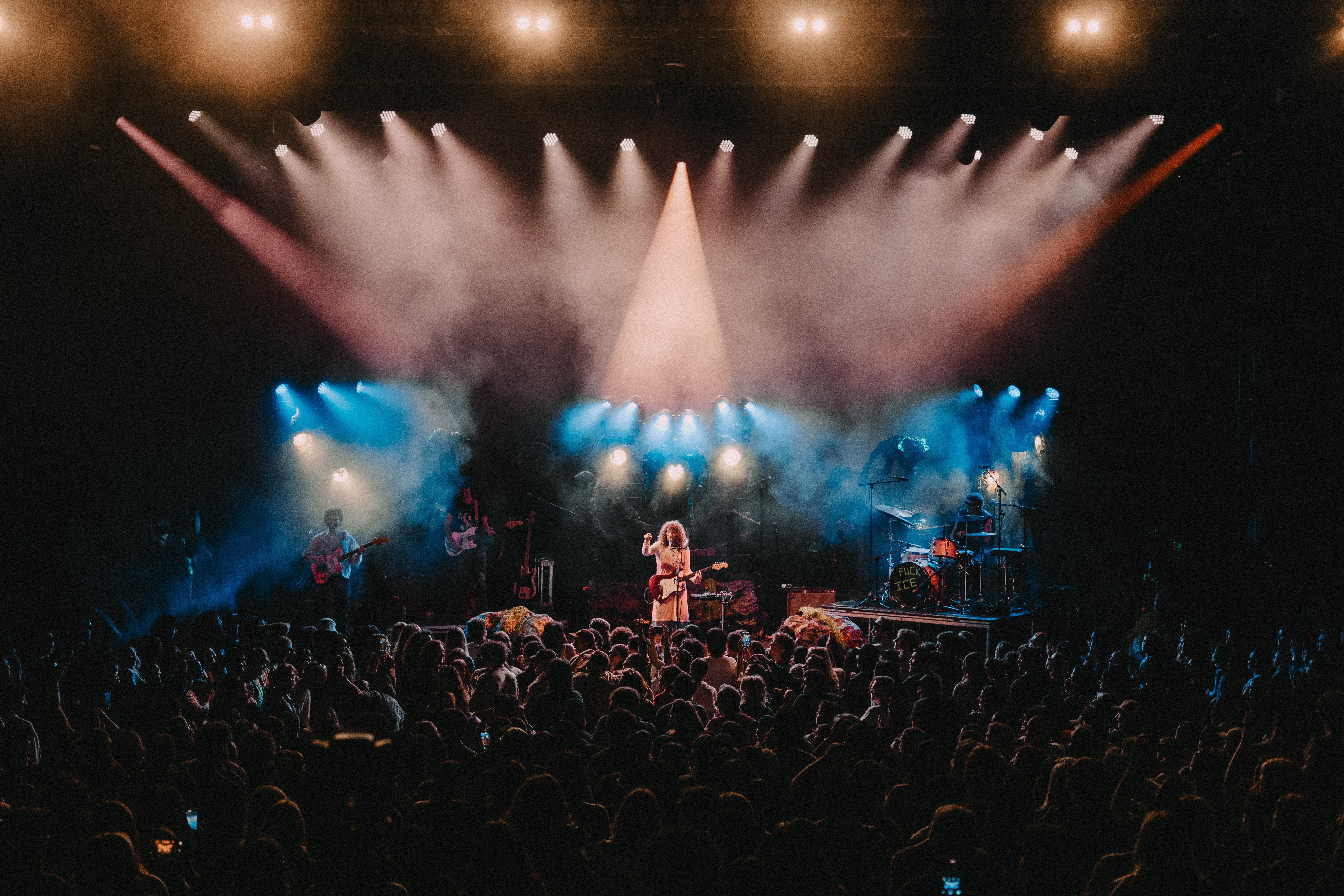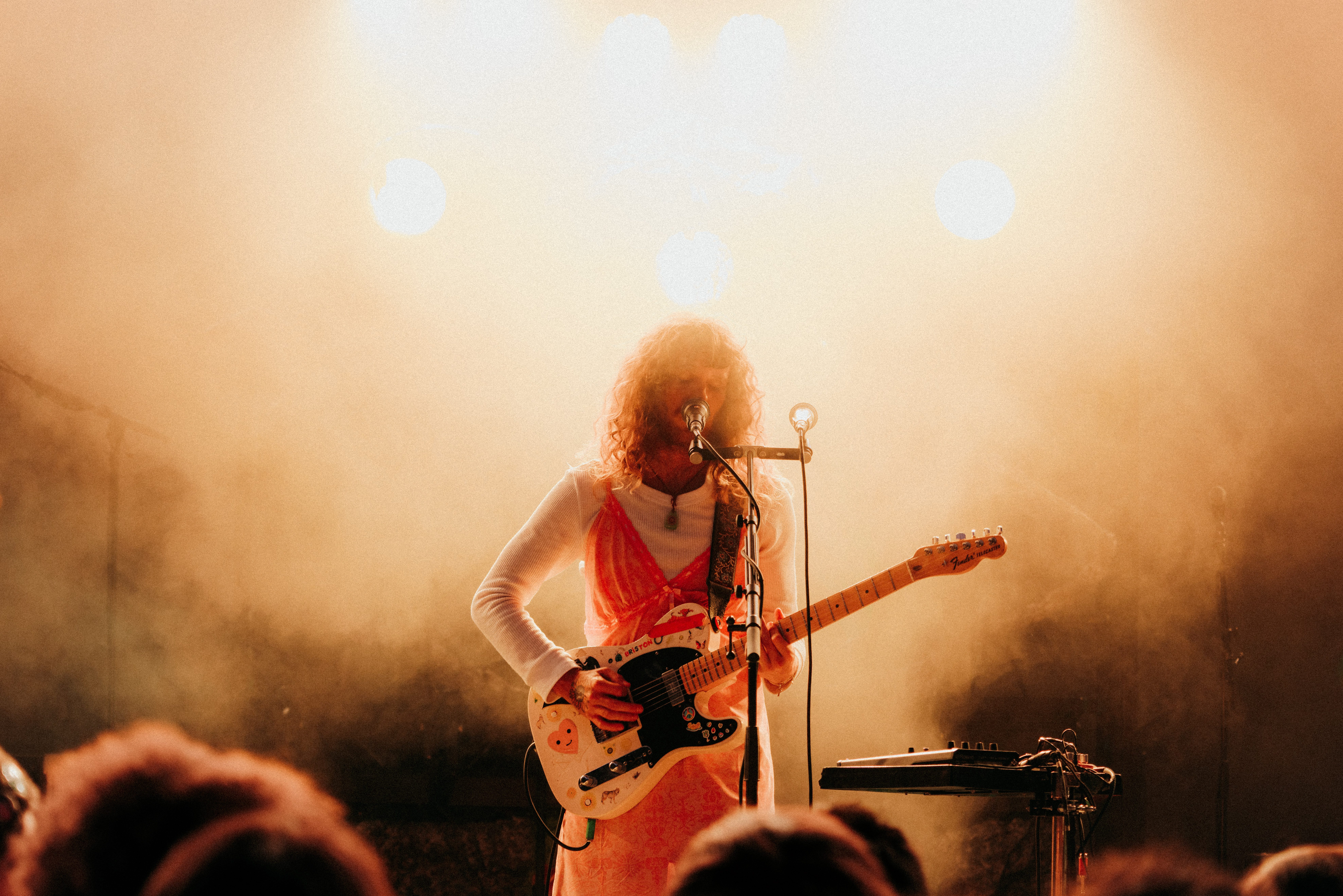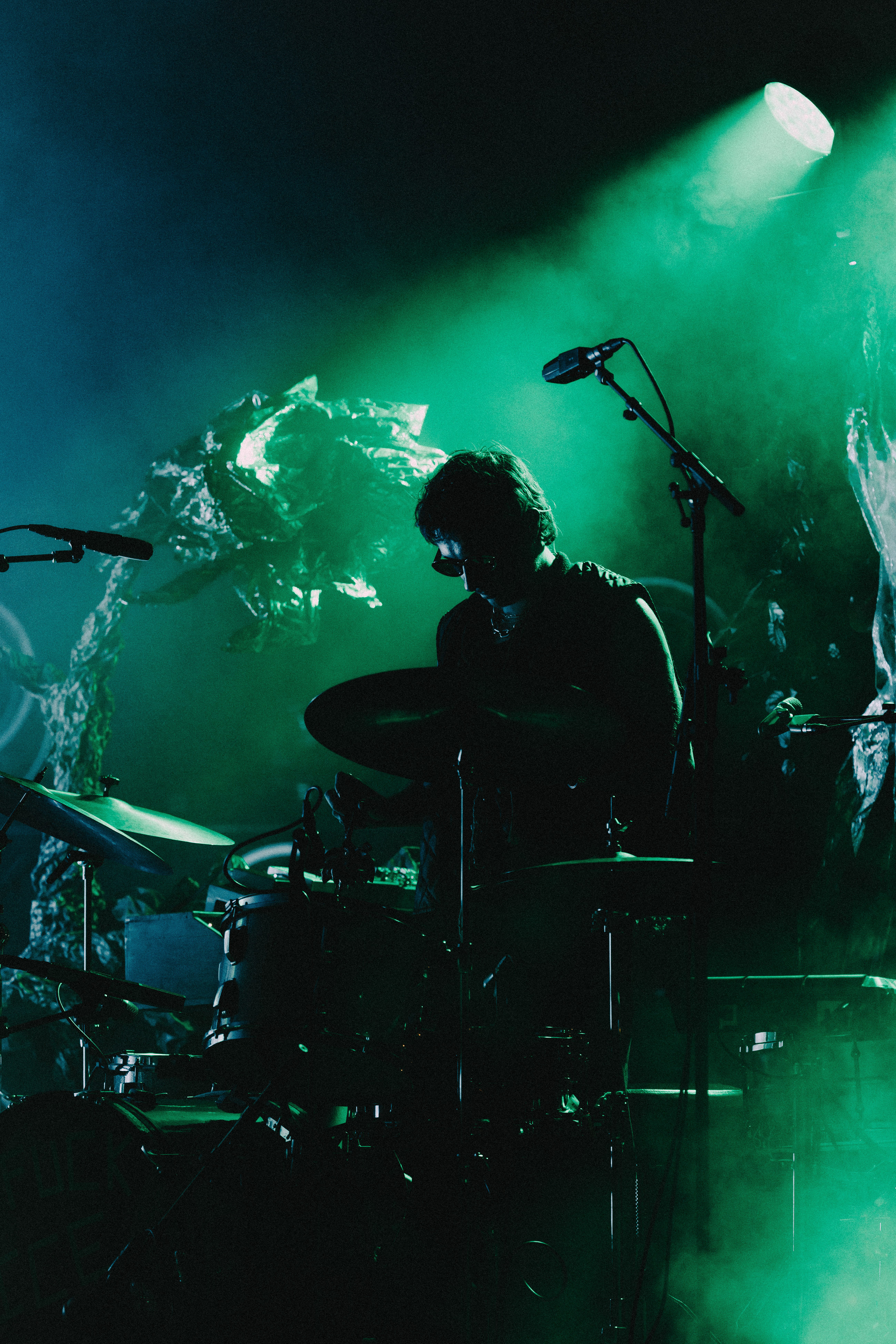 Following up was Vancouver-based indie group Peach Pit, who walked onstage to thunderous cheers. The band immediately matched the crowd’s energy. While their stage setup was very minimal compared to Maroney’s, the lighting design filled the space with warmth and movement, allowing the band’s chemistry and stage presence to take center stage.