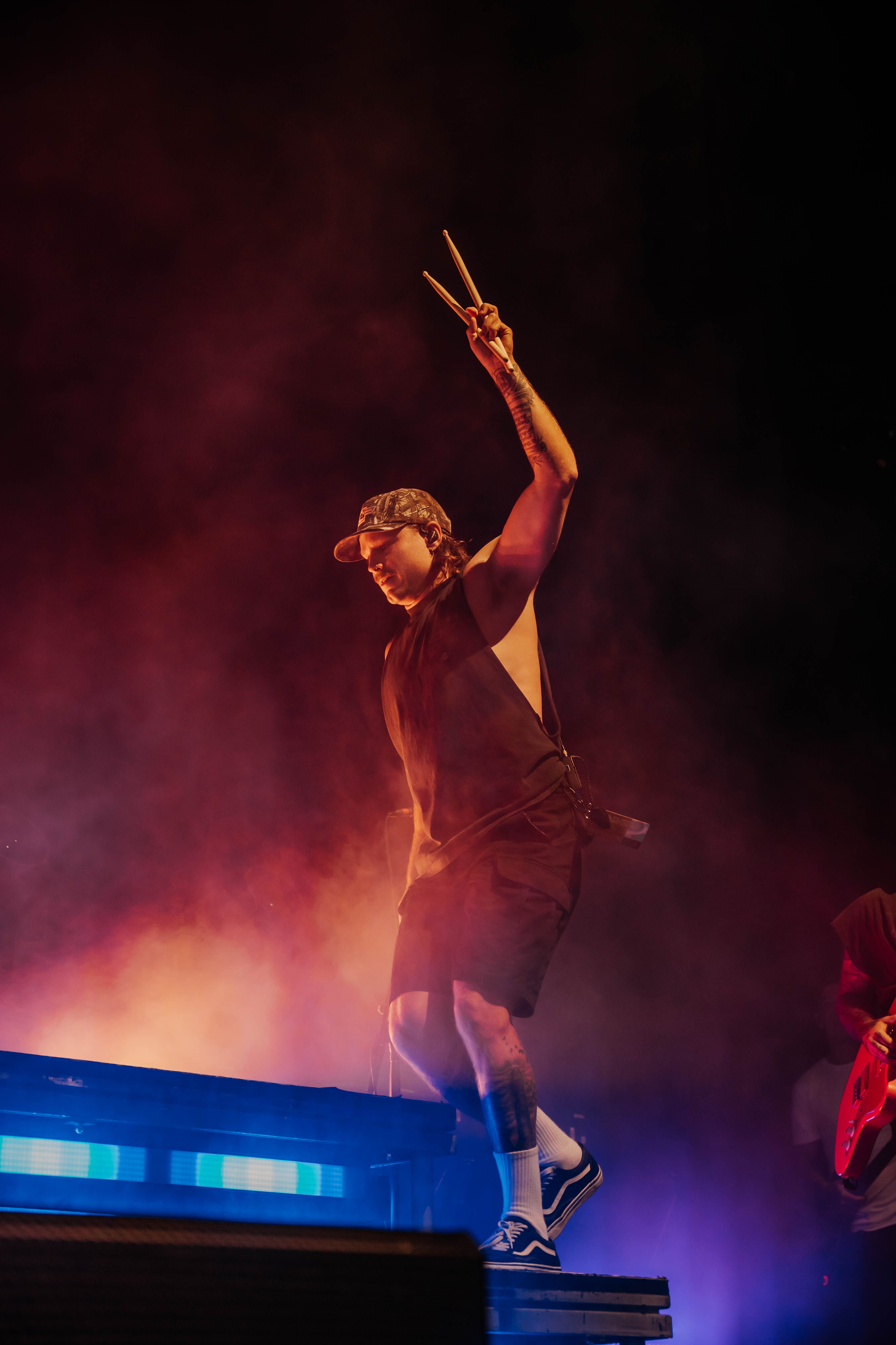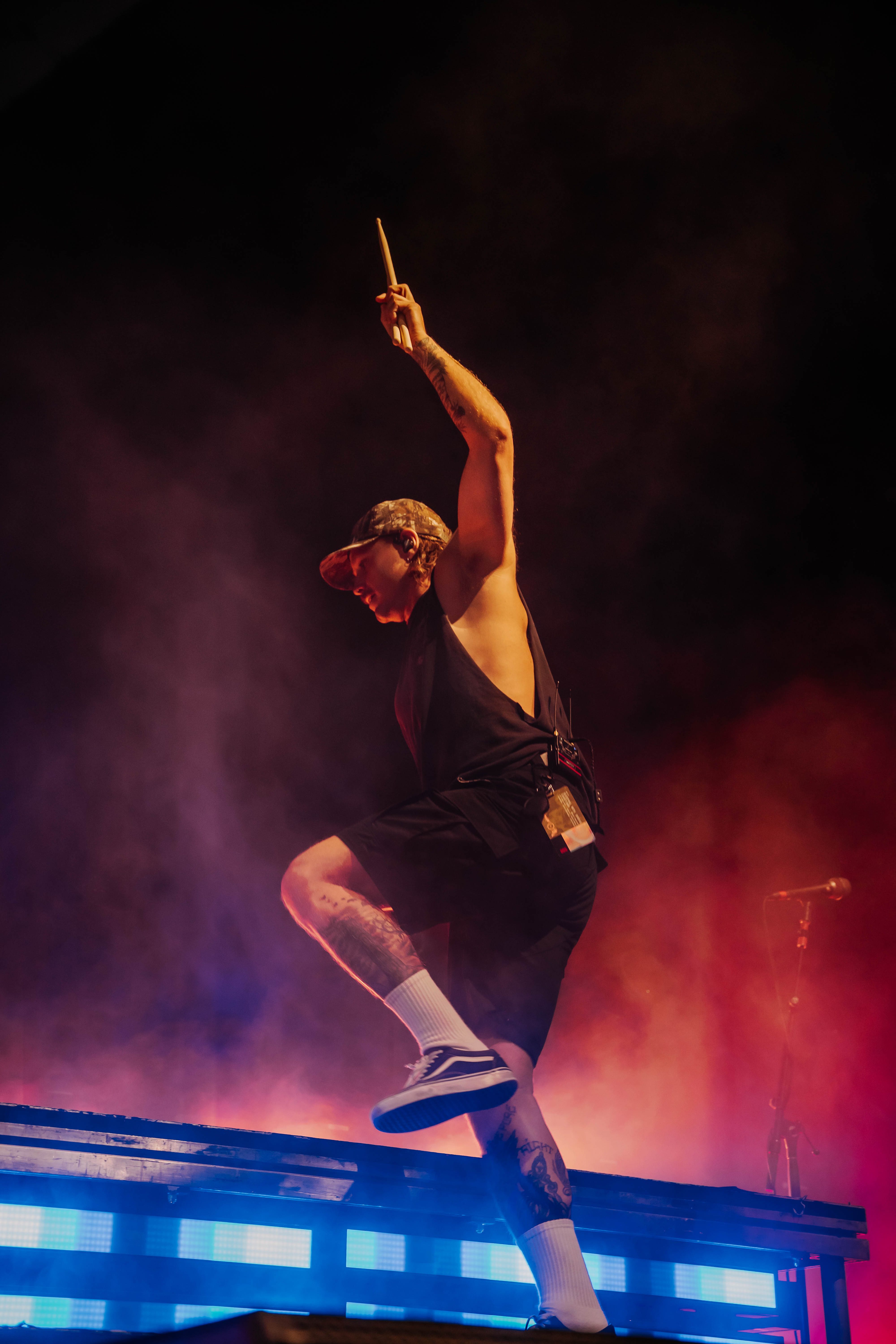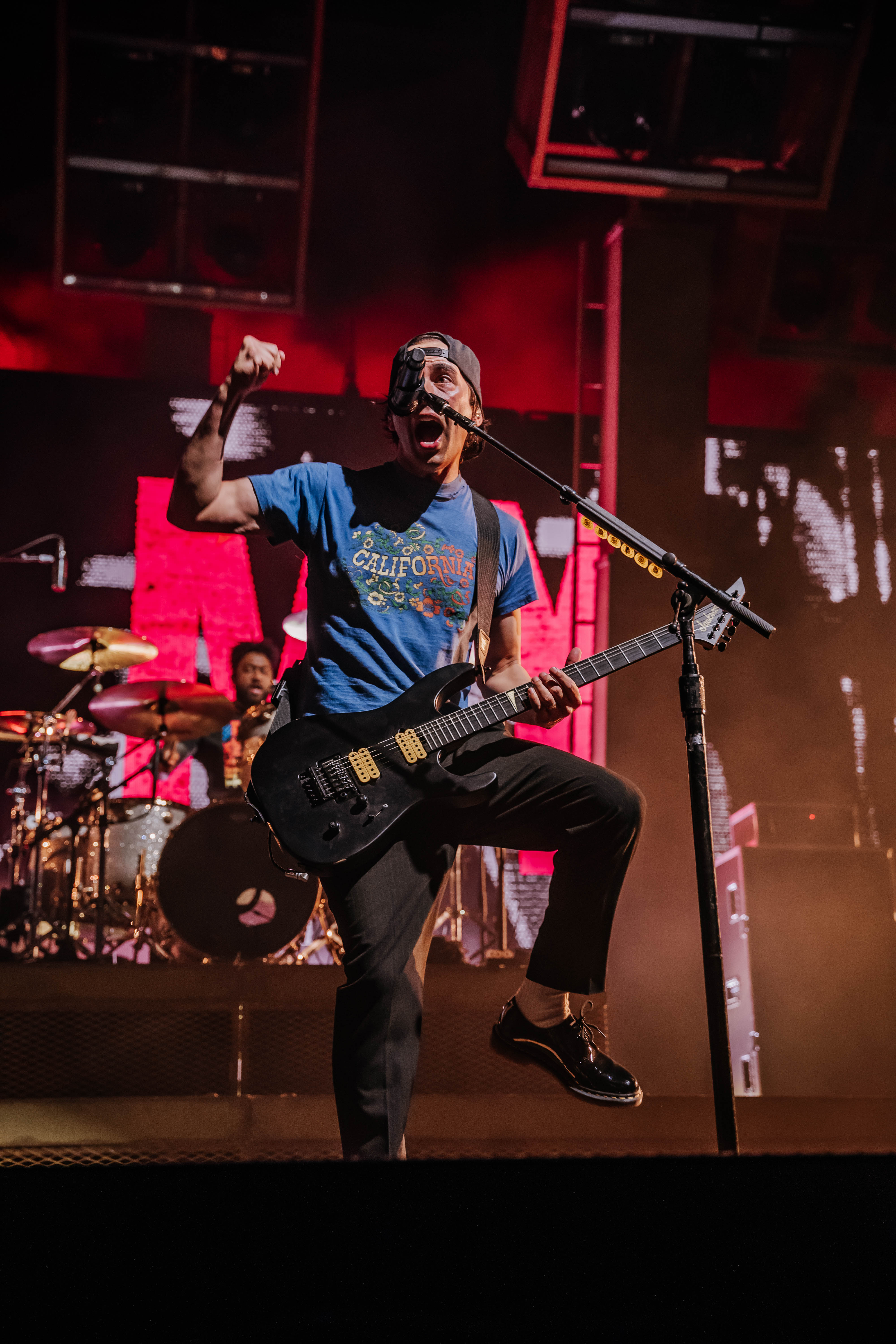 Beach Weather opened the evening with the perfect blend of laid-back grooves and summer melancholy. Despite the scorching heat, frontman Nick Santino kept the vibe cool and breezy as the band moved through fan favorites like “Sex, Drugs, Etc.” and “Unlovable.” Their sound floated effortlessly across the amphitheatre, casting a dreamy tone over a crowd eager for the chaos to come.