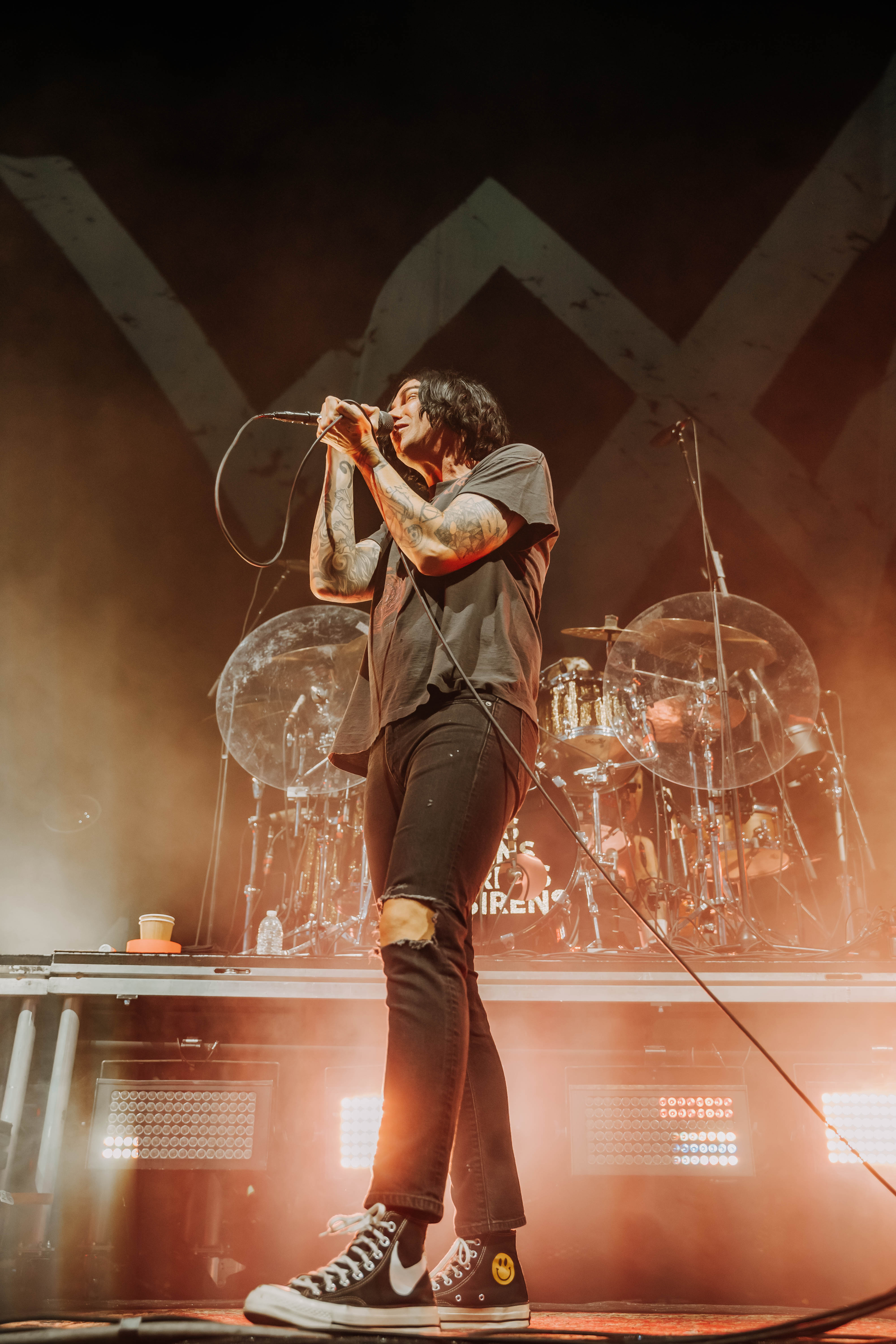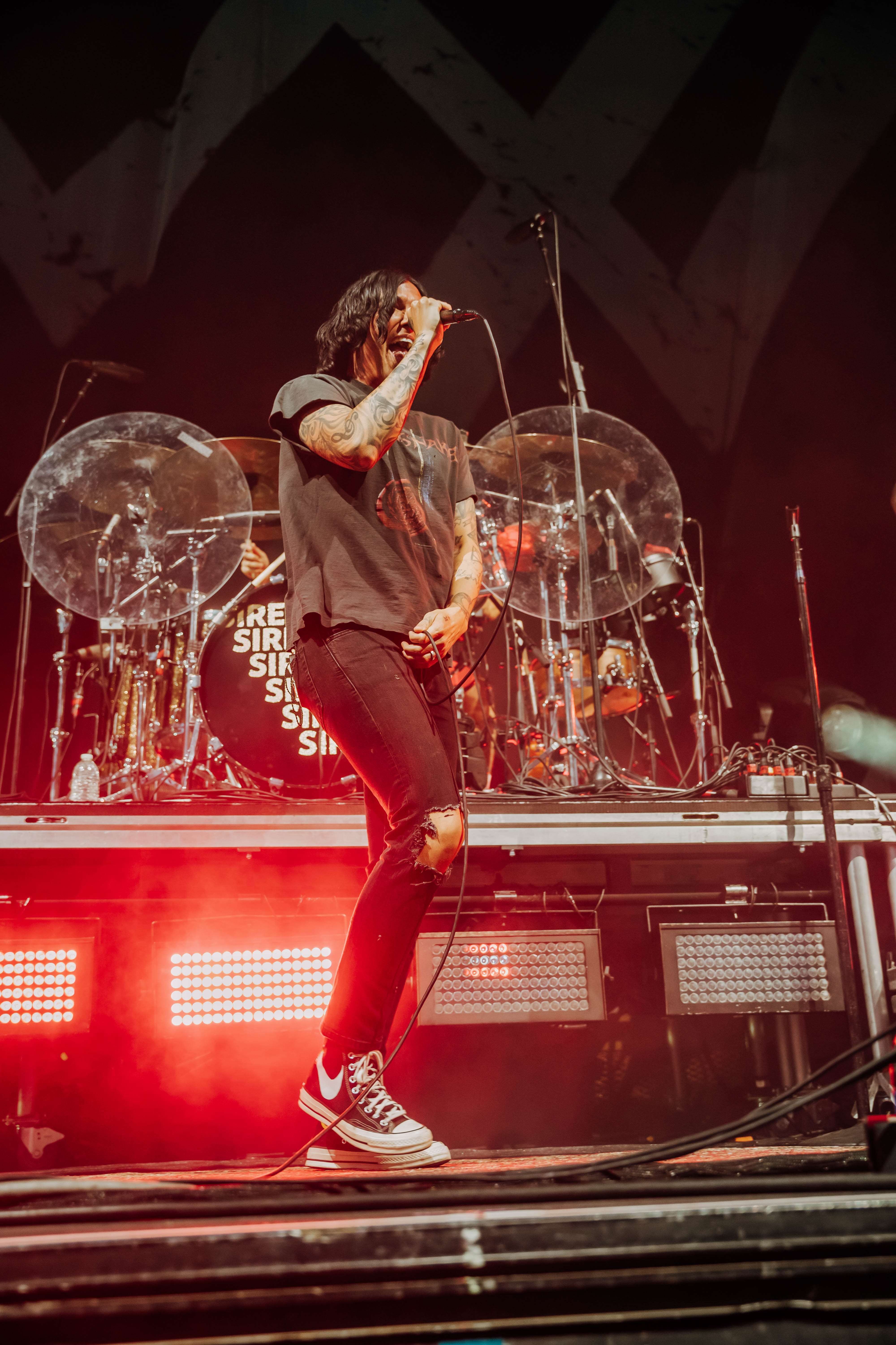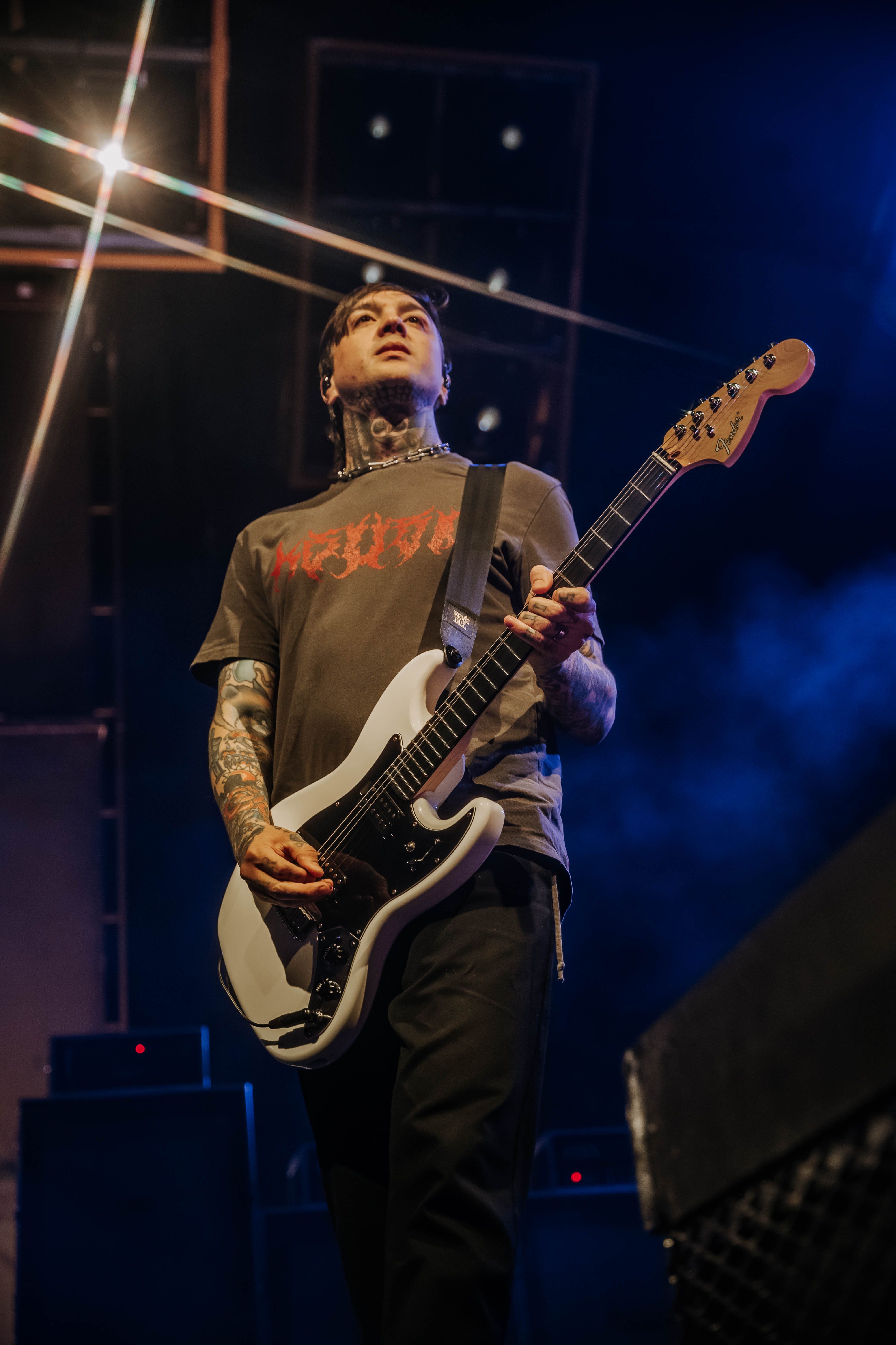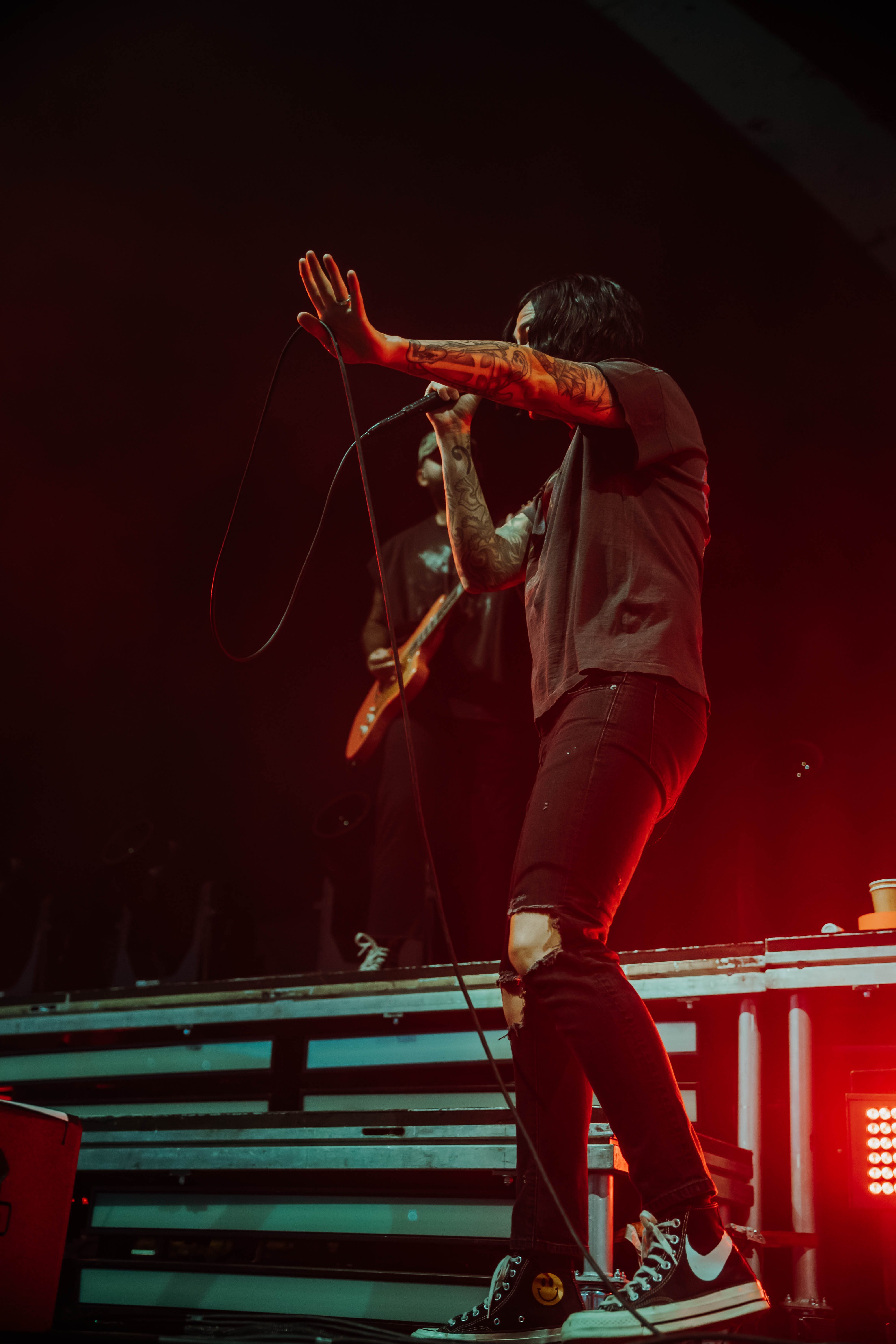 But the night wasn’t over—not even close. When the lights dimmed again, the amphitheatre exploded in anticipation, and then came the unmistakable opening of Pierce The Veil’s “Emergency Contact.” From that first note, it was chaos in the best way. Vic Fuentes commanded the stage with the ease of a seasoned icon, delivering track after track of blistering emotion and melodic grit. Songs like “Bulls in the Bronx” and “Pass the Nirvana” reminded everyone why this band continues to thrive after all these years. One of the night’s most intimate moments came when Vic grabbed his acoustic guitar and megaphone, stripping everything back for a haunting solo performance that quieted even the most chaotic pockets of the crowd.
