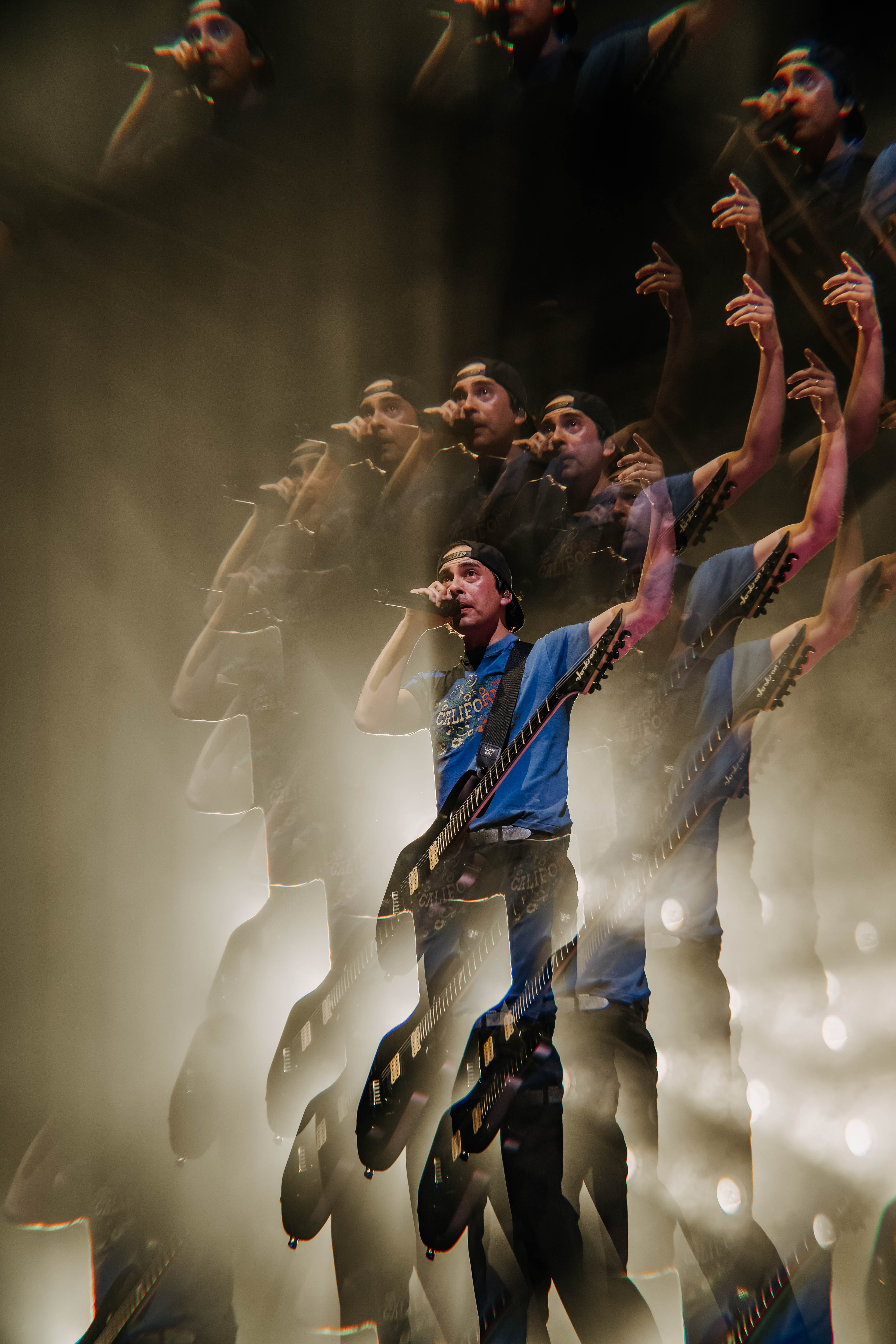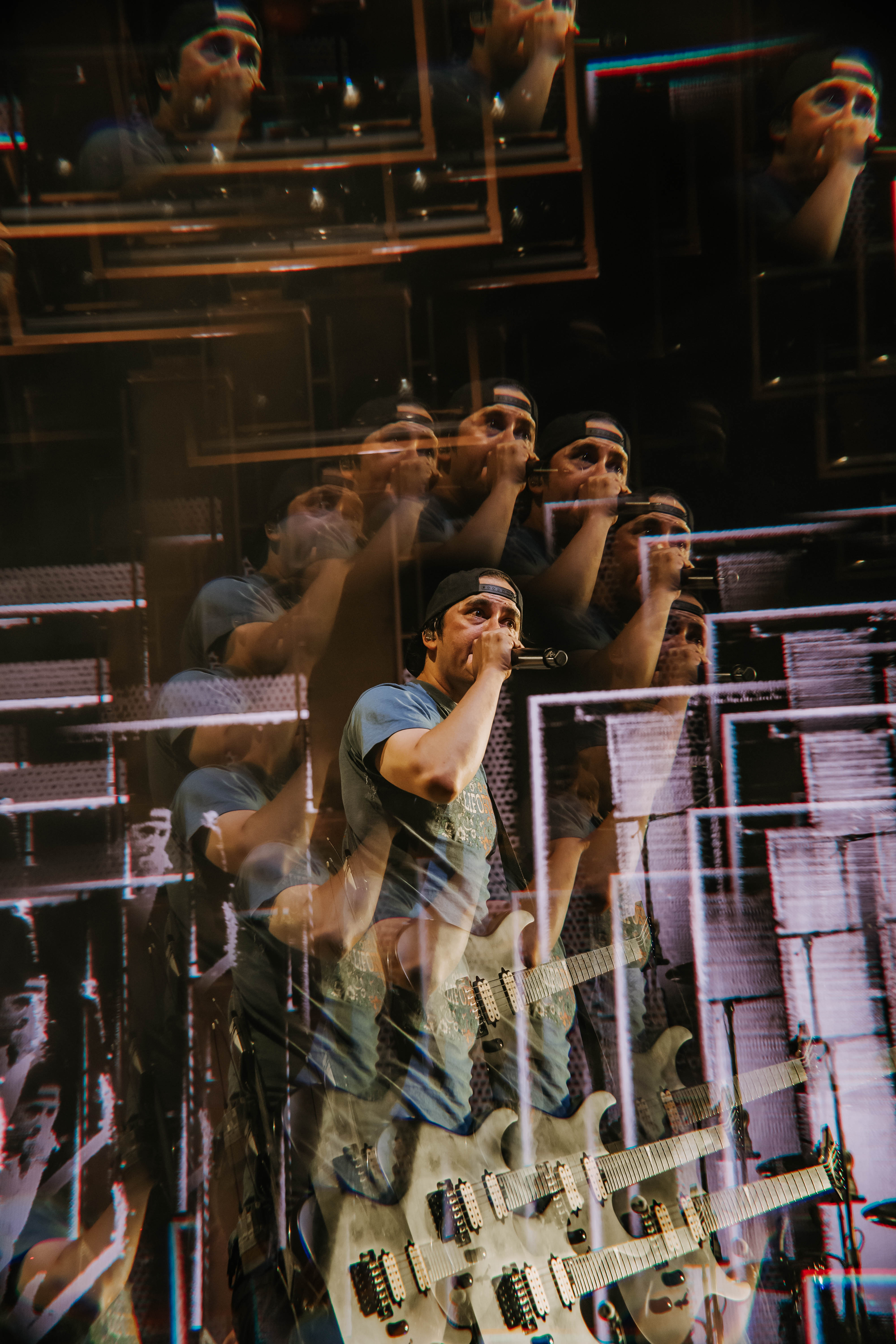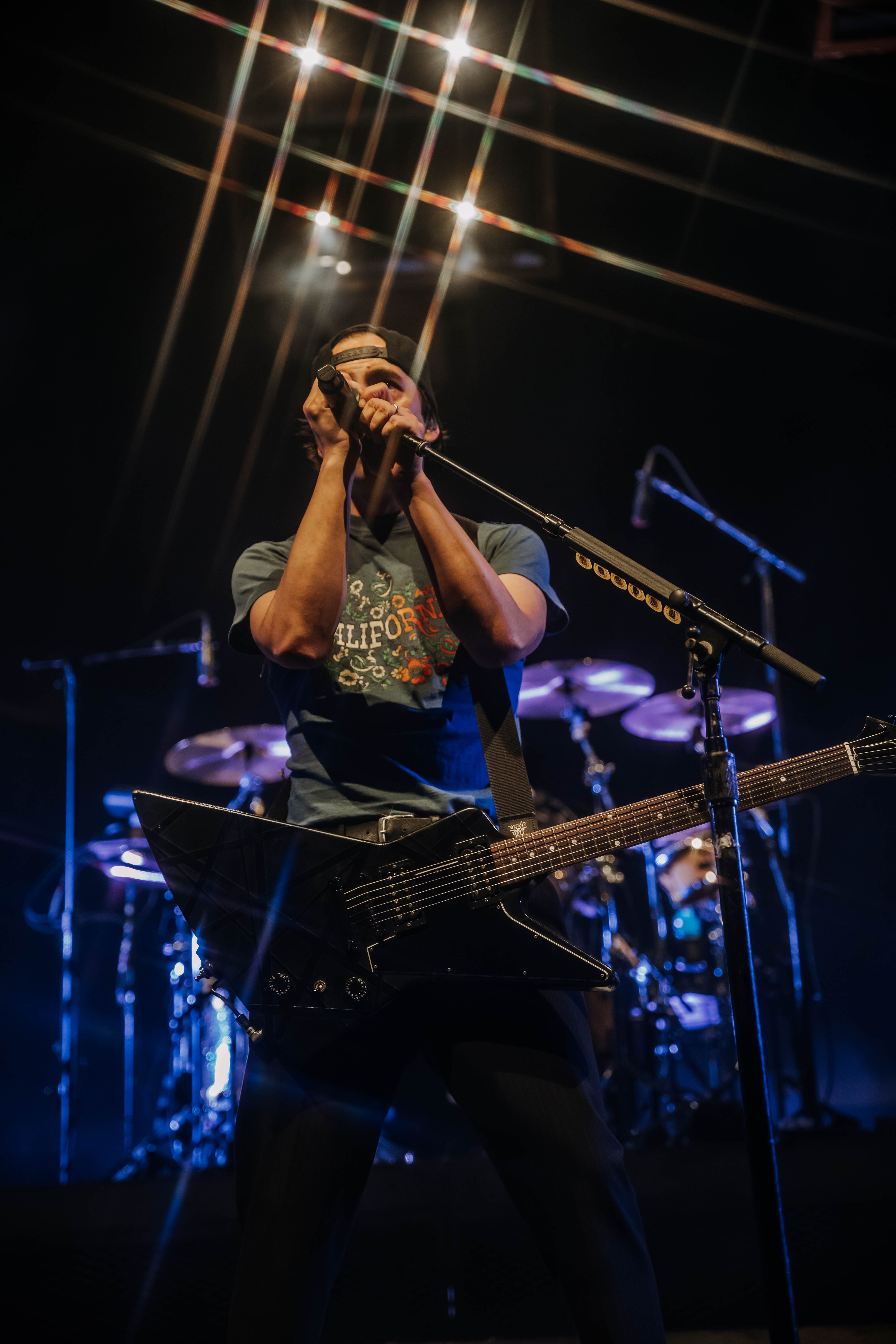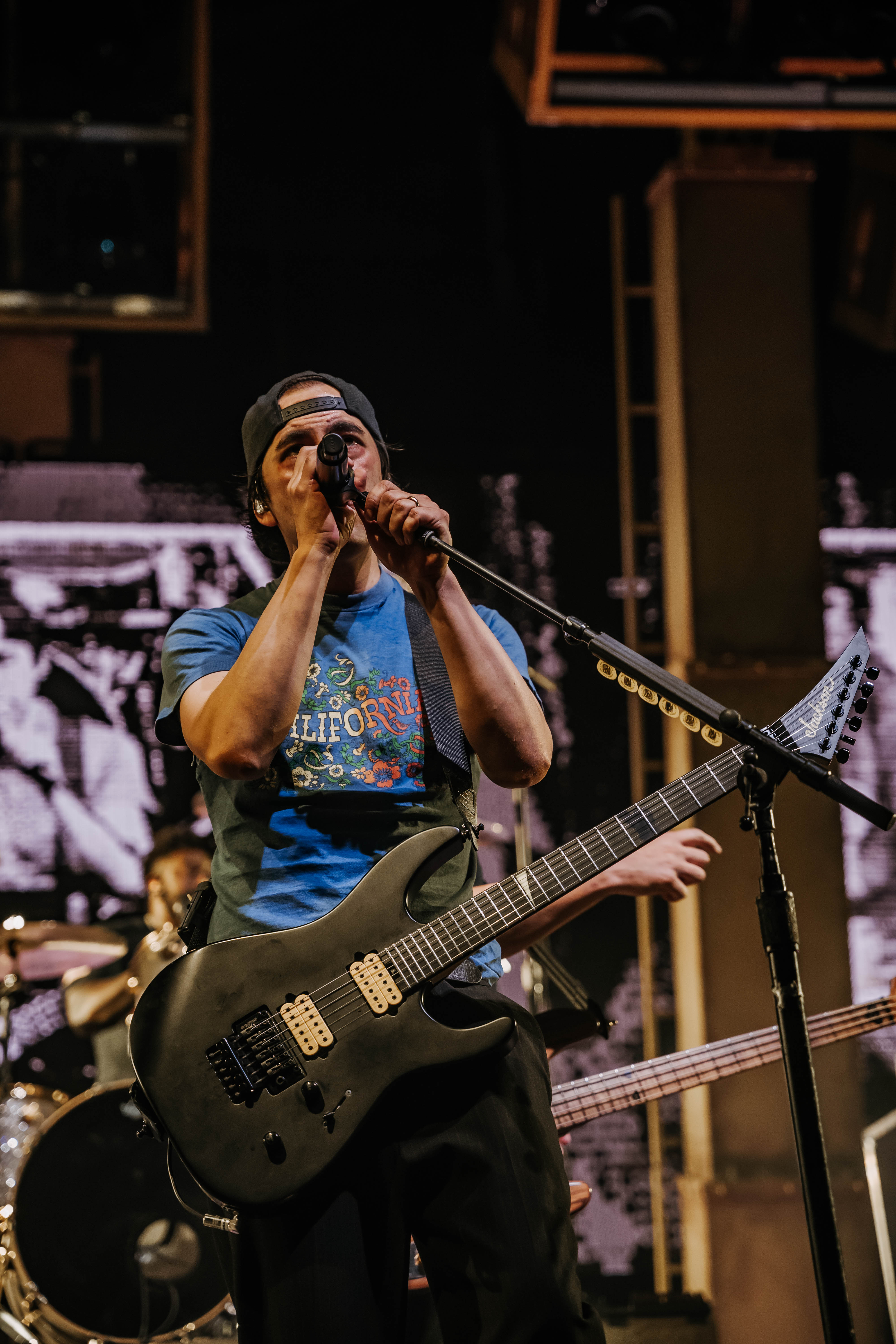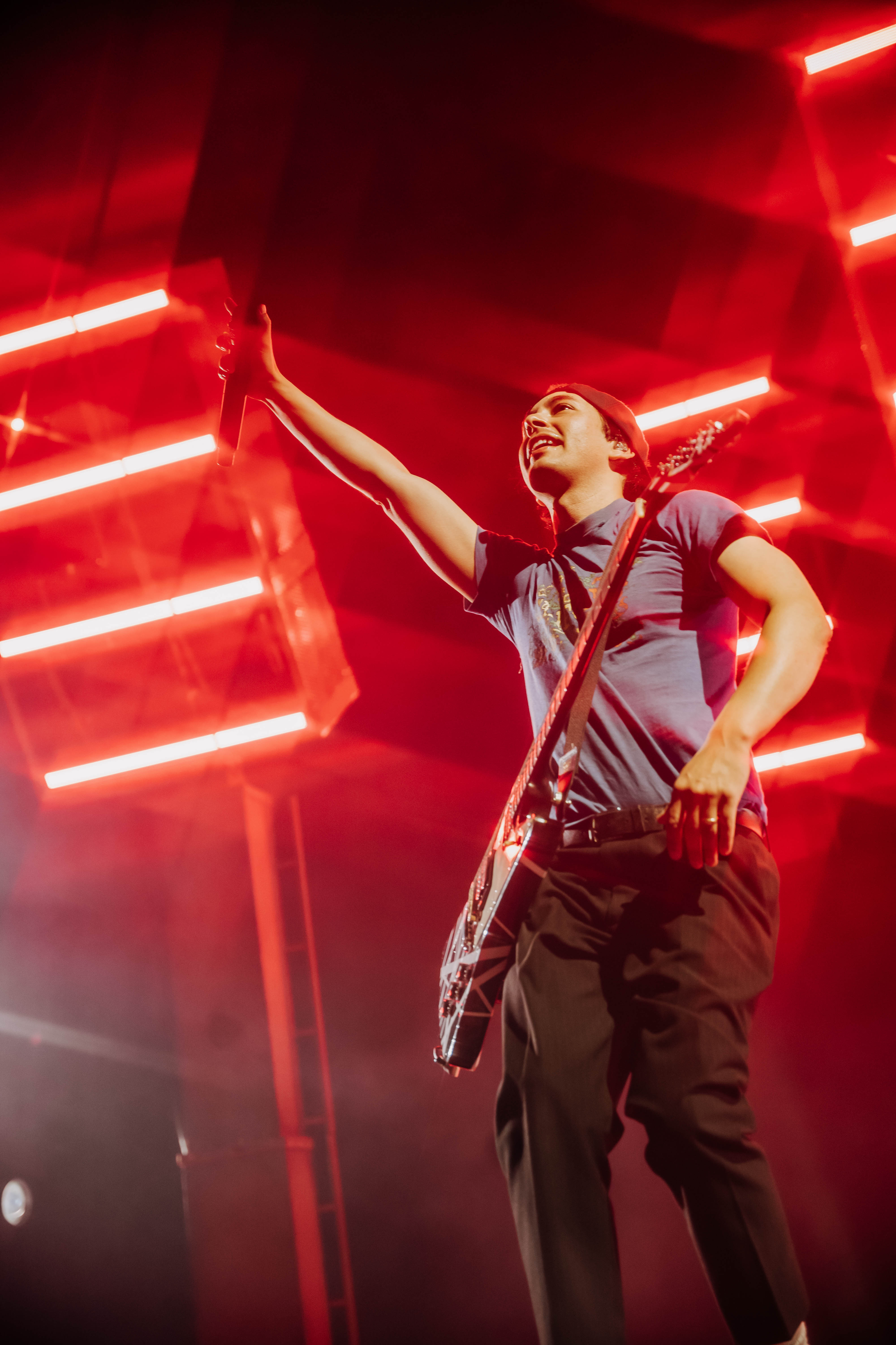 But the night wasn’t over—not even close. When the lights dimmed again, the amphitheatre exploded in anticipation, and then came the unmistakable opening of Pierce The Veil’s “Emergency Contact.” From that first note, it was chaos in the best way. Vic Fuentes commanded the stage with the ease of a seasoned icon, delivering track after track of blistering emotion and melodic grit. Songs like “Bulls in the Bronx” and “Pass the Nirvana” reminded everyone why this band continues to thrive after all these years. One of the night’s most intimate moments came when Vic grabbed his acoustic guitar and megaphone, stripping everything back for a haunting solo performance that quieted even the most chaotic pockets of the crowd.