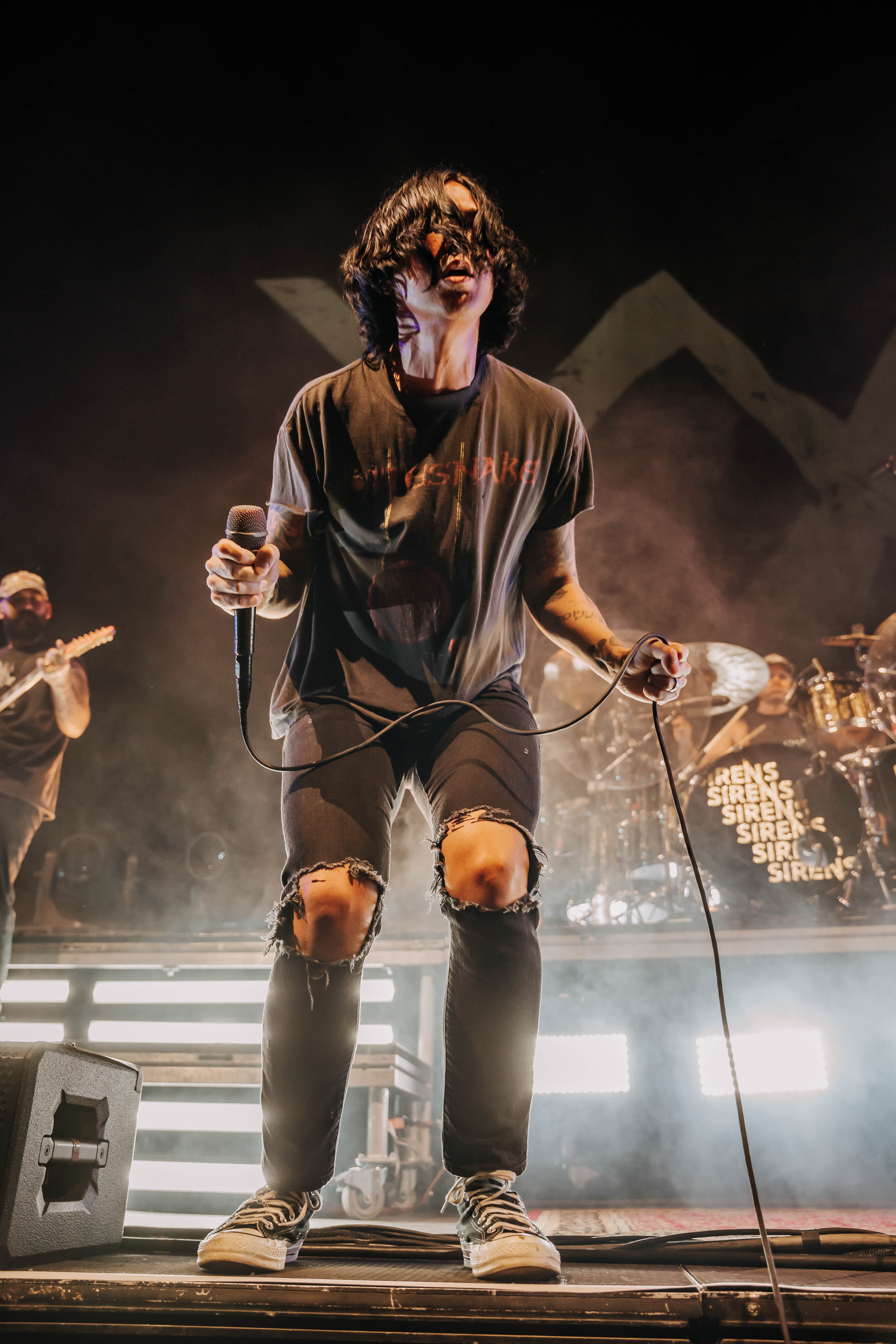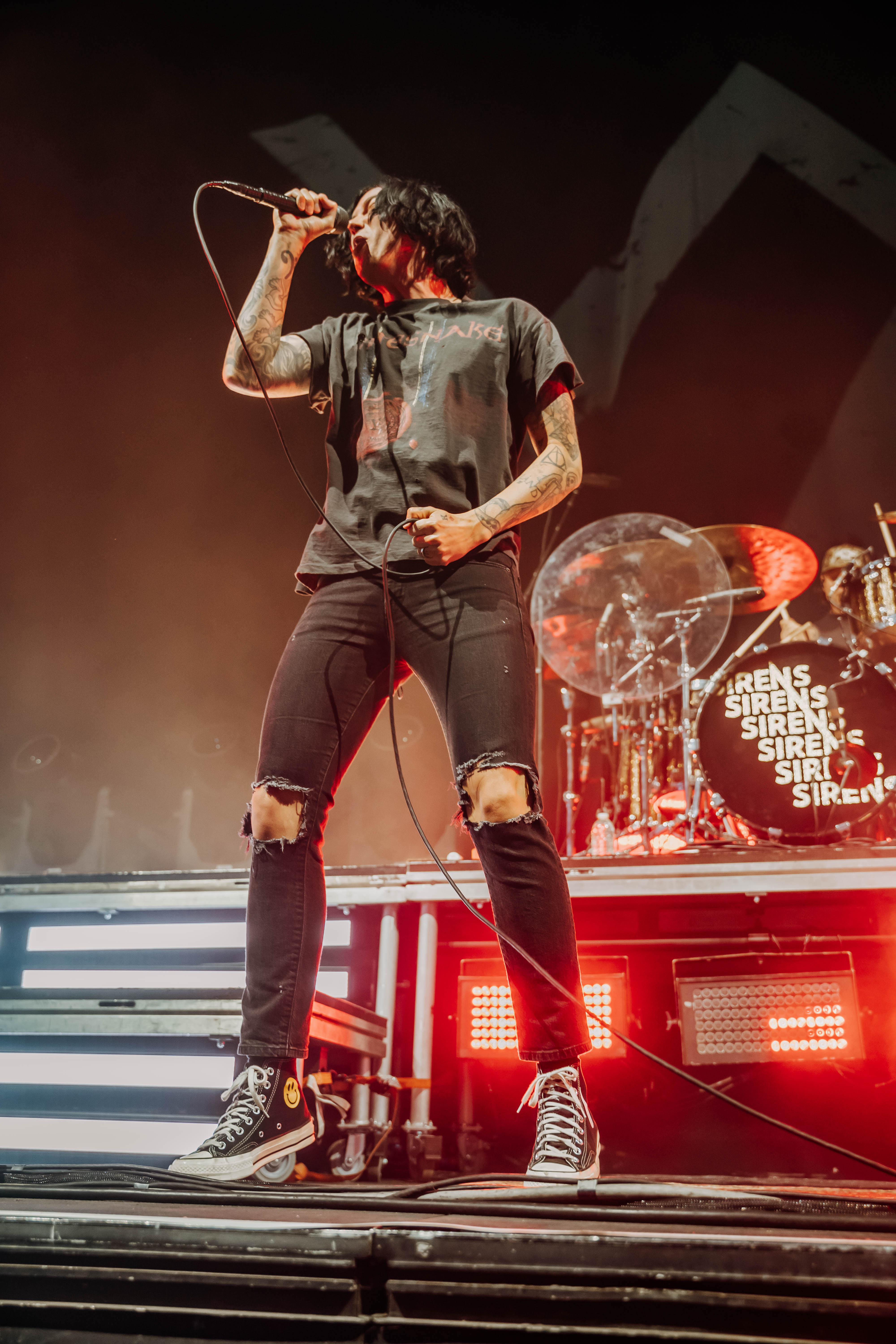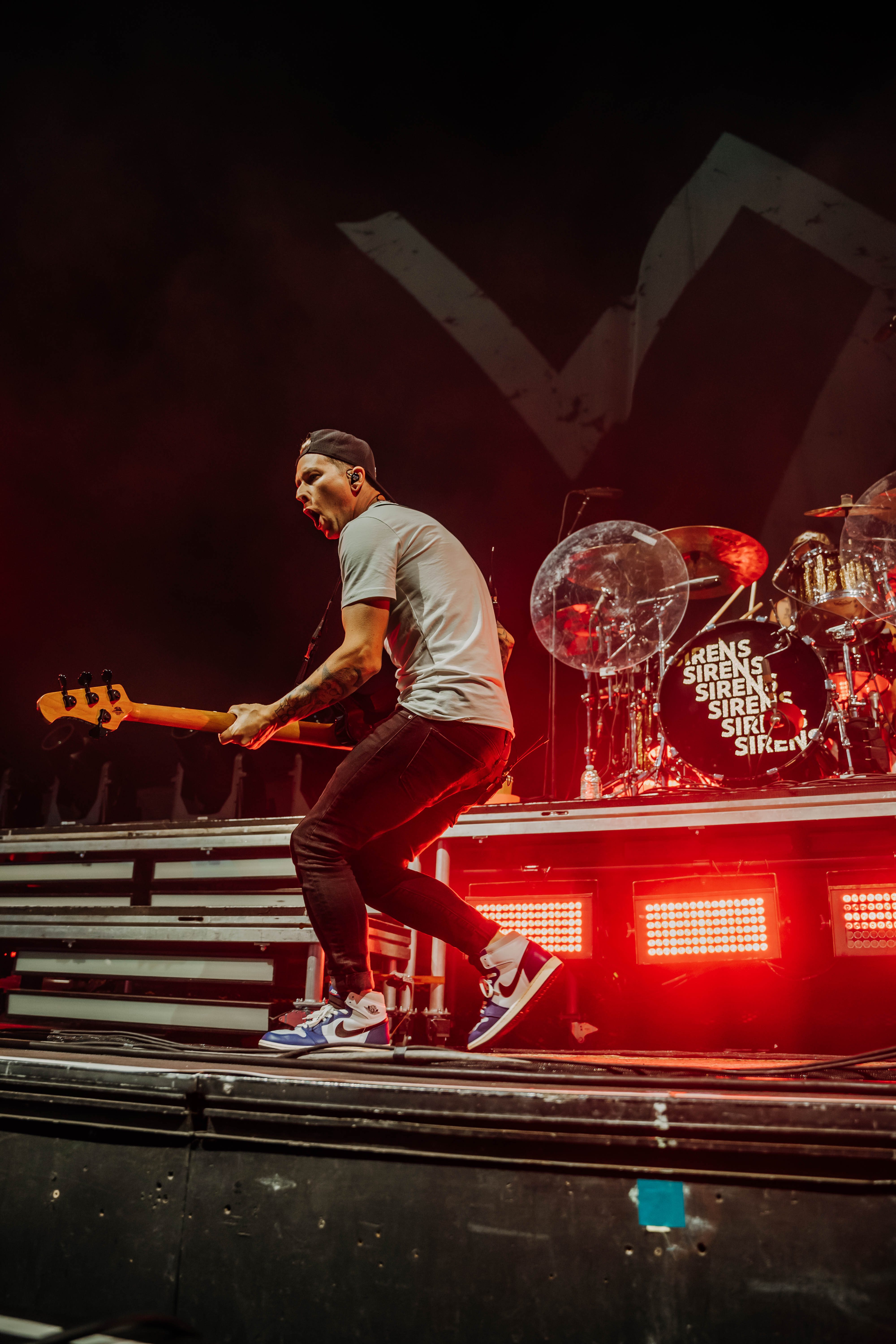 That calm wouldn’t last long. Sleeping With Sirens hit the stage next, immediately erupting into high-voltage energy with “Kick Me,” and the crowd answered with screams that felt like they hadn’t taken a breath since 2013. Kellin Quinn’s signature vocals sliced through the air—pitch-perfect and raw—as he moved from aggressive anthems to emotionally-charged tracks like “Leave It All Behind.” The emotional high point came with “If You Can’t Hang,” as the entire amphitheatre belted the chorus in perfect unison, momentarily drowning out the band itself.