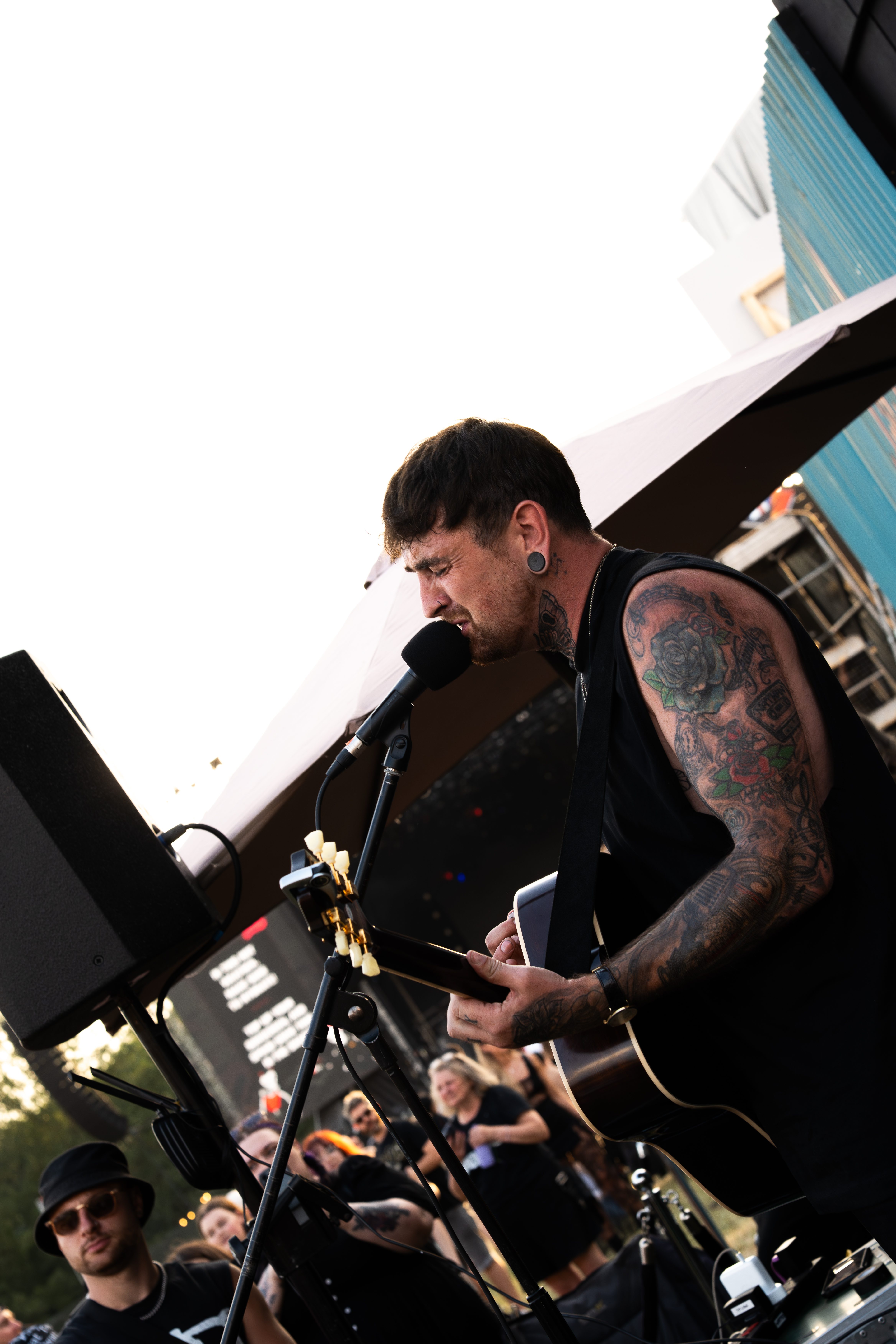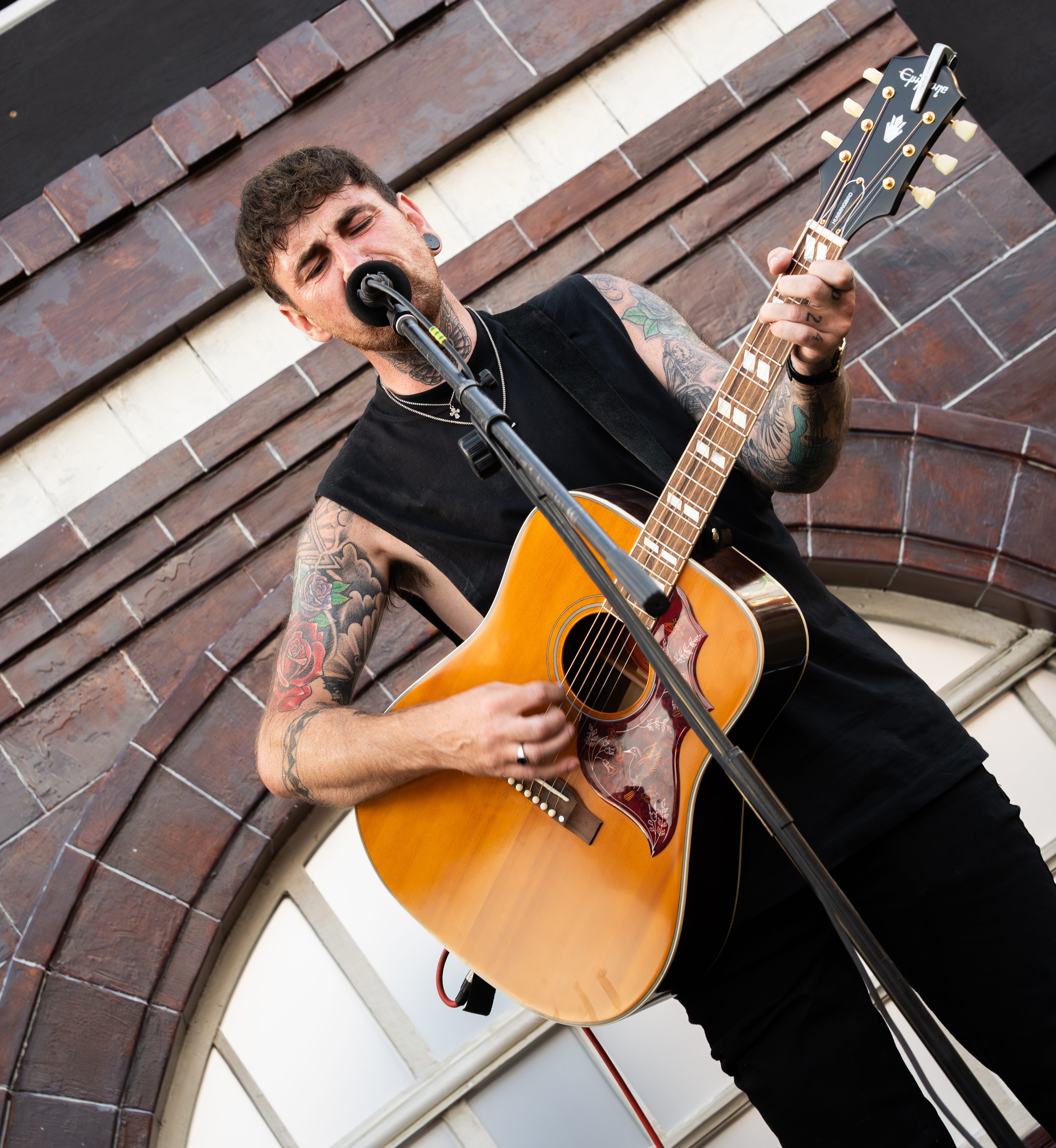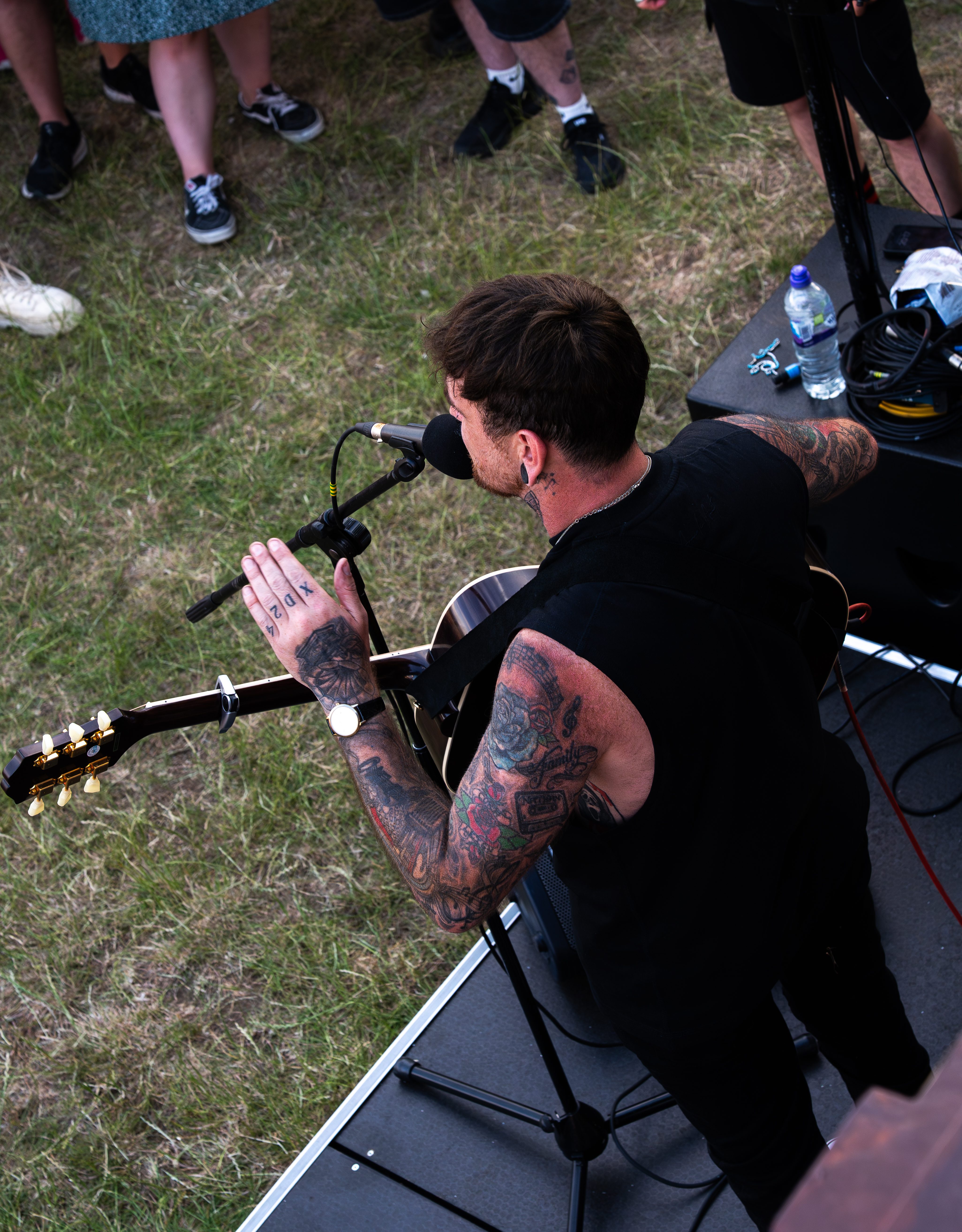 During my time at Bludfest, I had the pleasure of meeting Simon Walker, who was closing the Camden Stage right after Chase Atlantic’s set. He gathered quite a crowd during his set, performing a mix of his own songs and covers acoustically, and received some really great feedback from the whole crowd. I really enjoyed his set. He has an outstanding voice and picked some great songs that people can also sing along to and join in! I got some pictures of him while performing and later asked him if he would like to do an interview with me and he agreed. Enjoy finding out some more about Simon Walker!